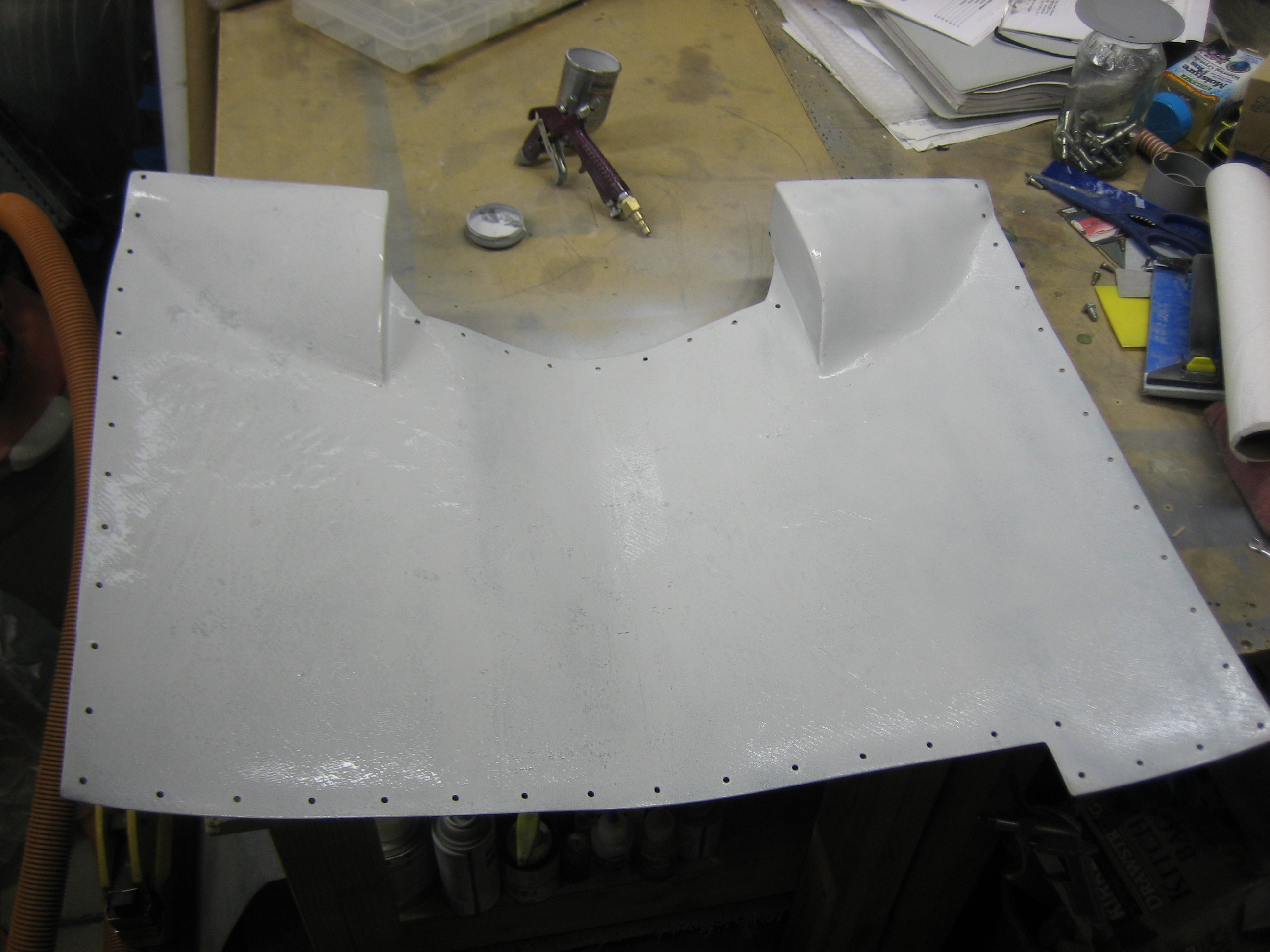 Before installing the last wing inspection panel, I needed to install the aileron servo stop. I couldn’t get the bracket in place without enlarging the center slot a bit. After ensuring it would fit, I shot a fresh coat of paint on to keep this from rusting.