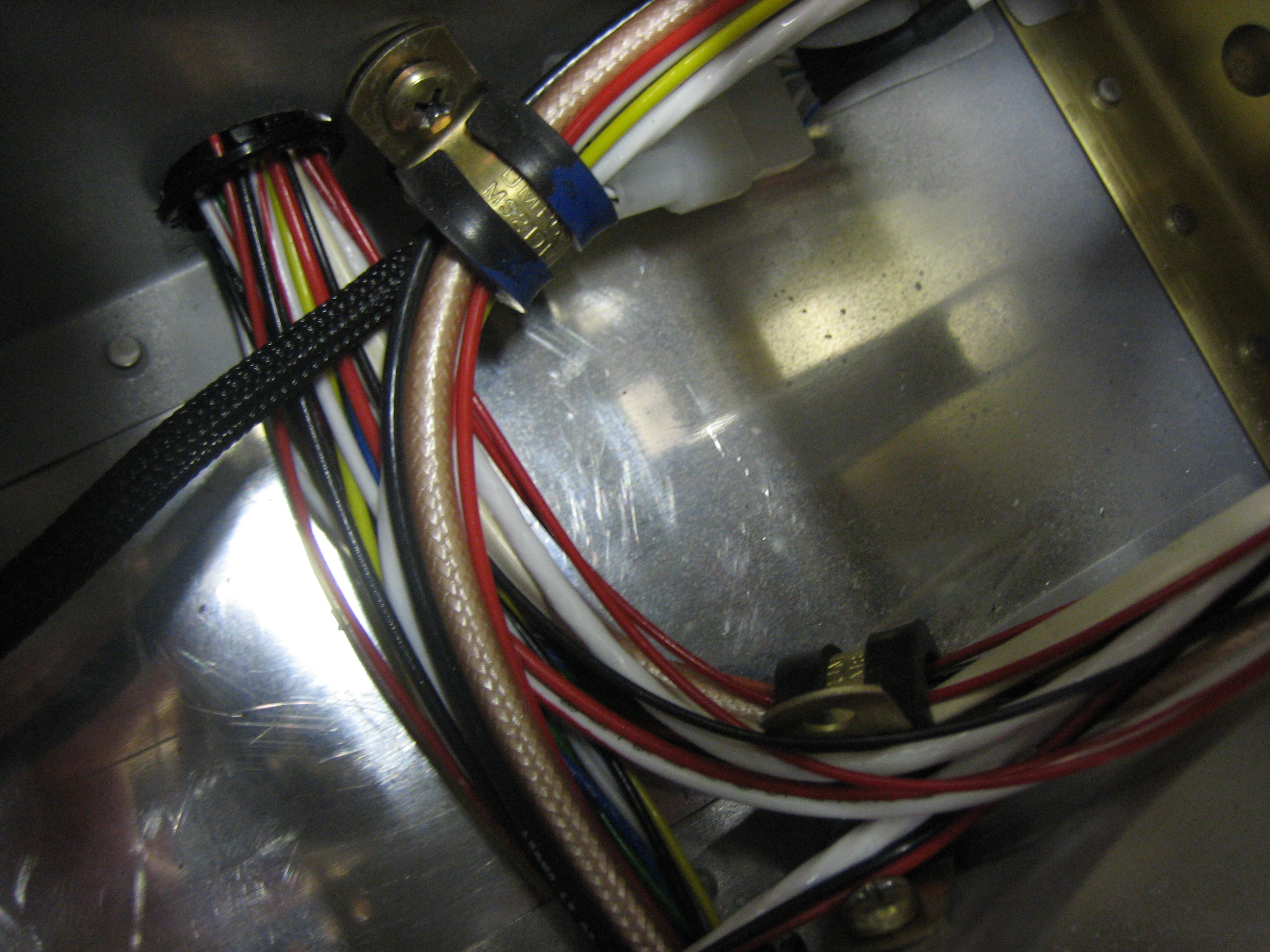 I also tidied up the wiring aft of the baggage bulkhead. Everything is firmly secured and well supported.