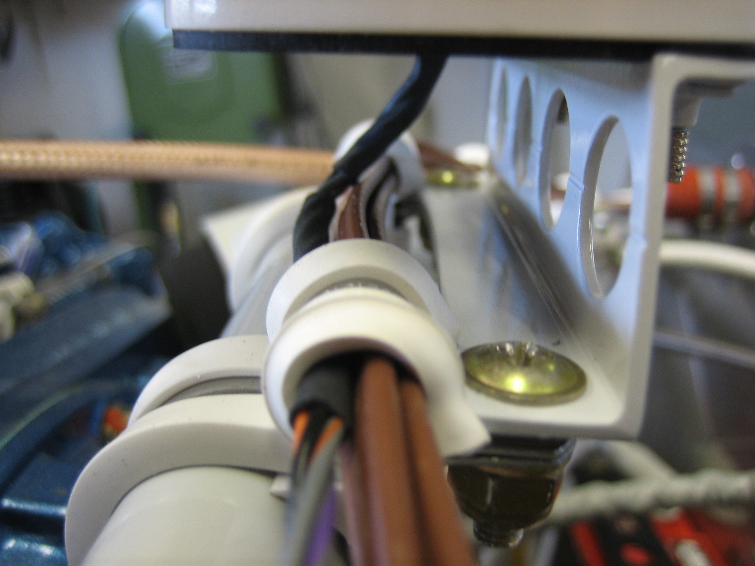 I installed the adel clamp supporting the wires coming out of the left conduit and added a couple of zip-ties to tie everything together. It’s amazing how solid these wire bundles become when zip-tied together.