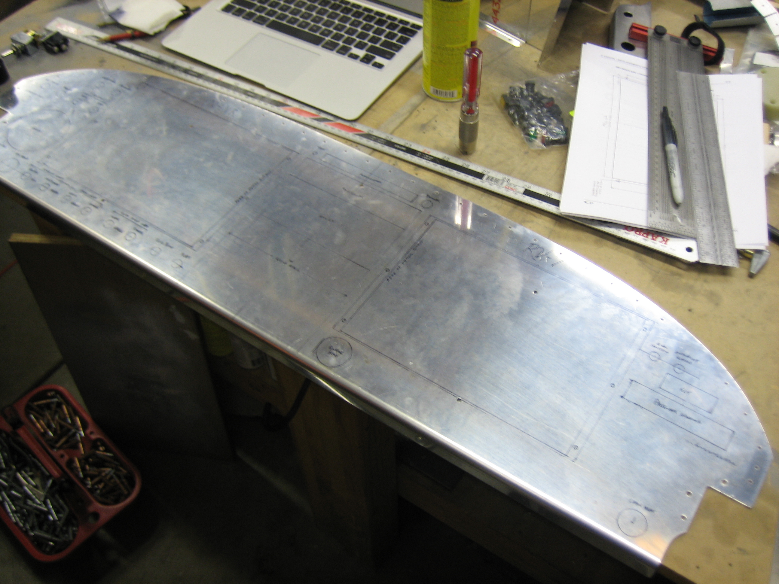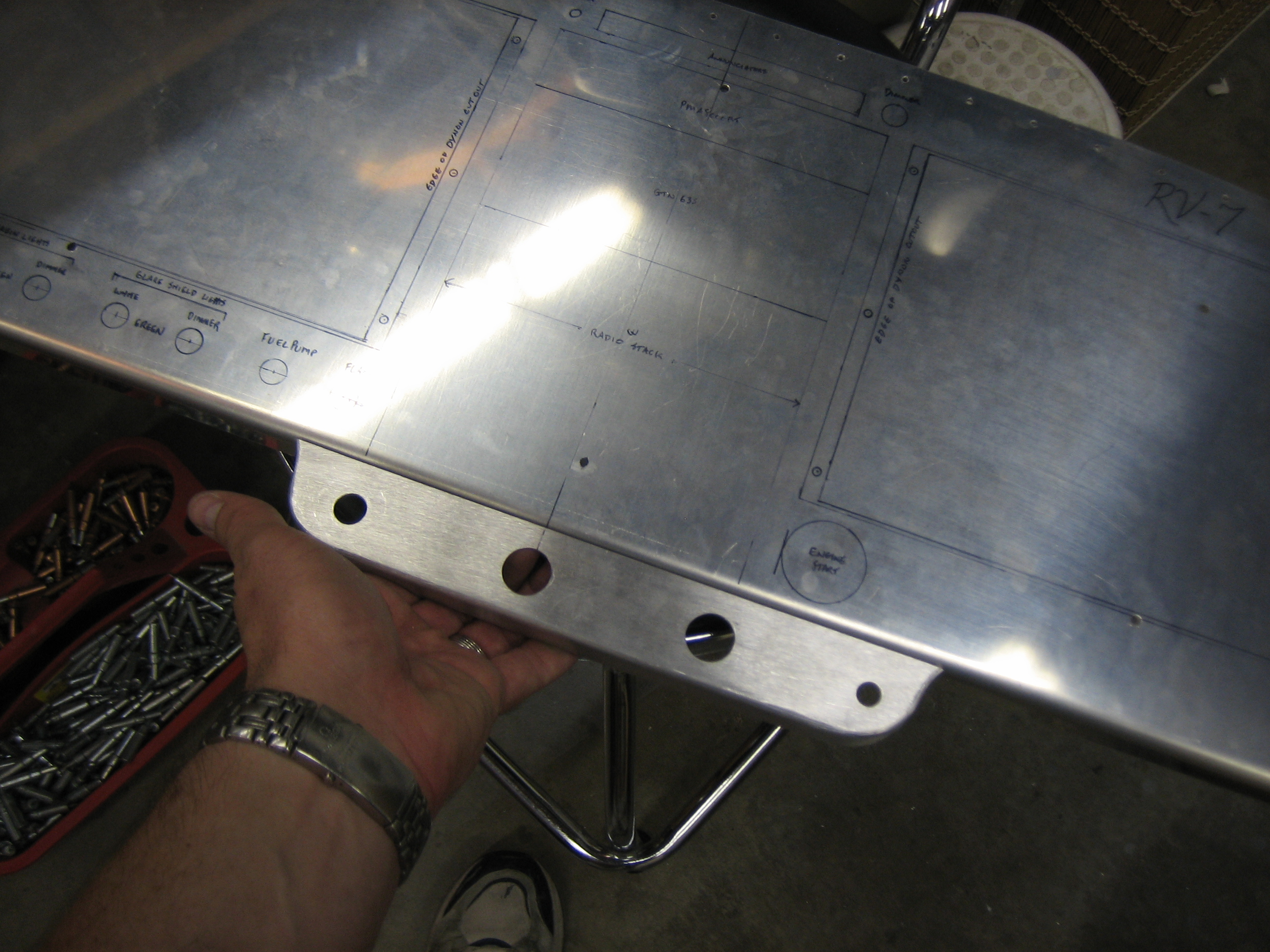 I added an adel clamp to keep the pitot/AOA lines held down to avoid interfering with the aileron push tube. I might have been able to use a zip-tie base attached with a pop-rivet, but I really don’t want there to be any possibility of anything coming loose around the flight controls. You can also see at the top of this picture that I took all of the snap bushings out of the forward holes in each seat rib. I have no idea why Van’s has you drill holes here. It’s a really poor place to put them since they’d have to snake around the control stick brackets.