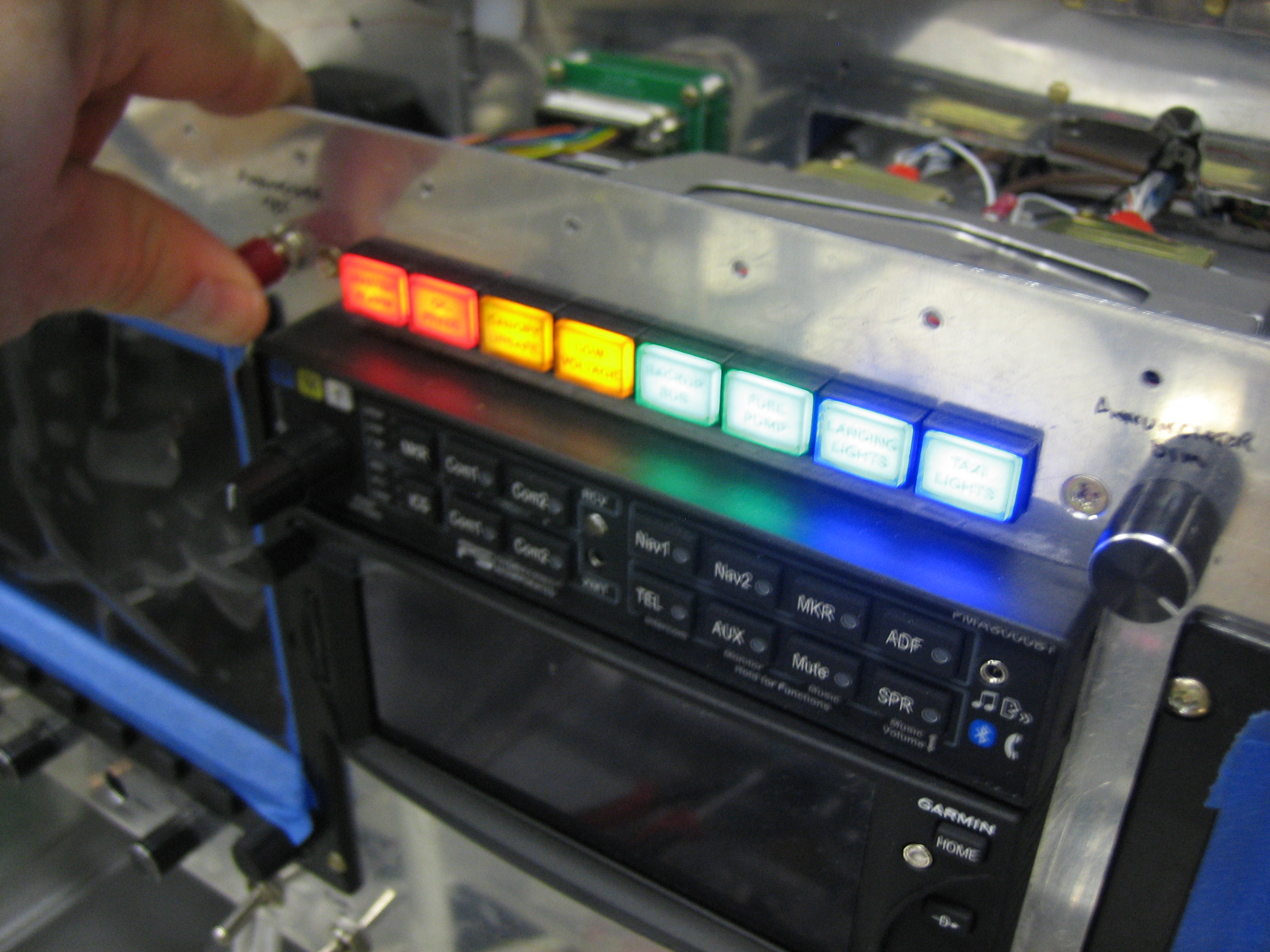 I also hooked up a few other lights.  First up, I connected the annunciator light to the voltage regulator.  This light flashes “Low Voltage” whenever the alternator isn’t producing power.  Second, I hooked up the oil pressure light to the oil pressure switch  This will be on whenever the master switch is on and the oil pressure is too low.  This will also serve to remind me to turn off the master switch. Finally, I hooked up the SkyView master alarm light.  This starts flashing whenever the MSG button on the display starts flashing.  It can be configured to go out or stay on after acknowledging faults that haven’t been cleared.
