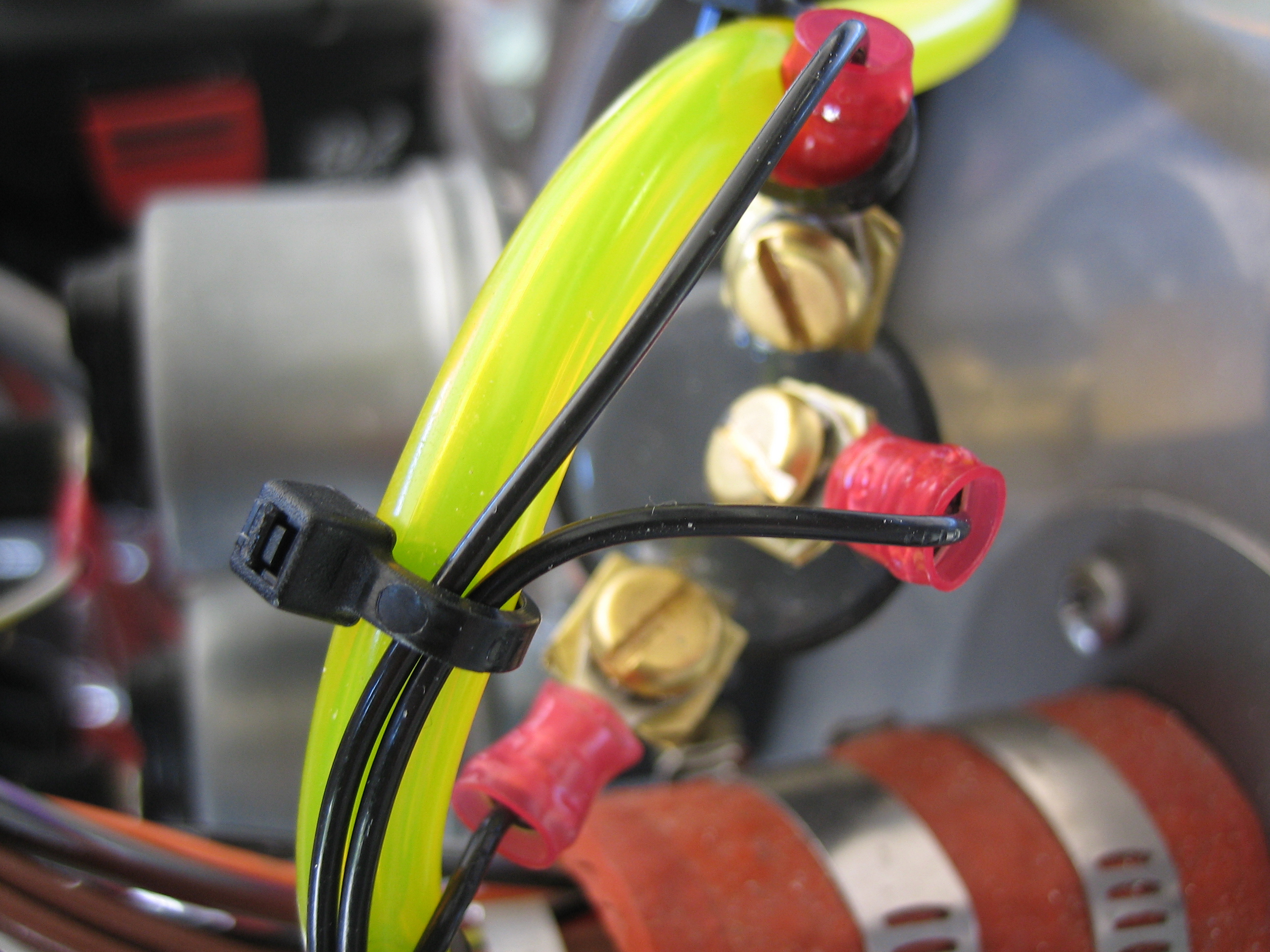 On the switch end, the shielded wire comes in on the bottom and has a similar split,  The center conductor is also connected to a tap wire that includes a 30k? resistor.  This wire goes to the SkyView EMS to provide RPM indication.  The Lightspeed ignition also provides RPM indication, so the SkyView has redundant sources for this info.