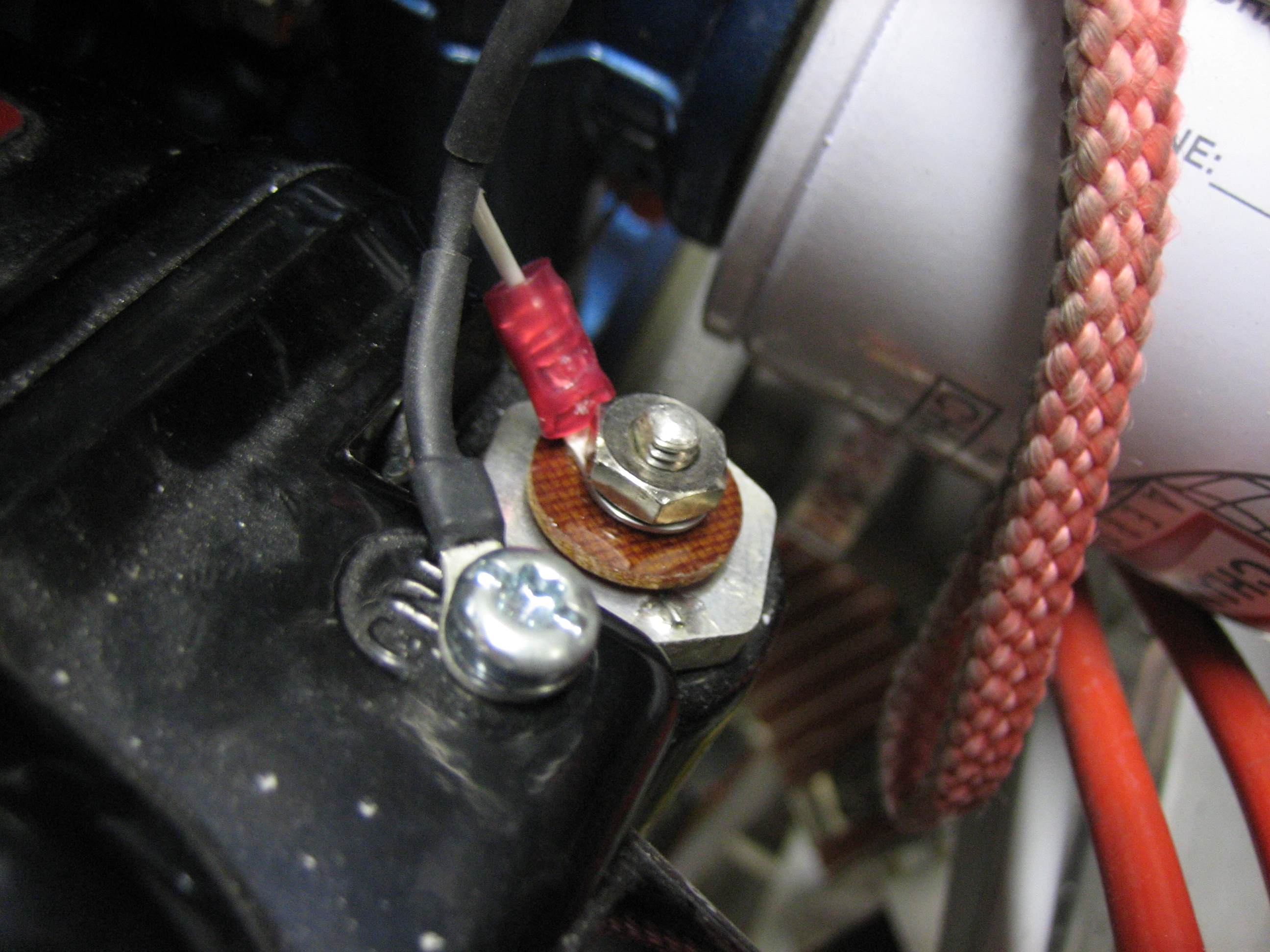 That black wire then runs to the ground block.  I drilled a hole through the firewall to anchor the other end of the ground block and attached the wire there.  I doubt this is significantly more reliable than one of the fast-on connectors, but it’s about as reliable a connection as you can make short of connecting it directly to the battery ground terminal.