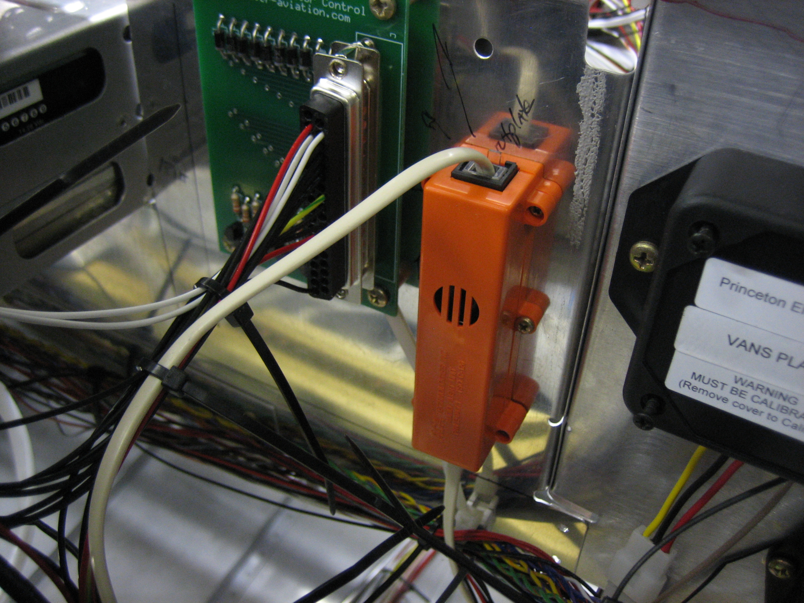 One of the last things to be wired through the isolation diodes was the autopilot servos.  I wired them up through a pullable circuit breaker and then down to the wires under the seats.  Afterward, I fired up the SkyView system and verified it could see the pitch servo.  After a quick servo firmware update, I calibrated it temporarily and then verified the autopilot controlled it correctly.