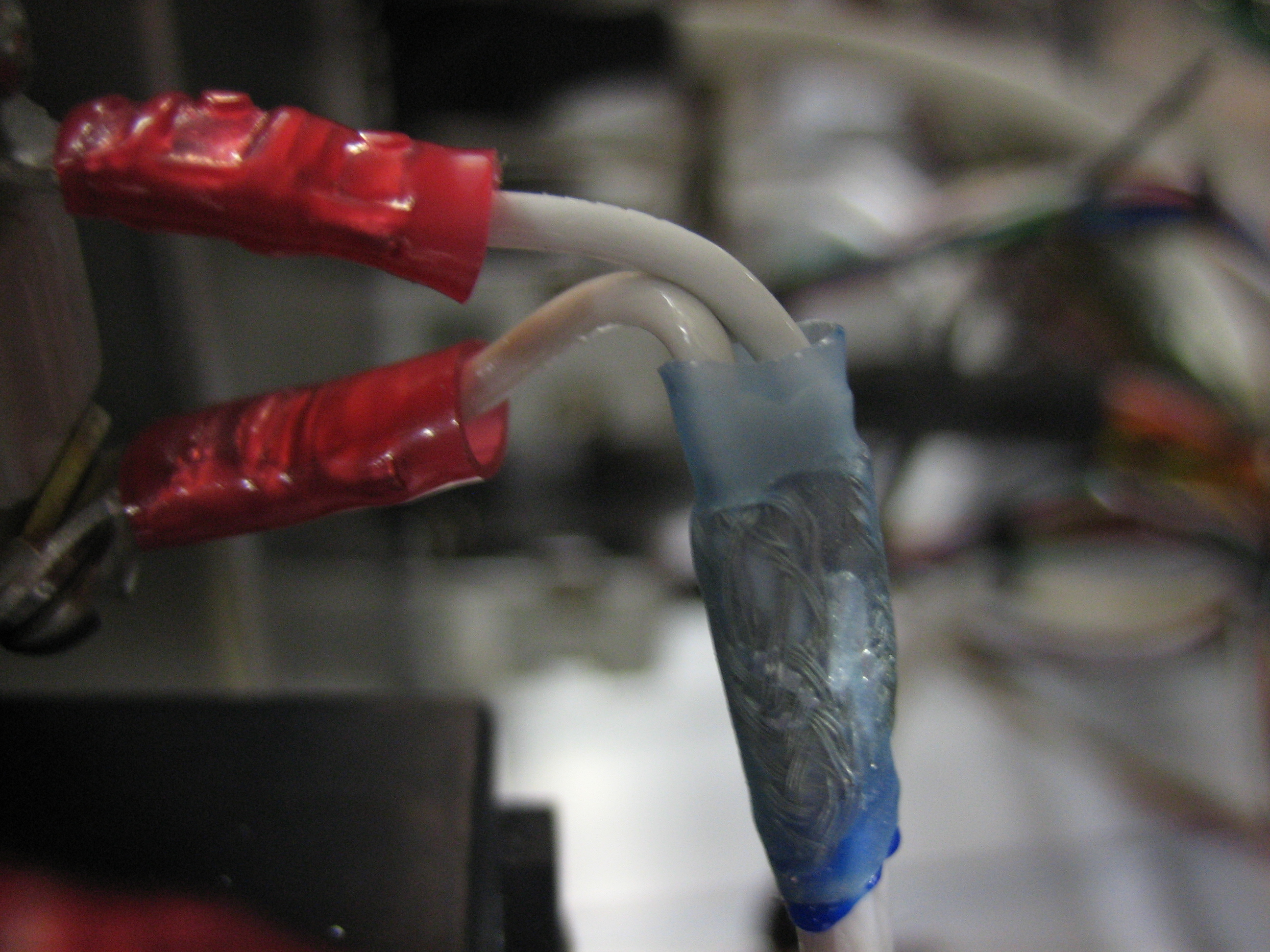 I also used some 20AWG shielded wire to connect up the mag switch.  On the mag end, the center conductor is connected to the far post, while the shield is split off and wired to the ground post on the mag.  I little heat shrink keeps everything tidy.