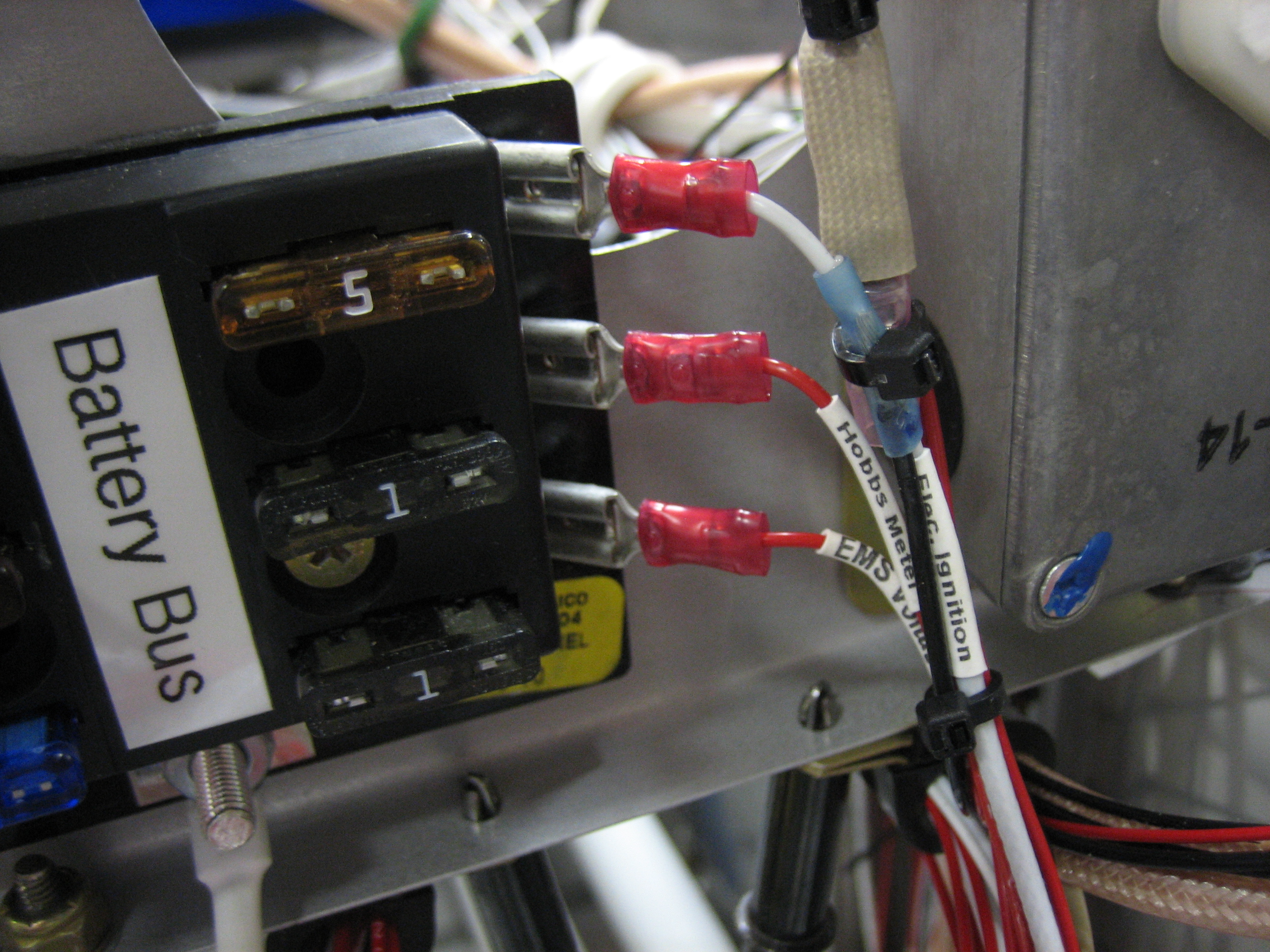 All of the corresponding wires are hooked up to the essential bus fuse box.  There’s no fuse installed in the spot for the TruTrak Gemini since I don’t know what size it will be.