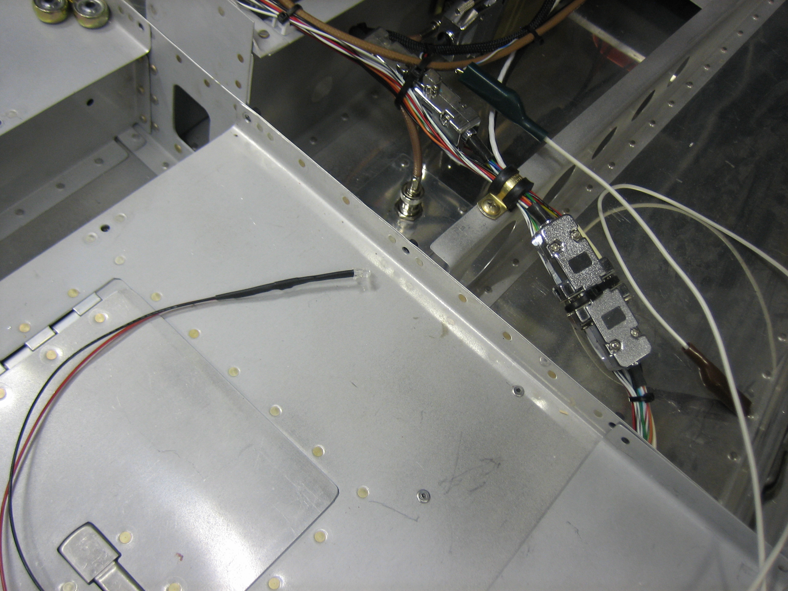 Here’s the other end of the cable from the audio box.  After installing this, I put the ELT switch in the armed position and hit the test button on the remote to perform a self-test.  Initially, the ELT reported a high VSWR error which makes sense since I hadn’t yet installed the ELT antenna.  I quickly threw a BNC connector on the end of the antenna cable and connected the antenna.  Re-running the self-test indicated that all systems were functioning properly.  I still need to confirm that the ELT is properly receiving position data from the GTN, but I need to fabricate a small test circuit to do that.