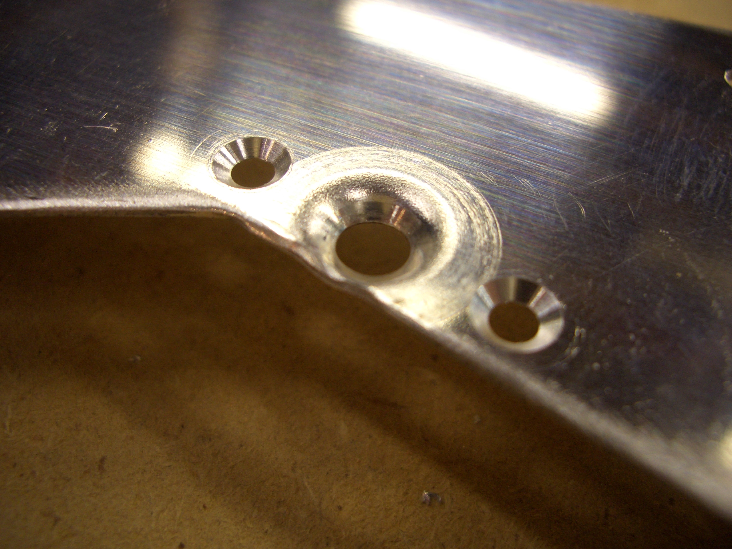 The R-913 counterbalance skin in 0.032″, and because the rudder skin is 0.016″, the overlap can cause a visible joggle in the rudder skin. Beveling the two points on each side of the counterbalance skin where these two skins overlap with the underlying structure smoothes out this transition.