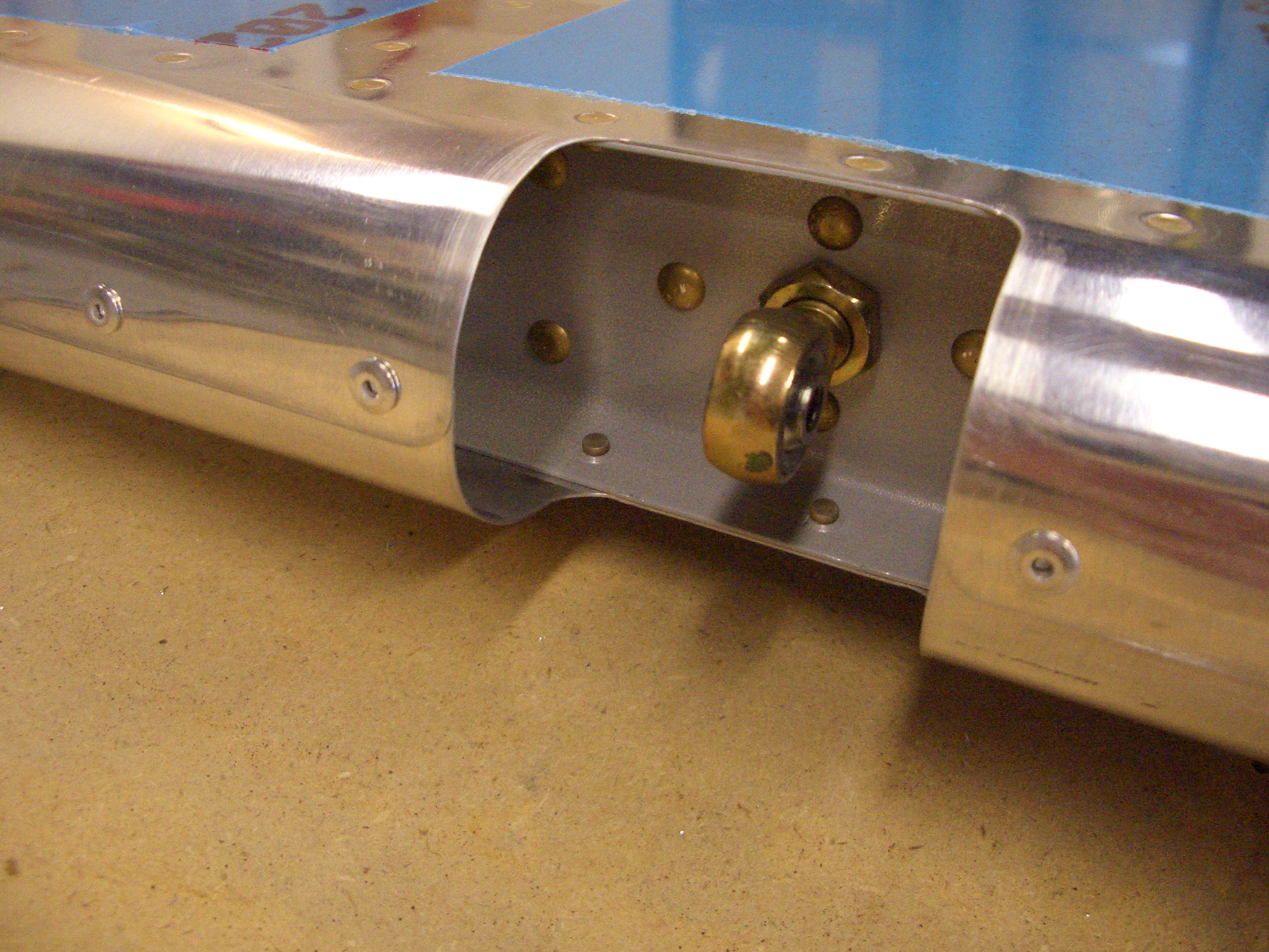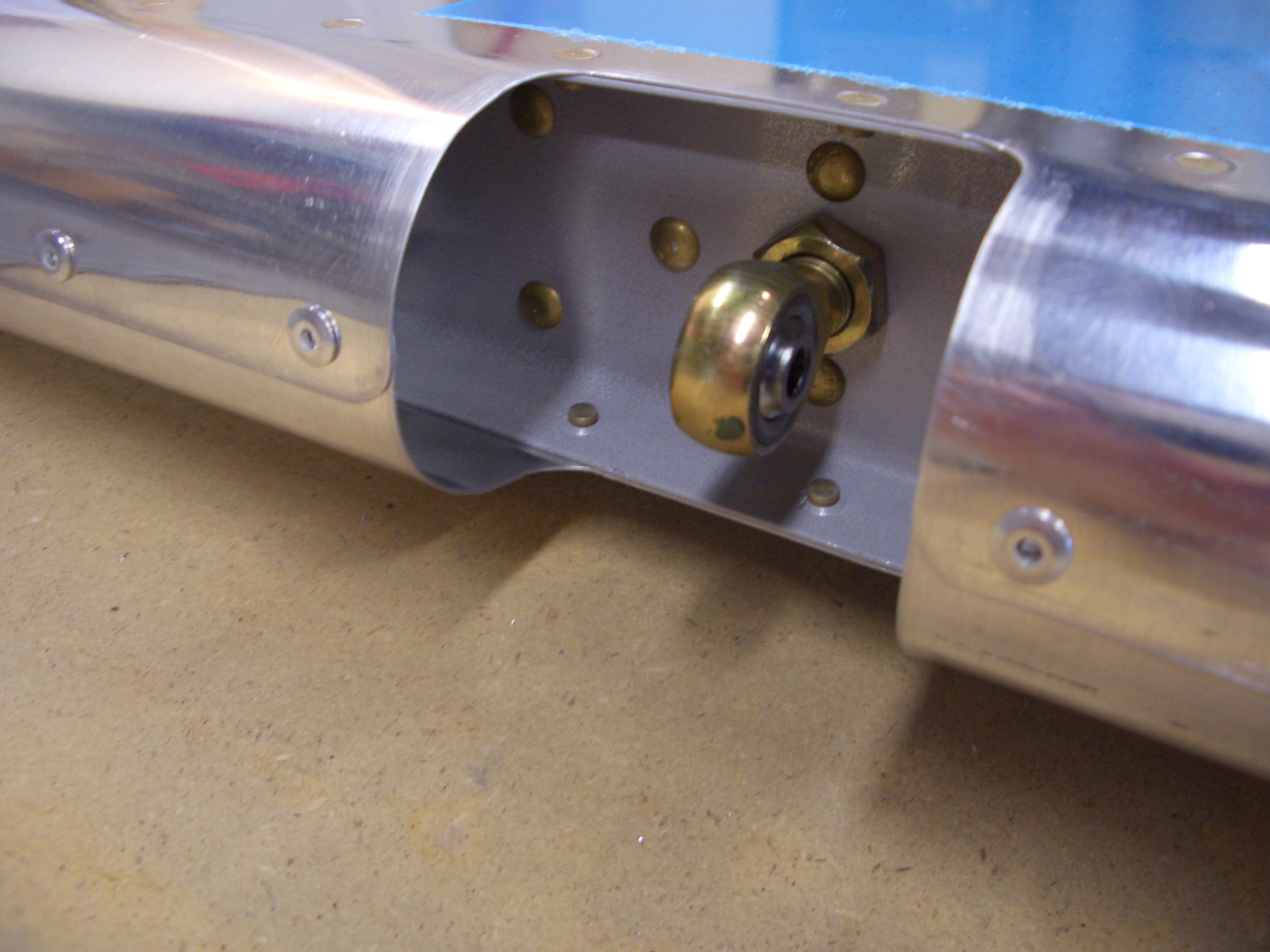 I did a little fine tuning of the leading edges and installed the pop rivets. I also installed the bearings into both elevators. Here’s one of them (I don’t know which), but they all look about the same. Basically, you screw these in until the center of the bearing is 13/16″ away from the spar face. It’s not hard to be precise since one too many or one too few half turns is obviously off of 13/16″