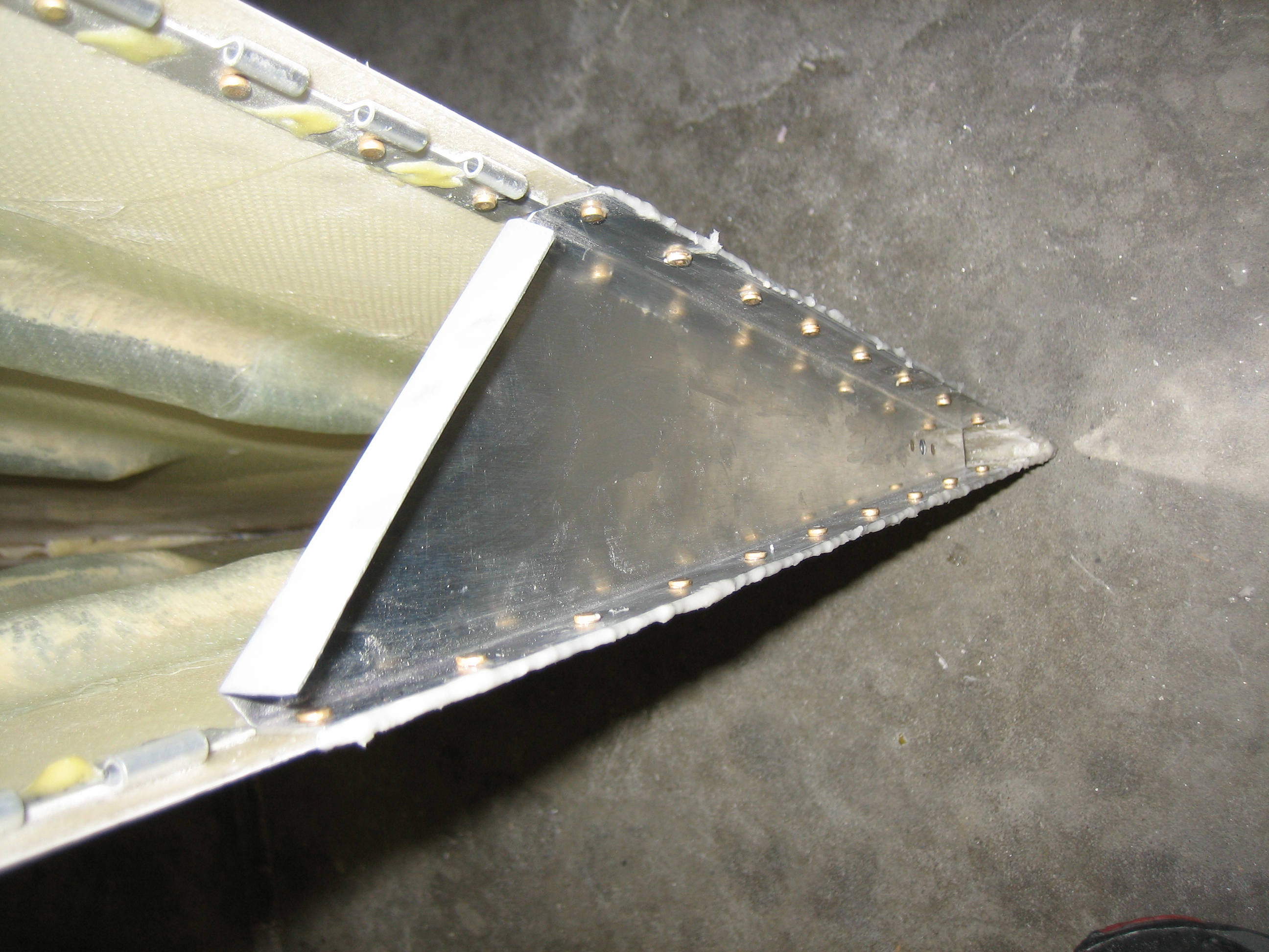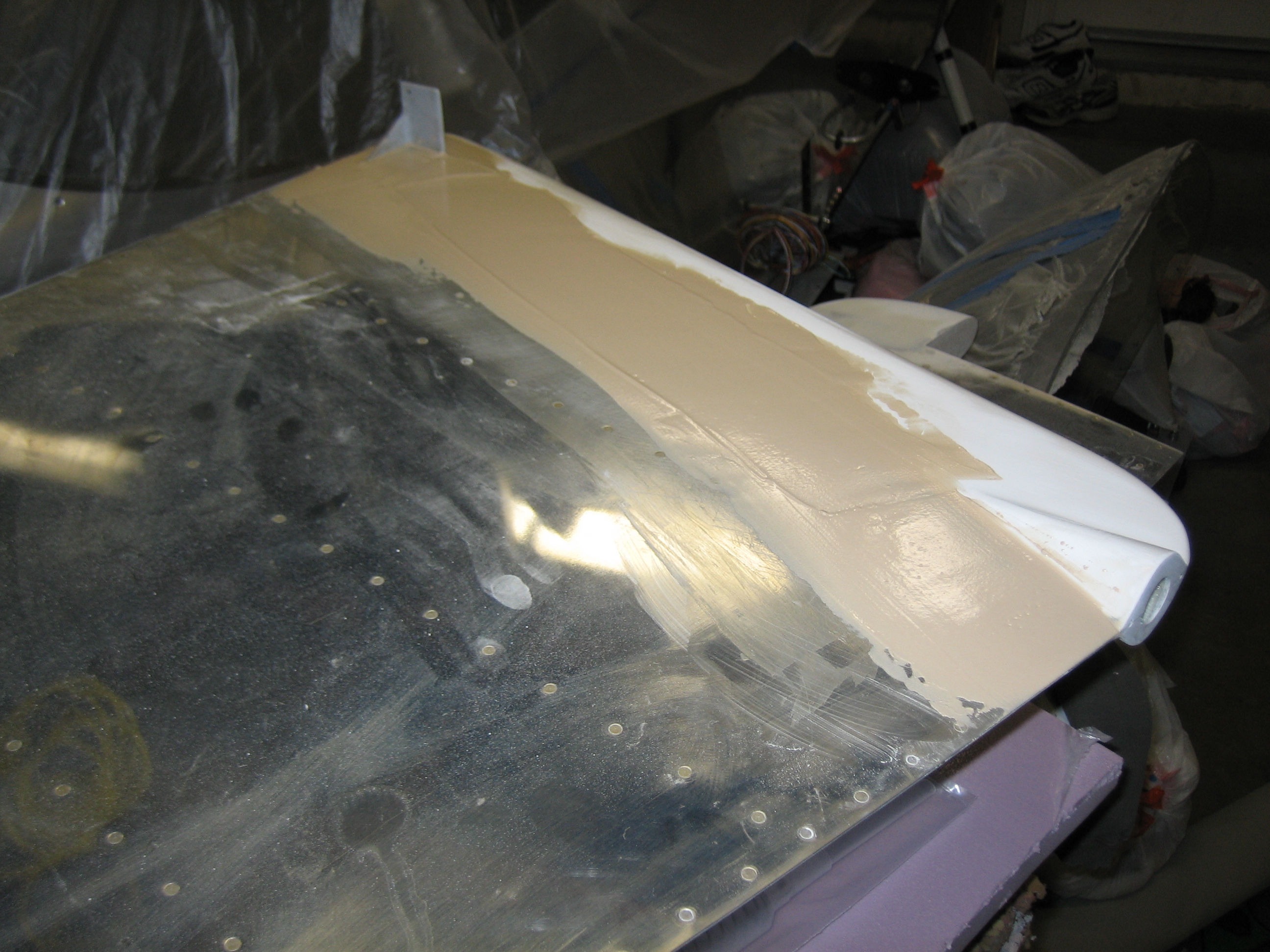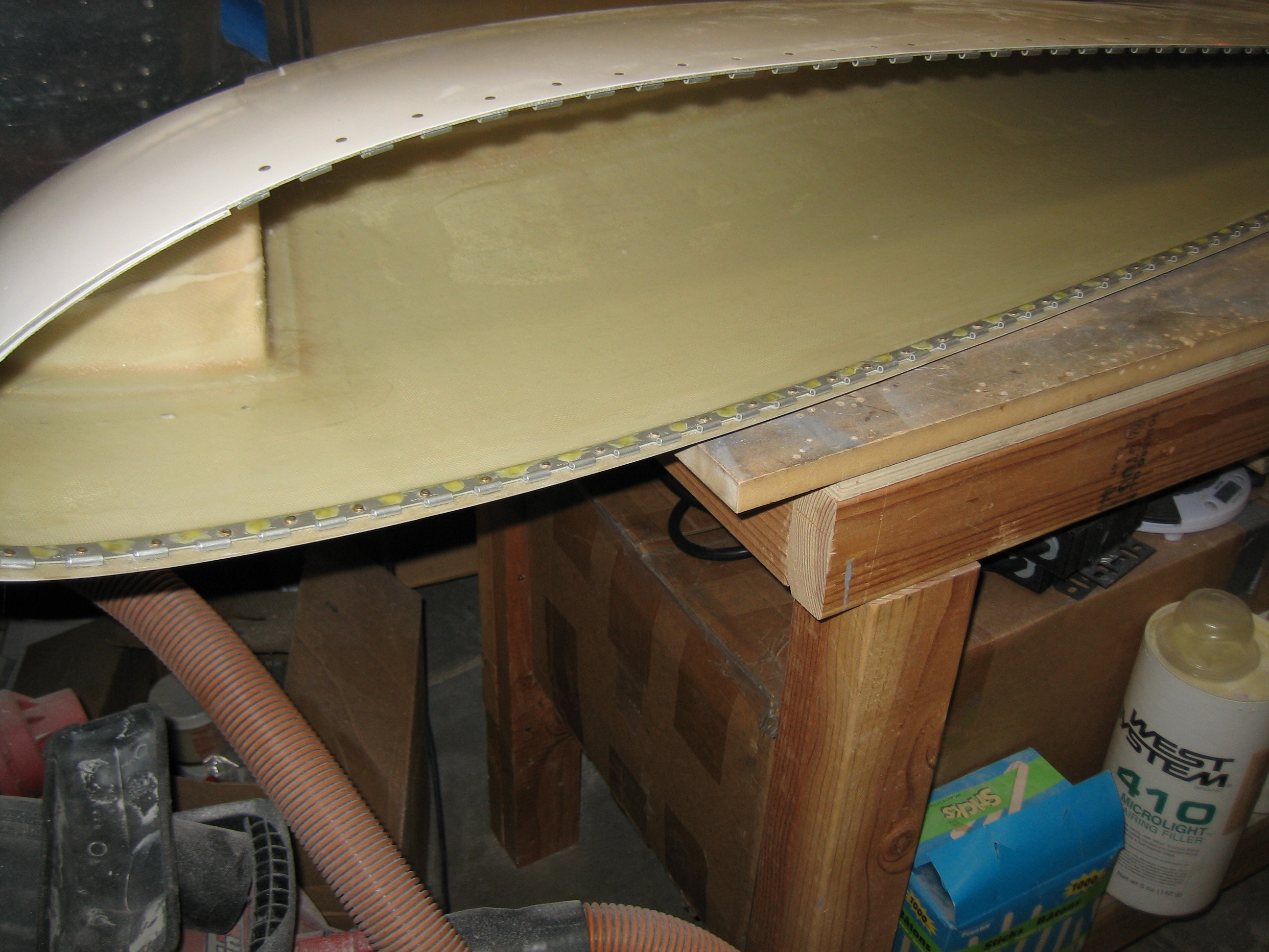 You can also see some epoxy/flox on the outer edge of the wingtip. I needed to add a little bit so that the outer edge of the wingtip could be filed to a straight line.