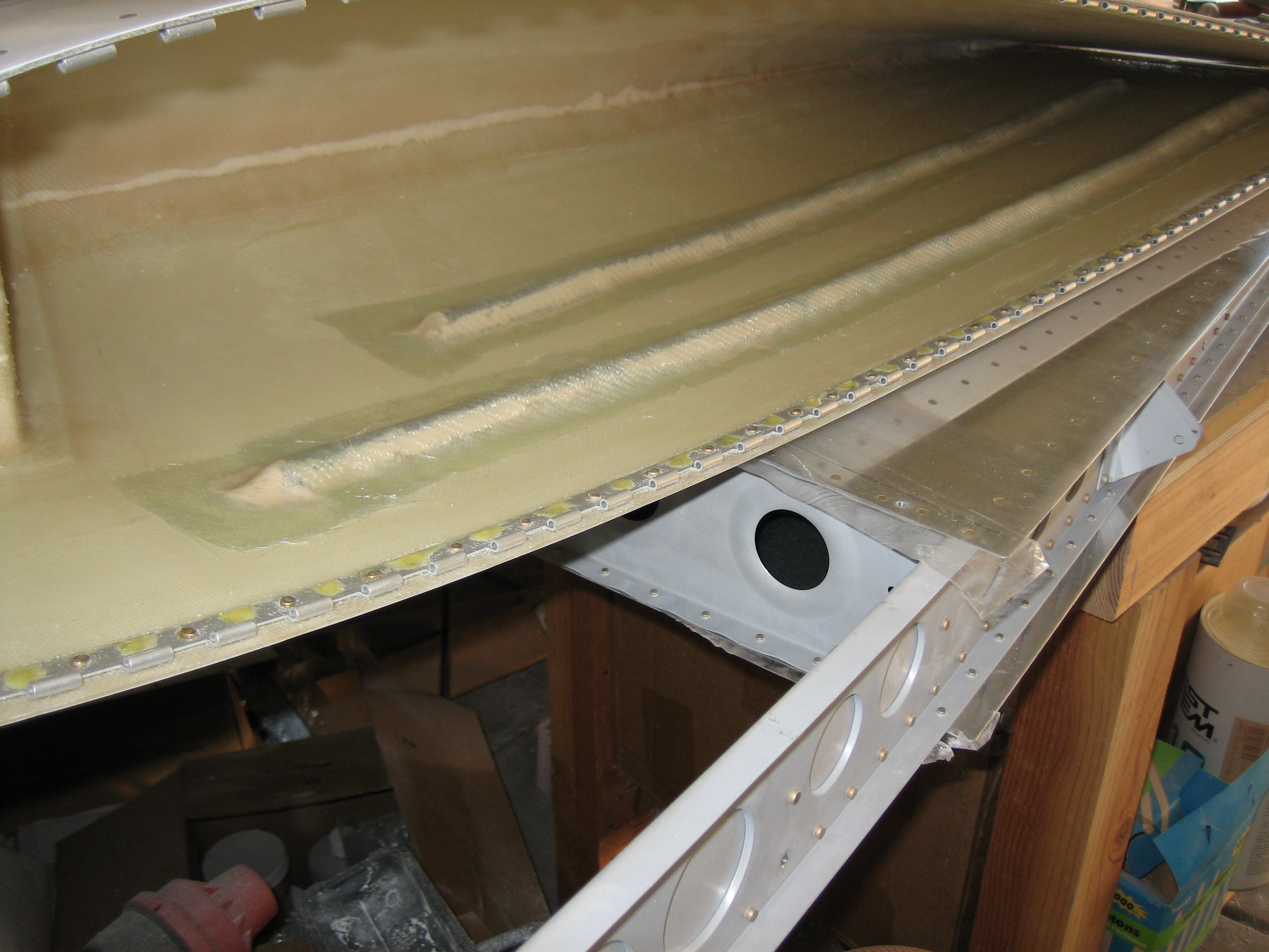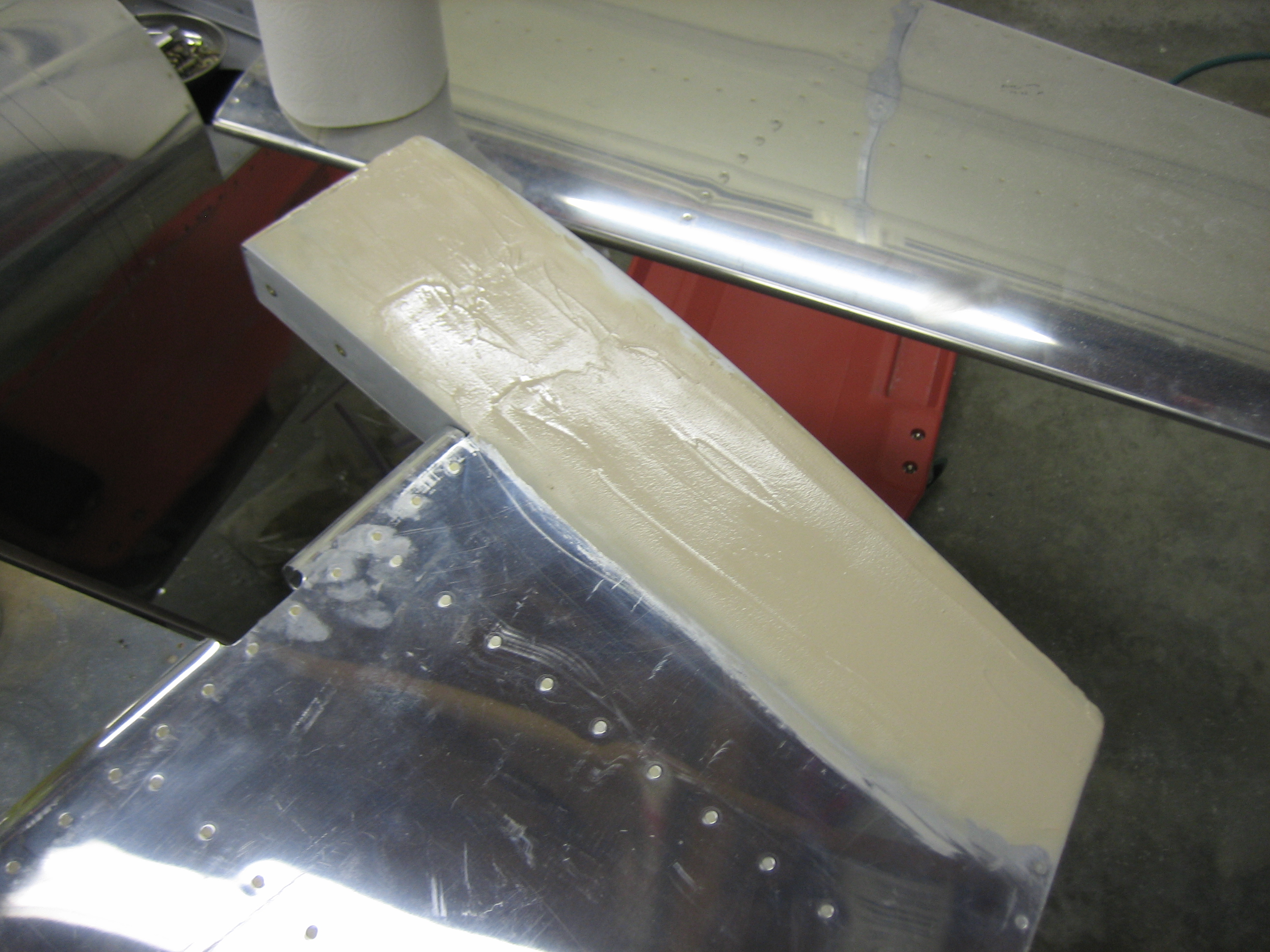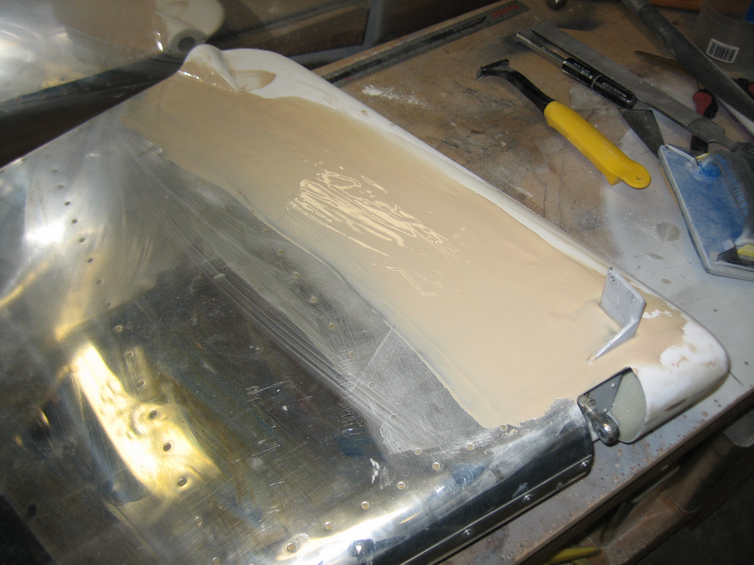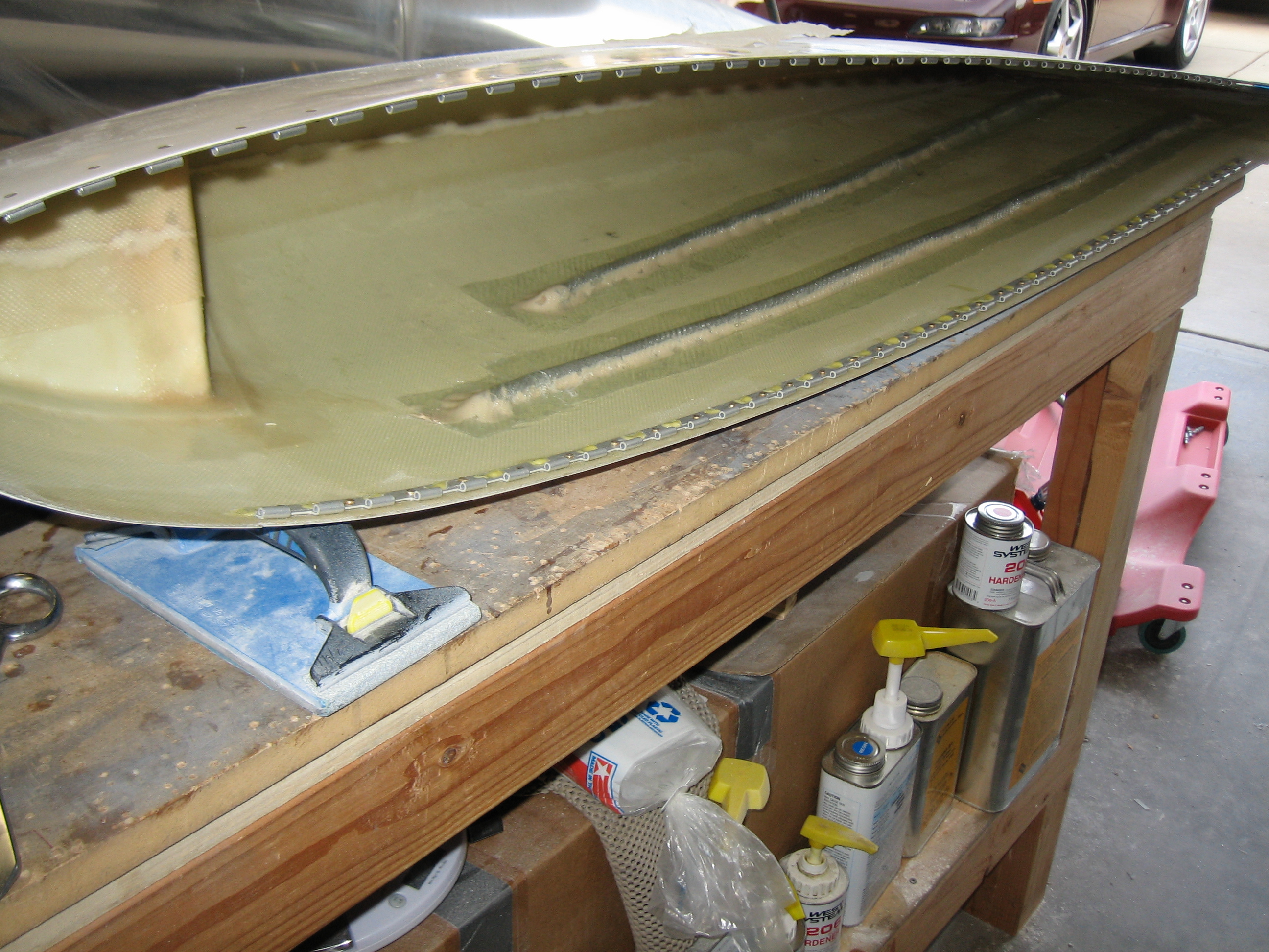 You can also see some epoxy/flox on the outer edge of the wingtip. I needed to add a little bit so that the outer edge of the wingtip could be filed to a straight line.