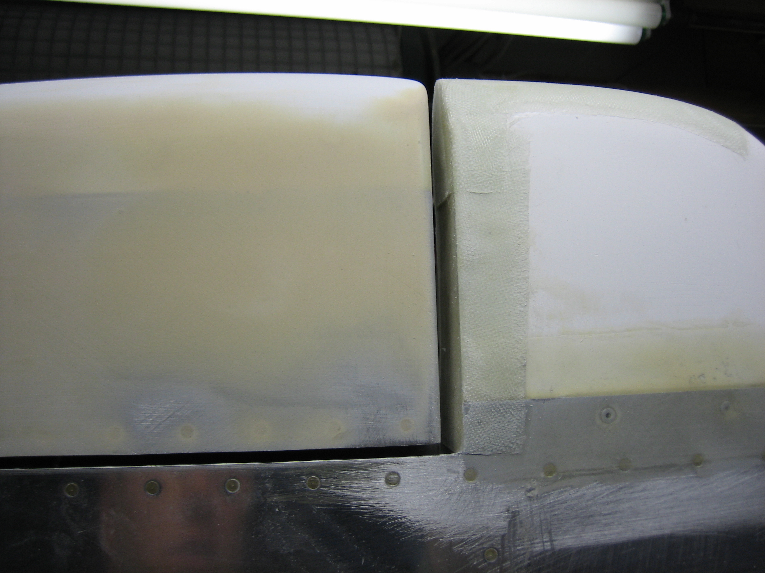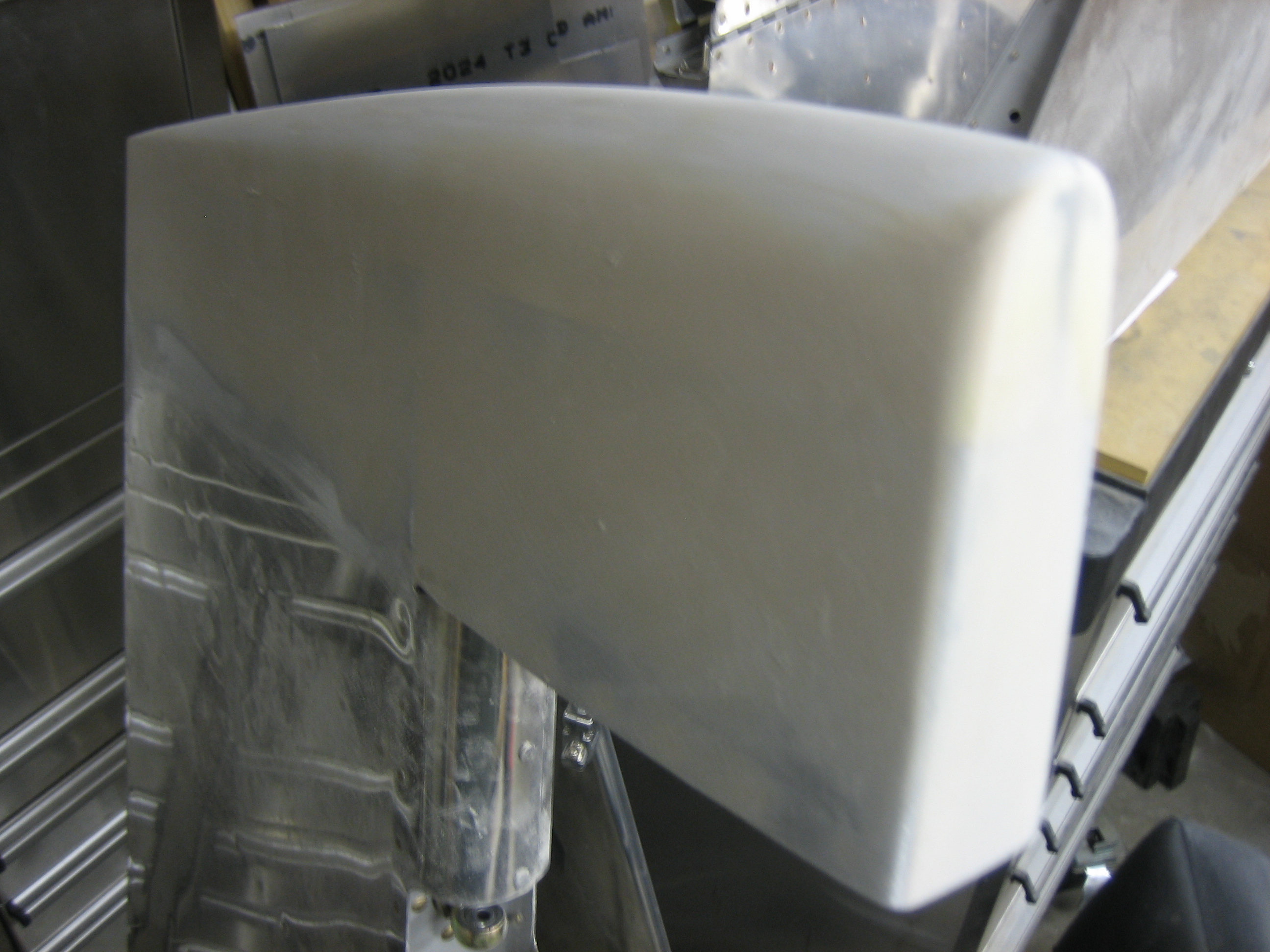 I started fairing in the rudder and vertical stabilizer. You can see that there is now a continuous curve along the top and the sides match nicely. I need to add a little more filler in a few low spots, but this is turning out very nice.