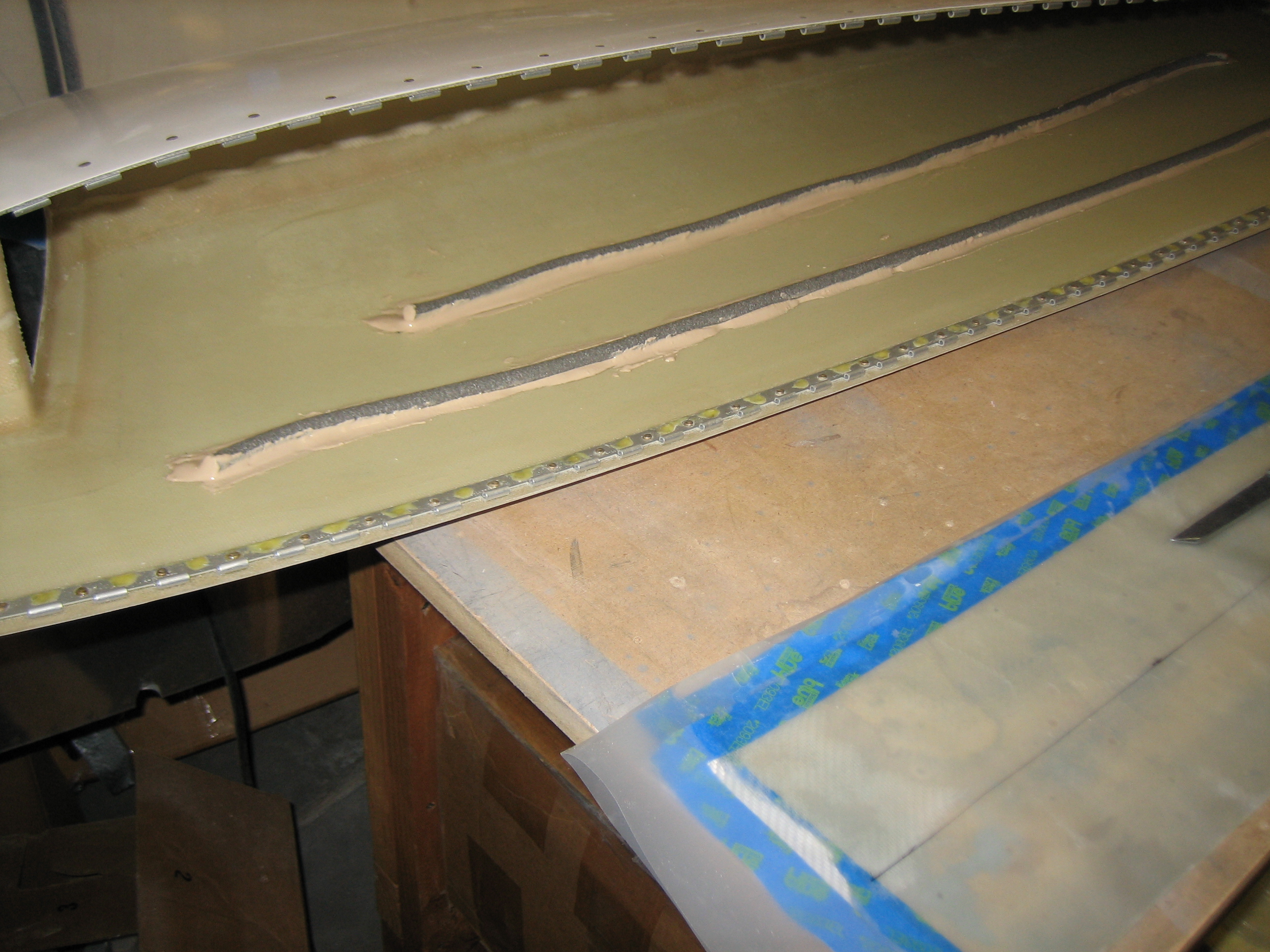 With those done, I primed the backside of the ribs and installed them with epoxy/flox and soft rivets.