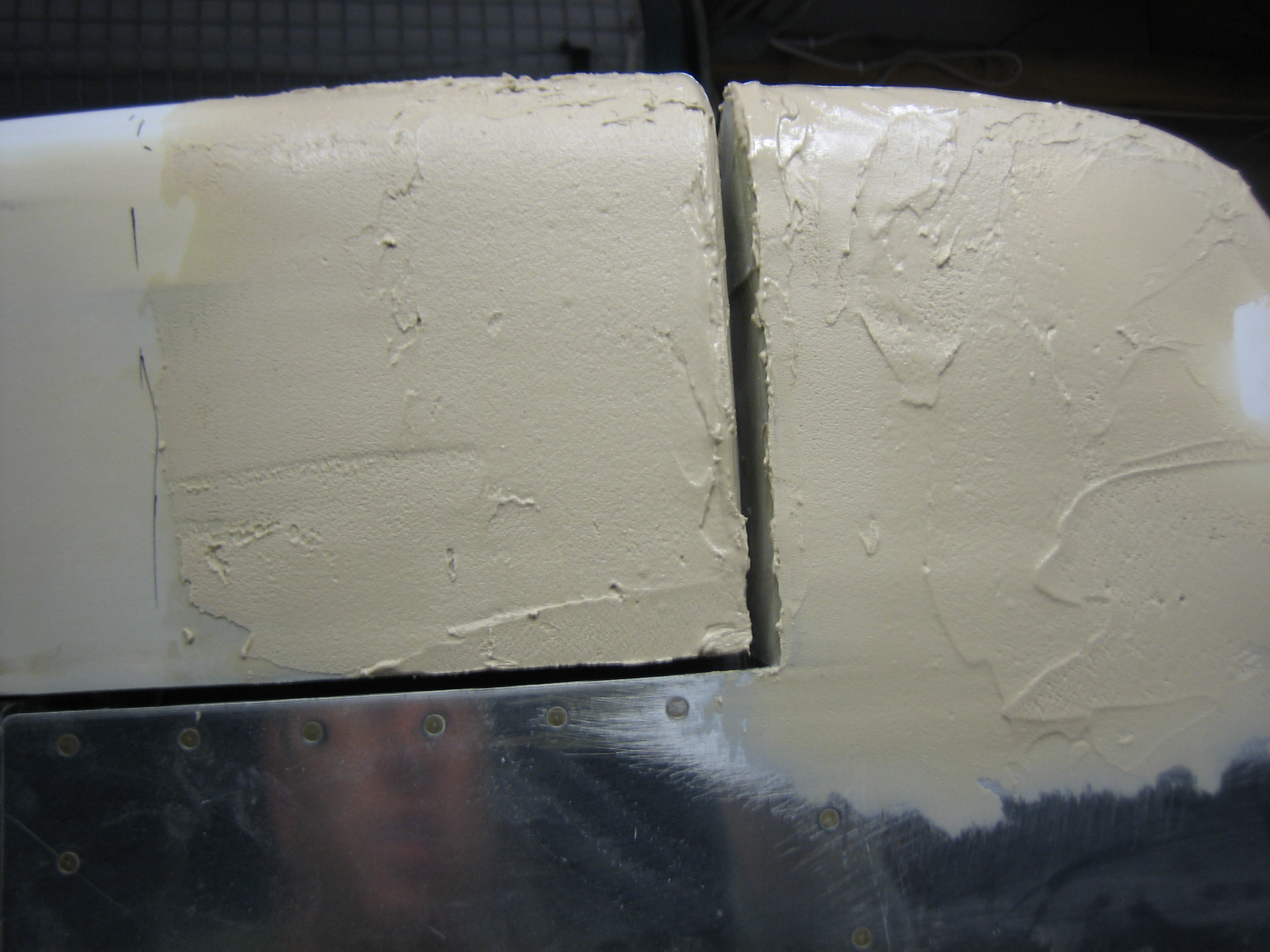 I also sanded down the additional filler I applied yesterday. I still need to apply some filler inside the gap, but the outside shape looks great.
