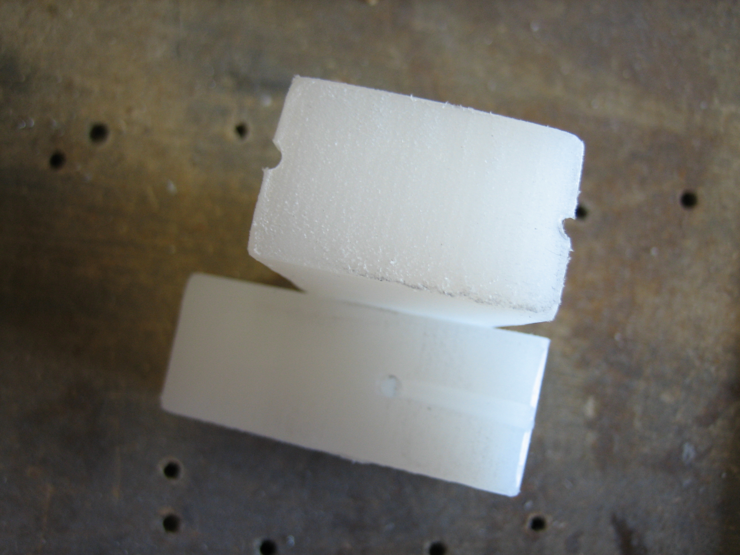 Here’s how they look when installed. The hinge pins can’t back out of the block because they’re trapped by the flange of the rib. The block also provides a convenient handle to extract the pins.