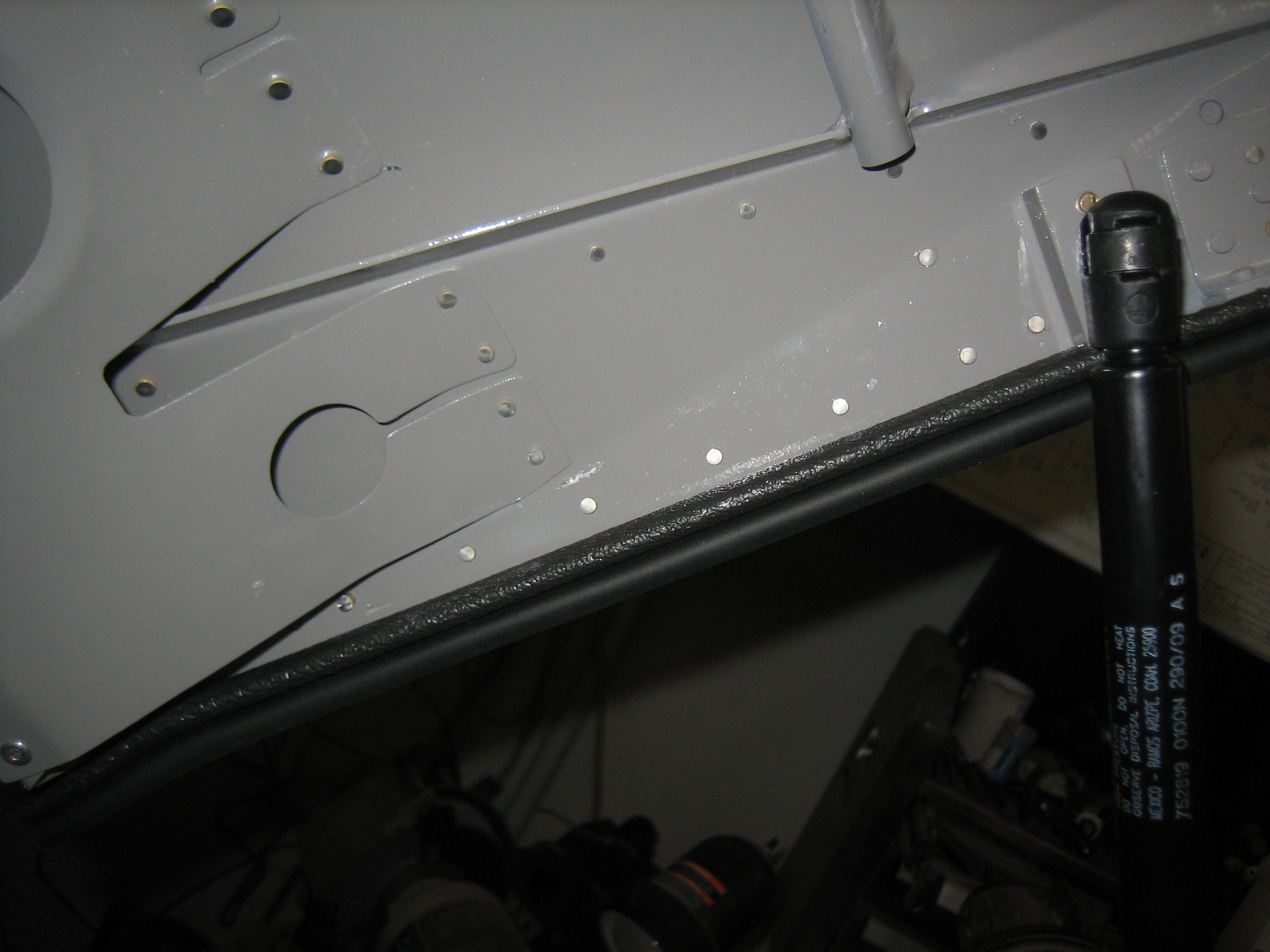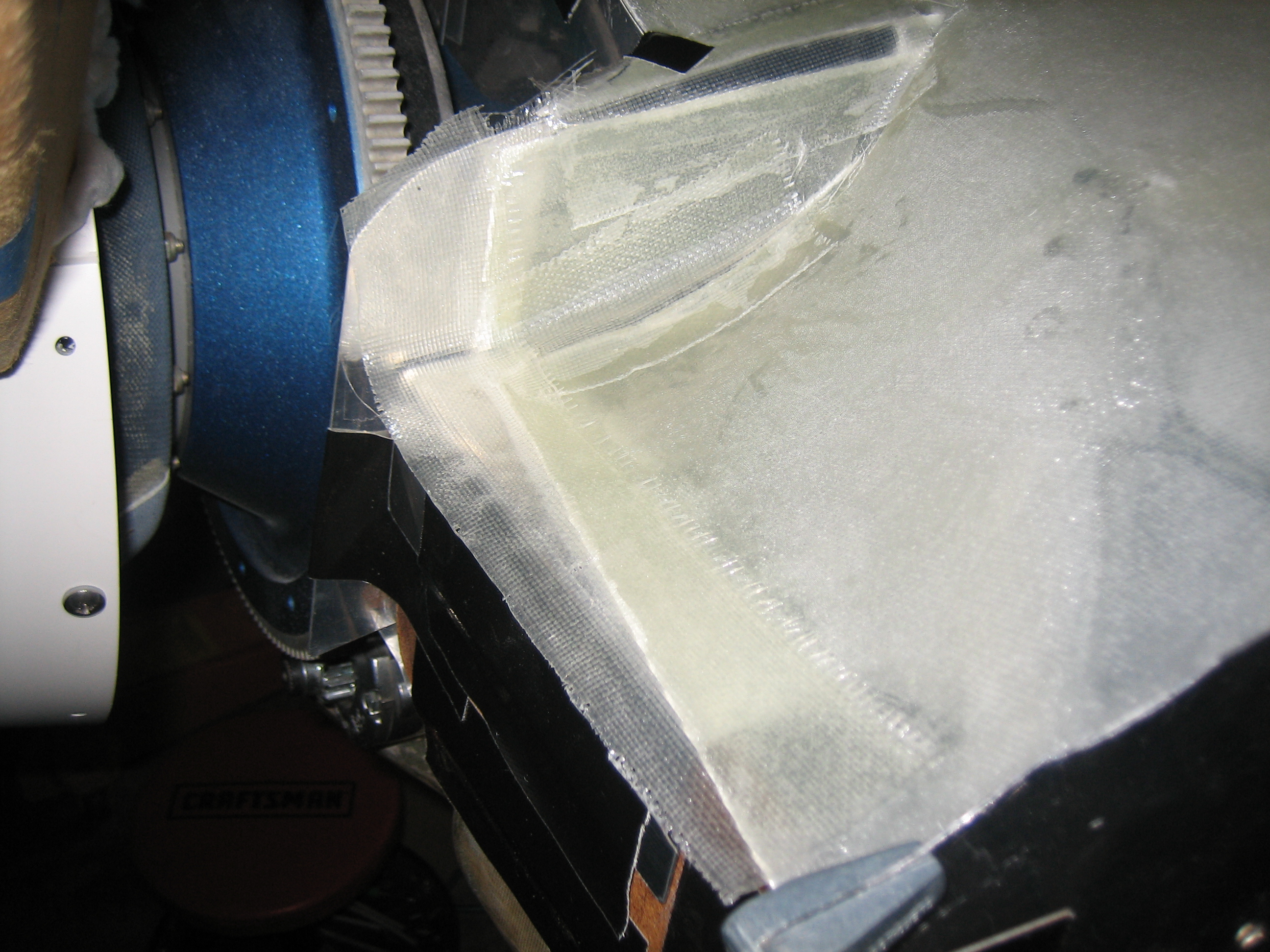 Afterward, I got started on the cowl again by riveting one of the side hinges on with epoxy/flox. This was substantially easier than the other hinges because the eyelets protrude beyond the edge of the cowling. This made it far easier to clean up the excess epoxy since it didn’t squeeze into the area between the eyelets.