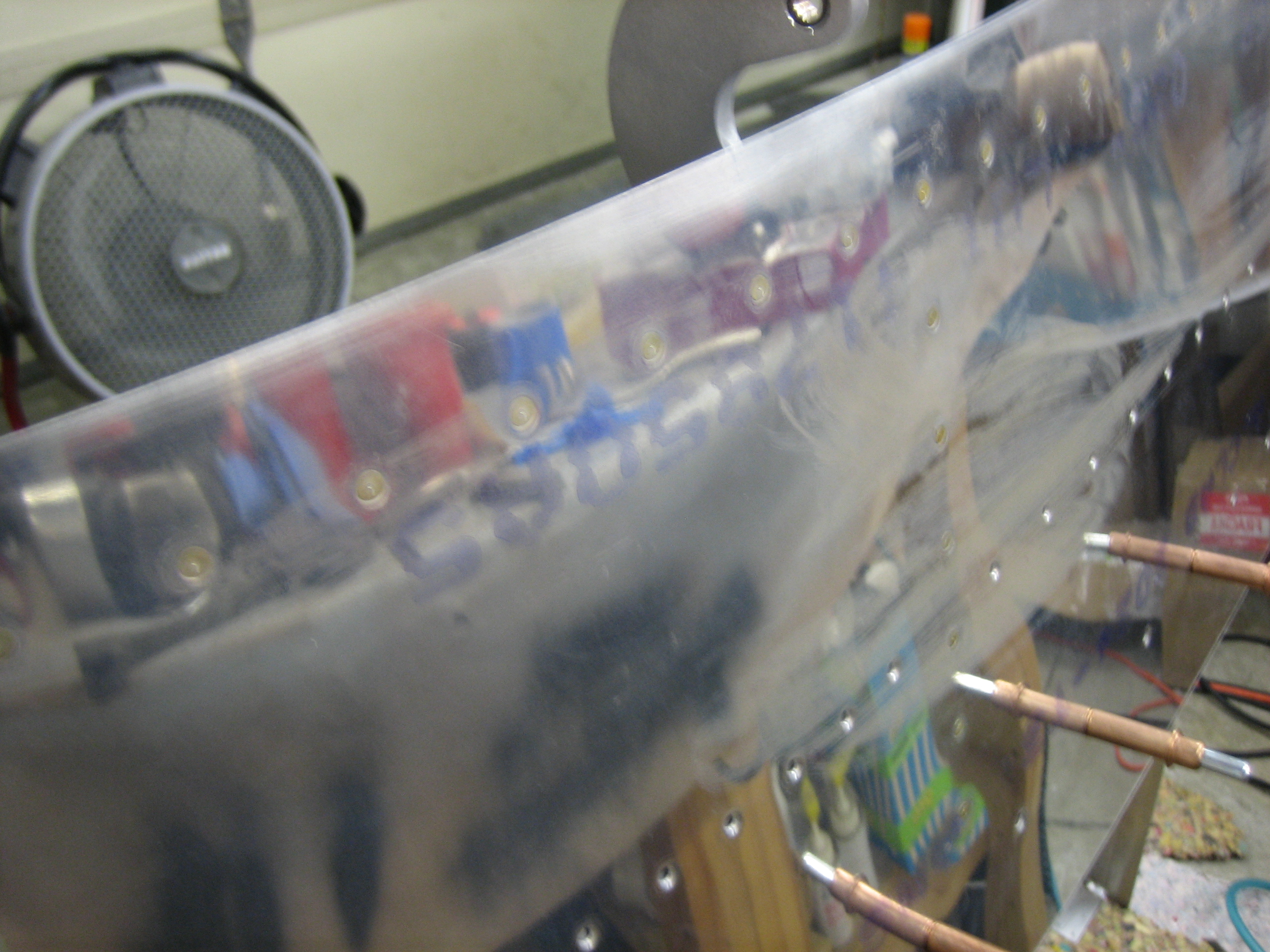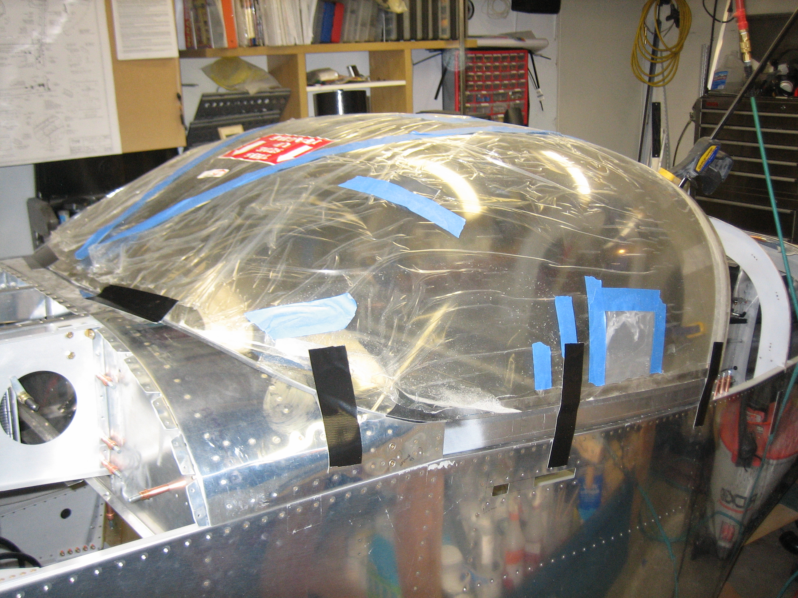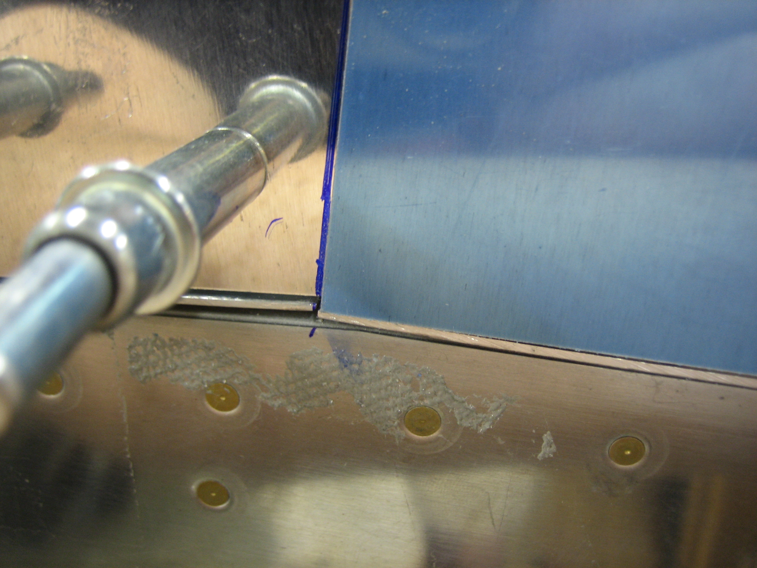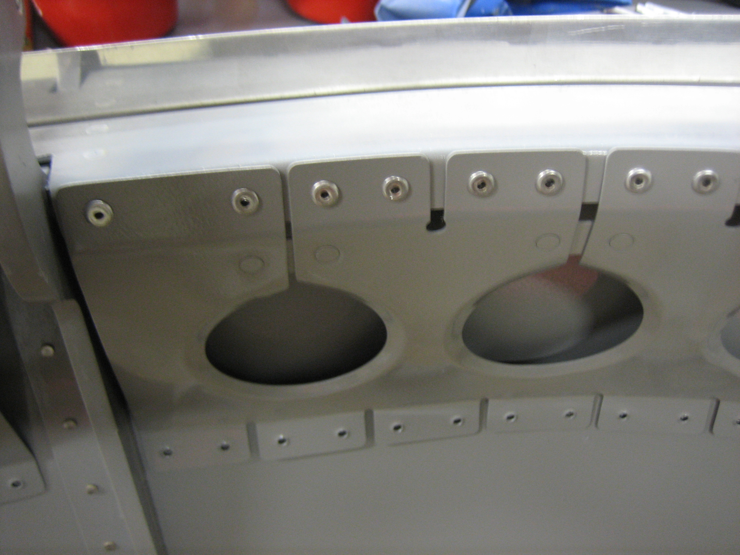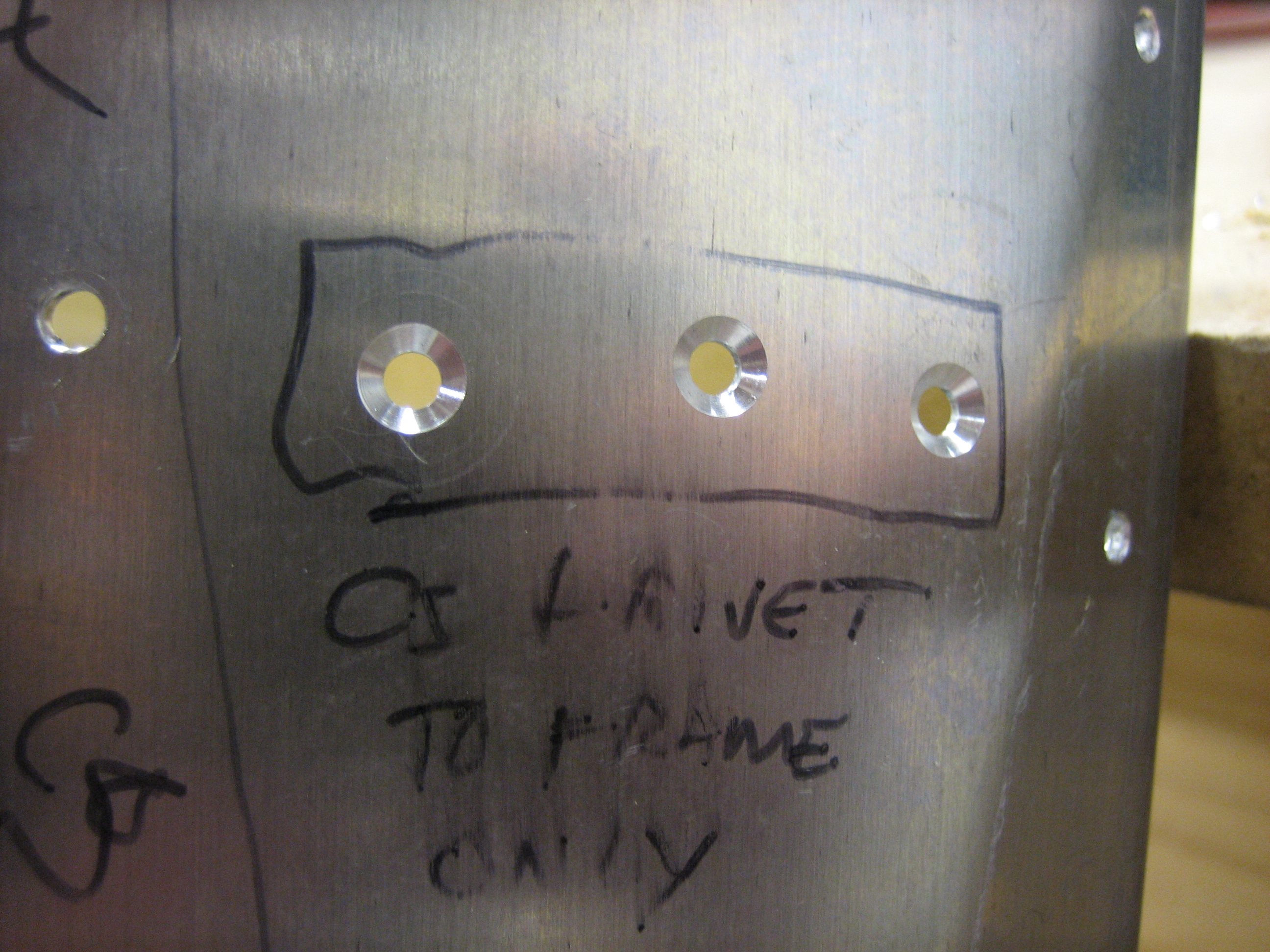 It’s a blurry picture, but we then riveted the skin to the canopy frame channel. This was a bit tricky because the outer canopy frame reinforcement pieces needed to be bent out of the way to reach most of these rivets since it was already riveted on. We couldn’t rivet it on afterward though because there wouldn’t be access to squeeze the rivets above.