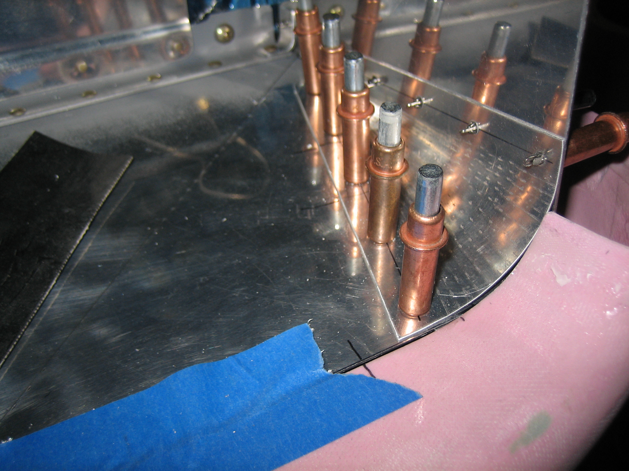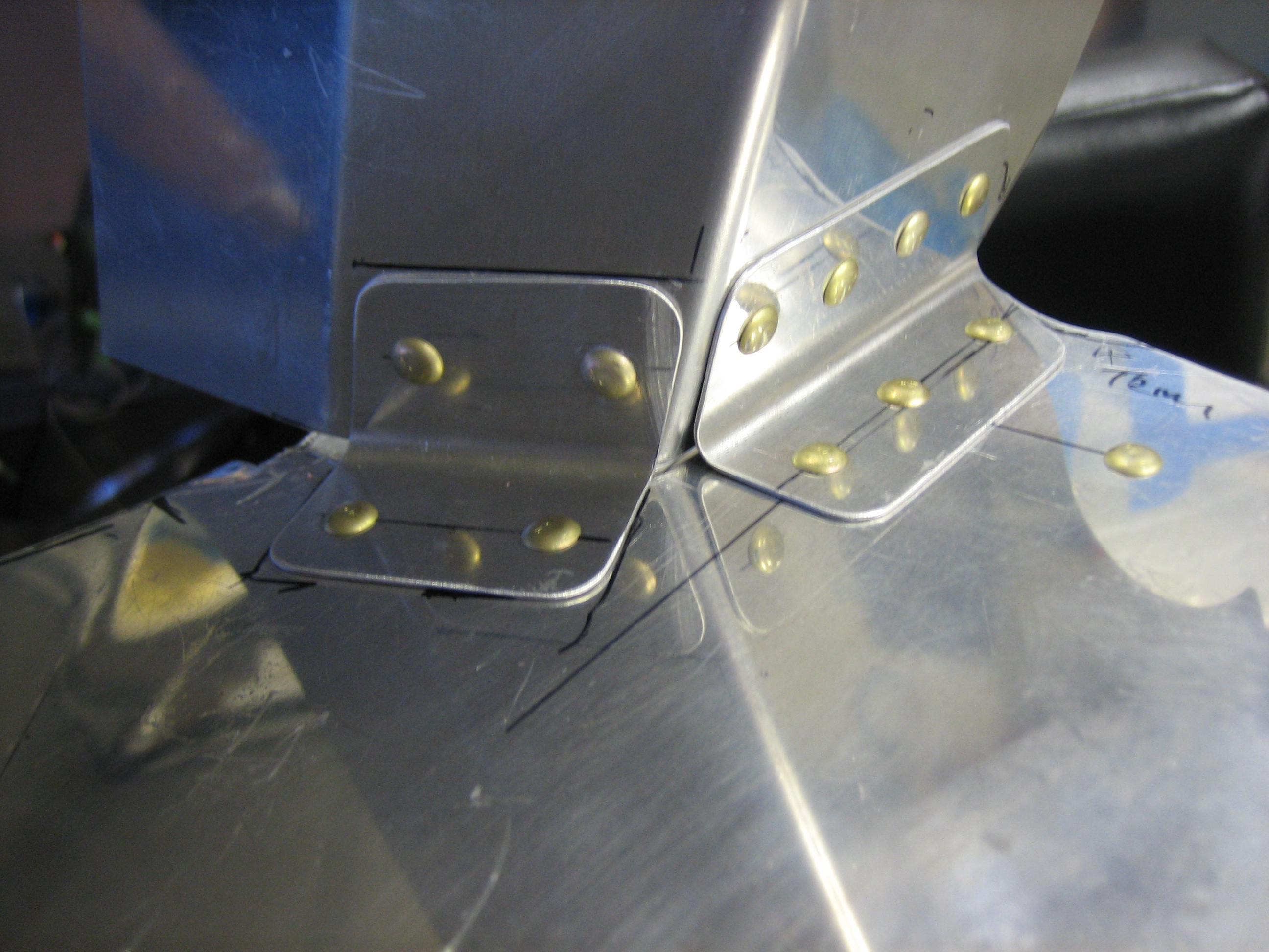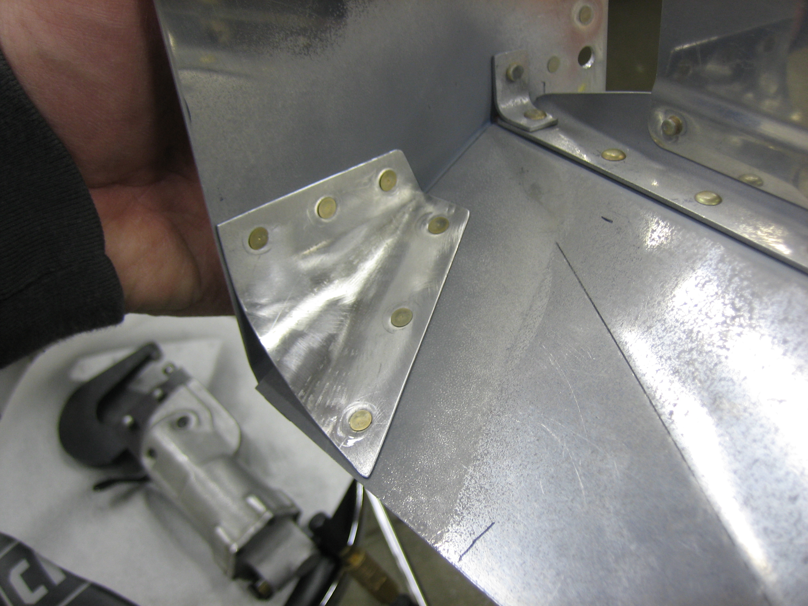 I deburred everything and riveted the support brackets to the ramps and front center baffles. The plans call for universal rivets here, but I might have to swap the rivets on the left bracket out for a flush head since the baffle seal material will rest here.