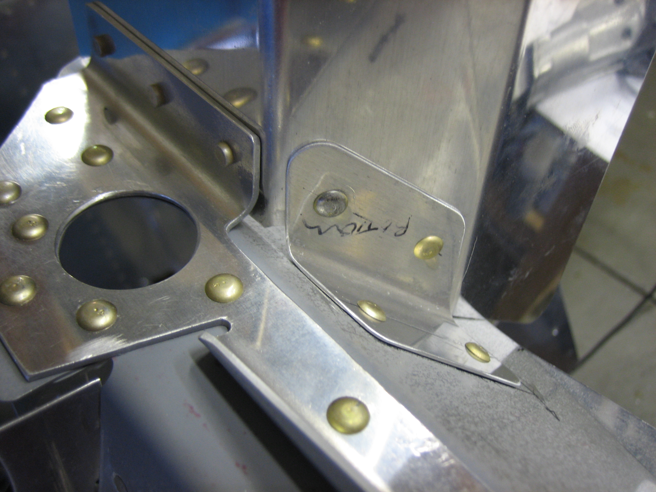 These are the brackets that tie the left ramp to the left center baffle. I positioned the vertical face against the side of the lower cowl inlet (with a piece of baffle seal between them) and then drilled the support on the left to lock in the position. I then pulled the lower cowl and back drilled the support on the right through the existing hole in the ramp and support that sits just under the ramp. I then pulled the bracket and drilled two more holes in line with that hole and then match drilled them to the ramp. Getting all of this in the right position was a little tricky until I figured out the order, but everything worked out nicely.