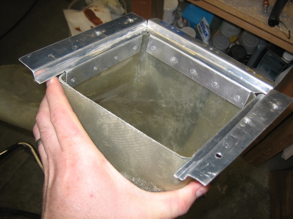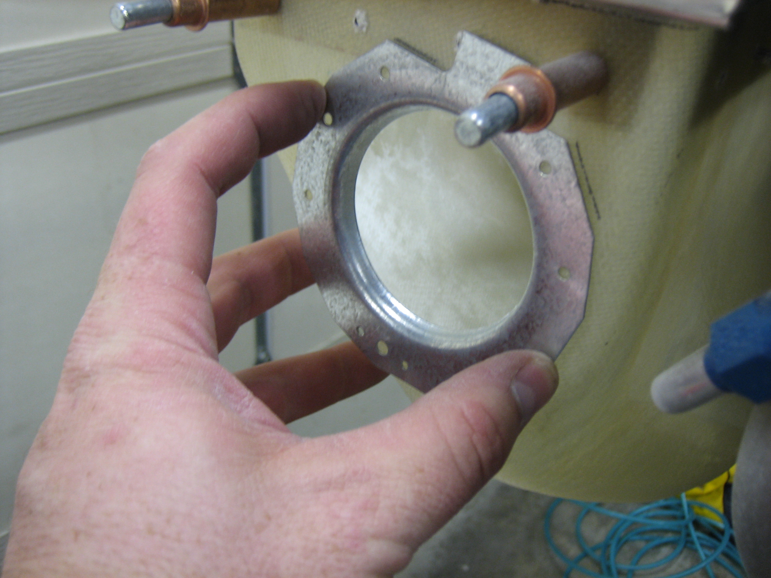 I meant to post this a few days ago, but here’s the flange nicely centered in the hole. I picked up some aluminum screen material to rivet between the ramp and flange to keep out bugs and debris.
