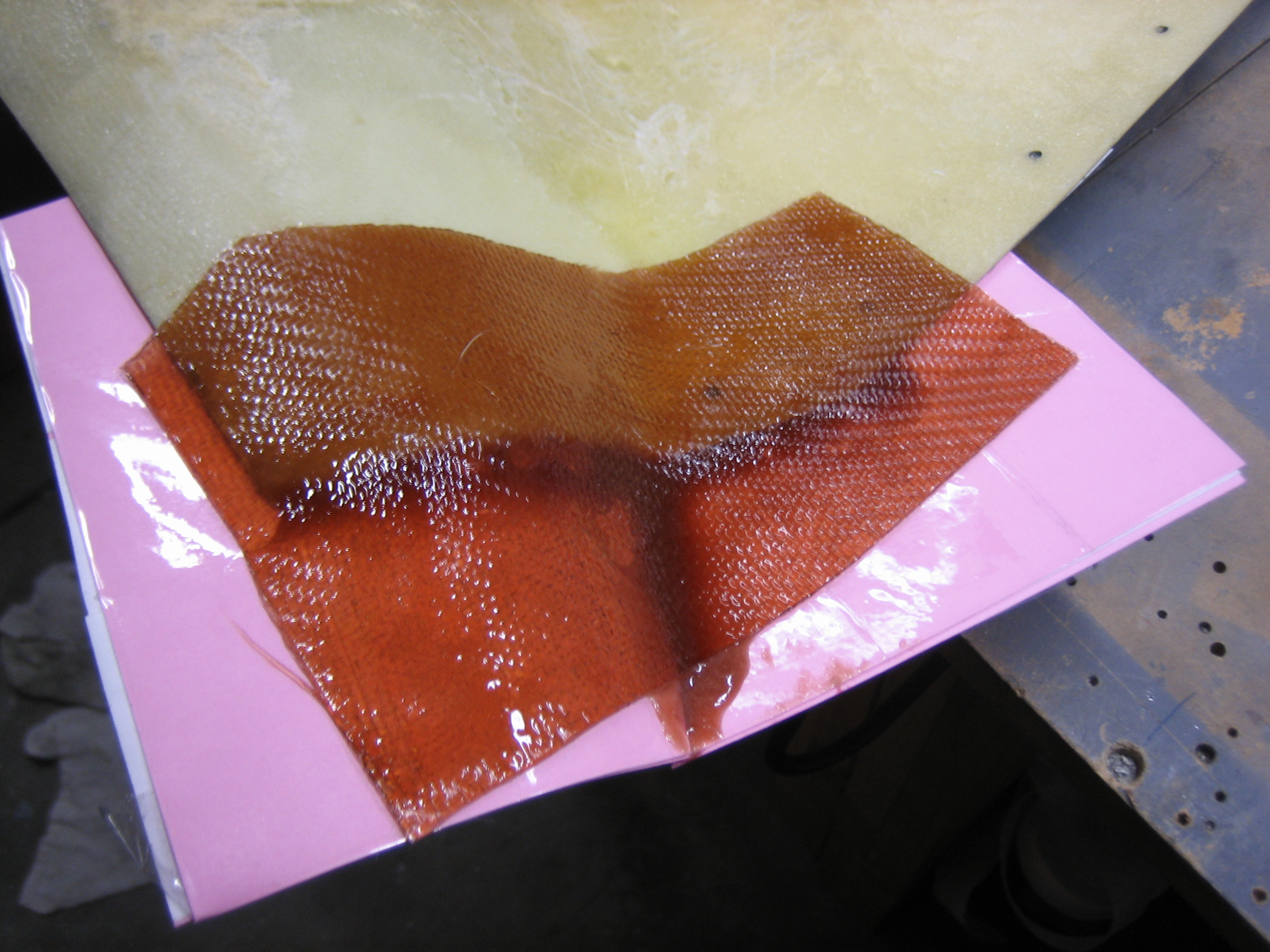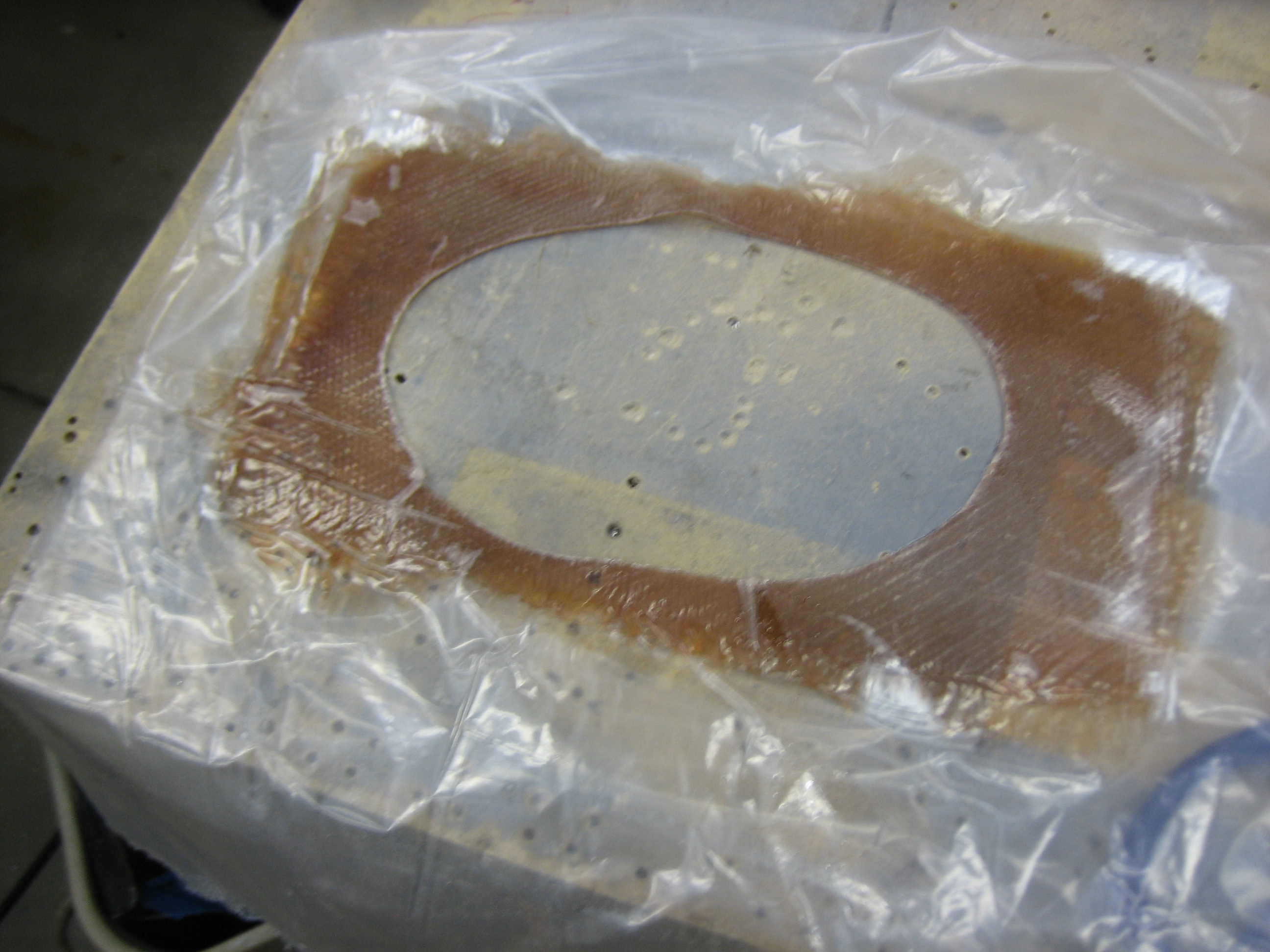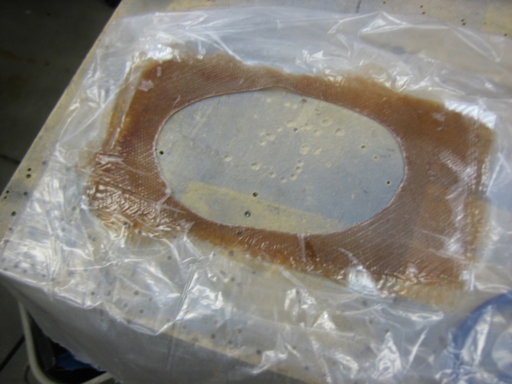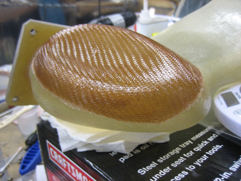 Finally, I sanded and cleaned the surface and flange, then clecoed it down with some epoxy mixed with flox. I then roughly faired in the flange so that there is a nice transition to the snorkel. The flox leaves a fairly rough surface though; I’ll use some filler to smooth this out nicely after it cures.