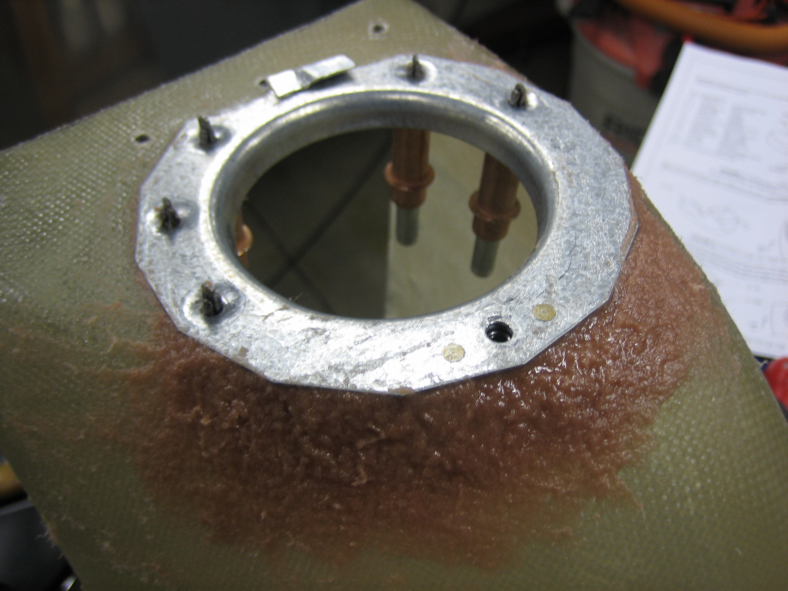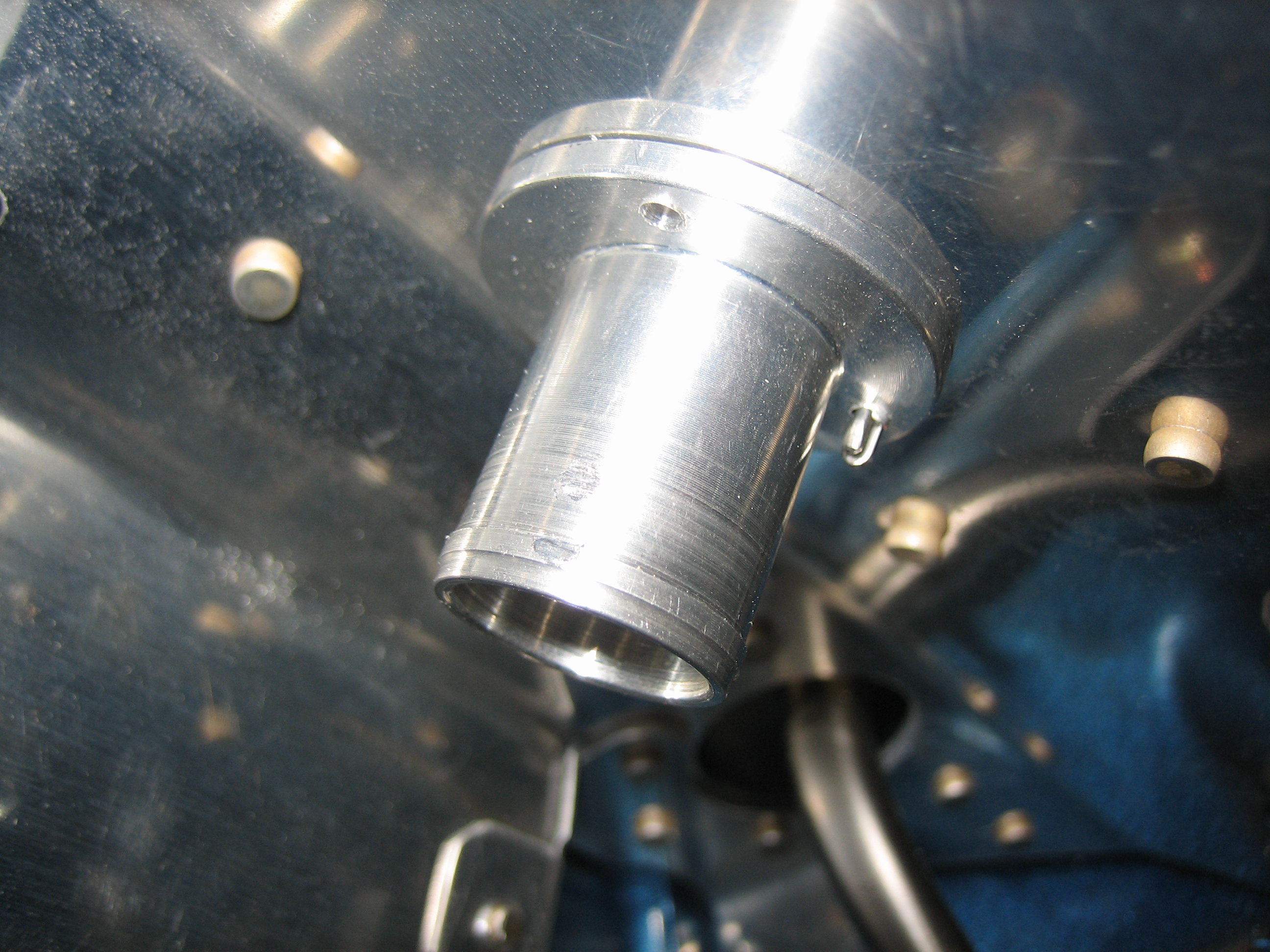 The flange is drilled to the snorkel. The center hole in the bottom of the flange needs to be match drilled to the snorkel using a #19 drill and then later opened up to 1/4″ in the snorkel so that the nutplate can fit through the hole.