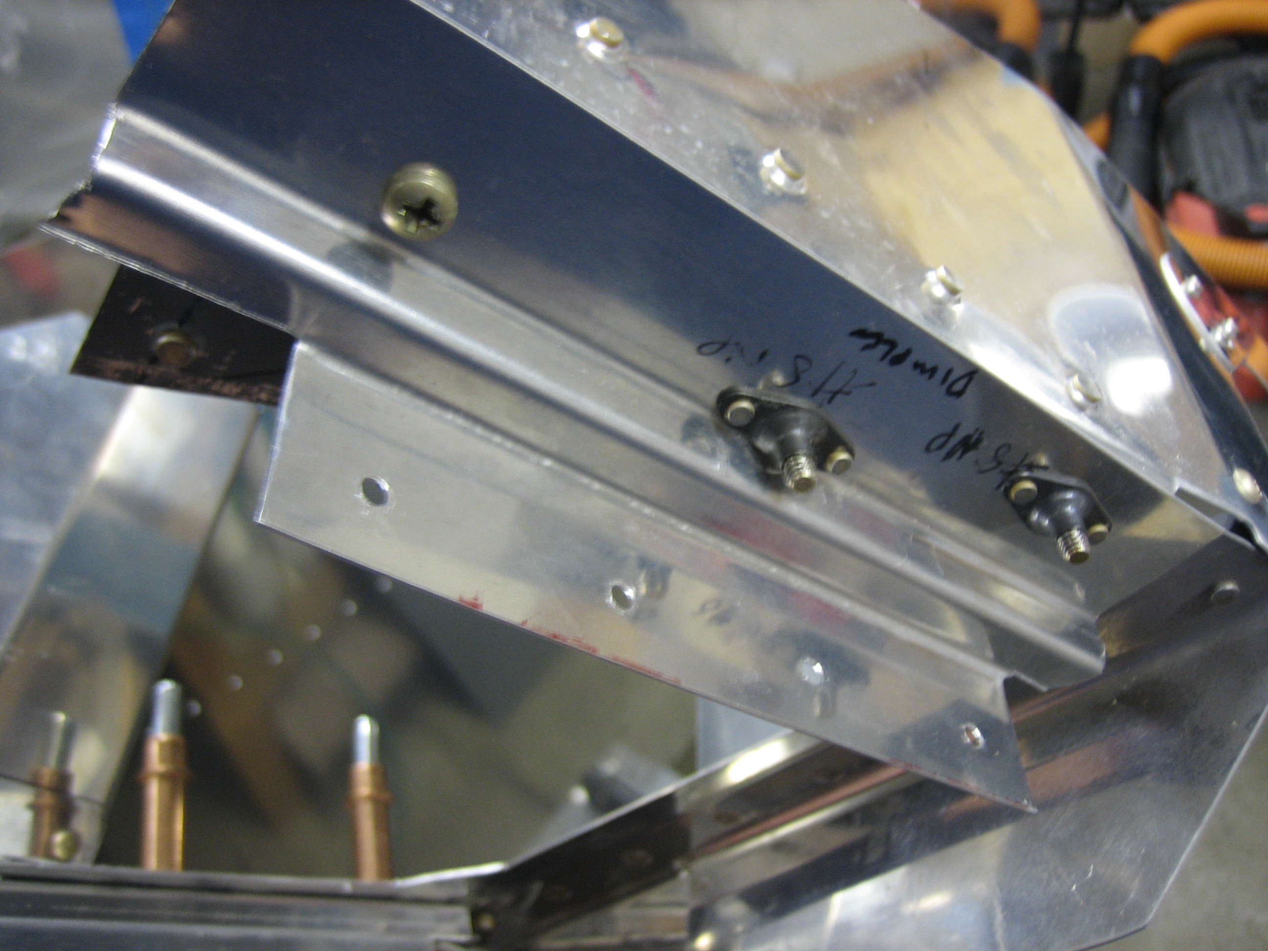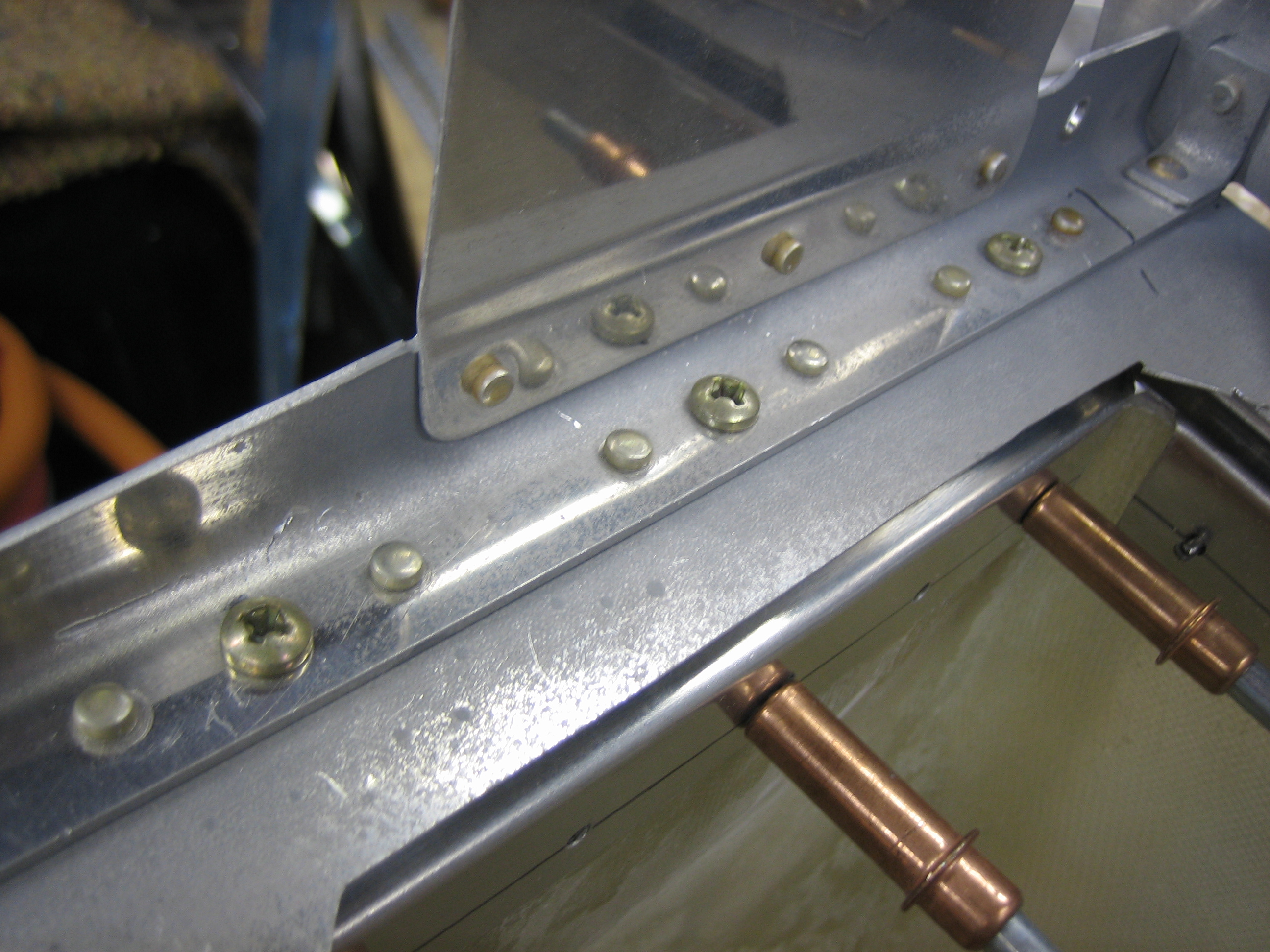 There’s a third screw at the forward end of the flange, but this screw installs from the bottom because of the conical gusset. The nutplates are K1100-08 for the flush head screws.