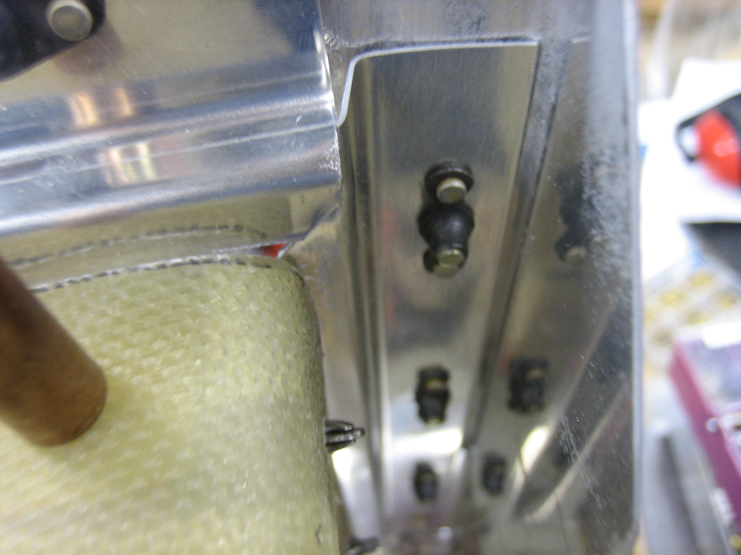 You can see that this screw goes into a K1000-08 nutplate that I mounted under the conical gusset. I used an AN509-8R6 screw because of the tight clearance.