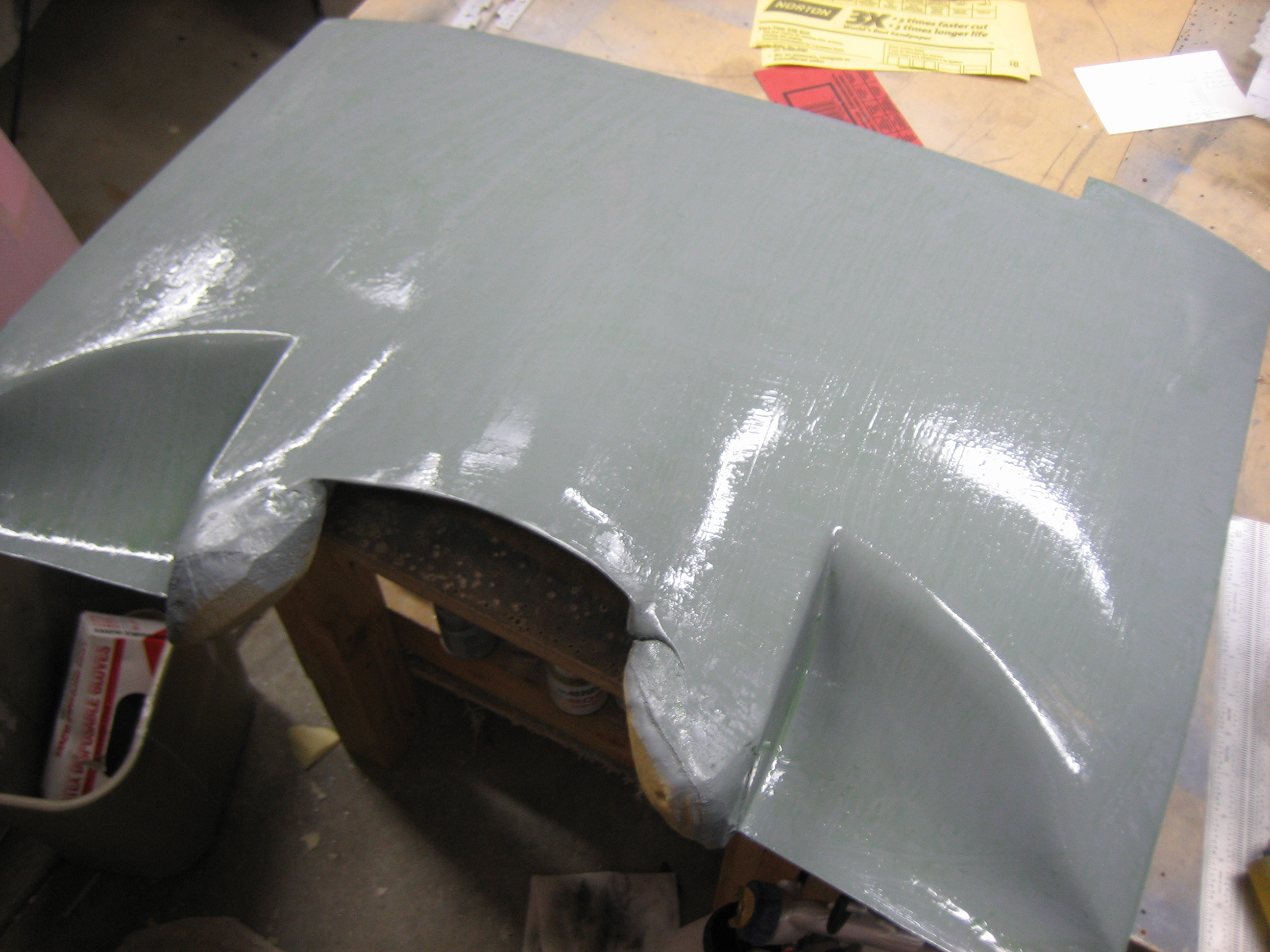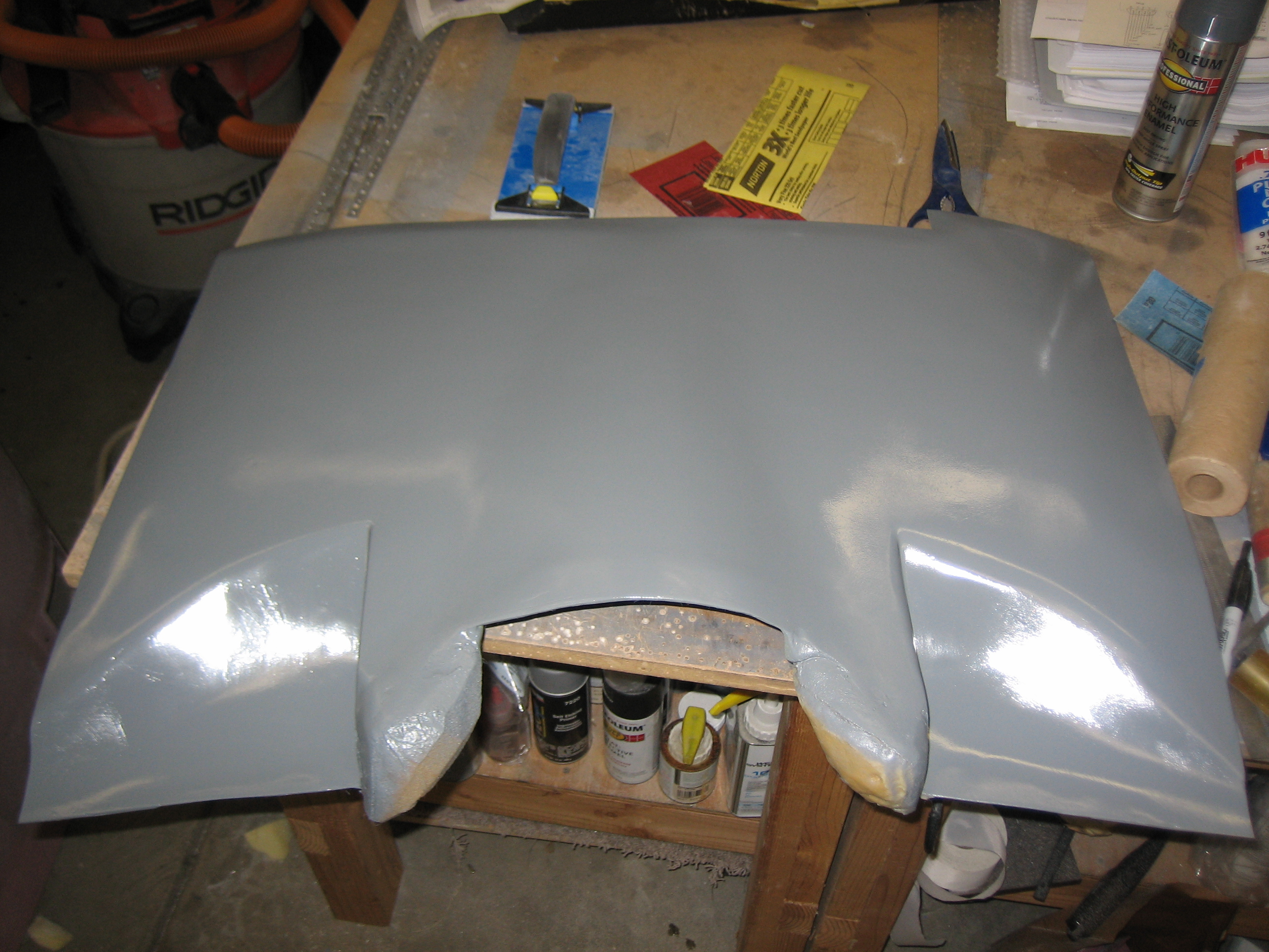 I sanded down the filler and then sprayed a few coats of enamel on the mold to provide a smooth surface to layup the plenum against.