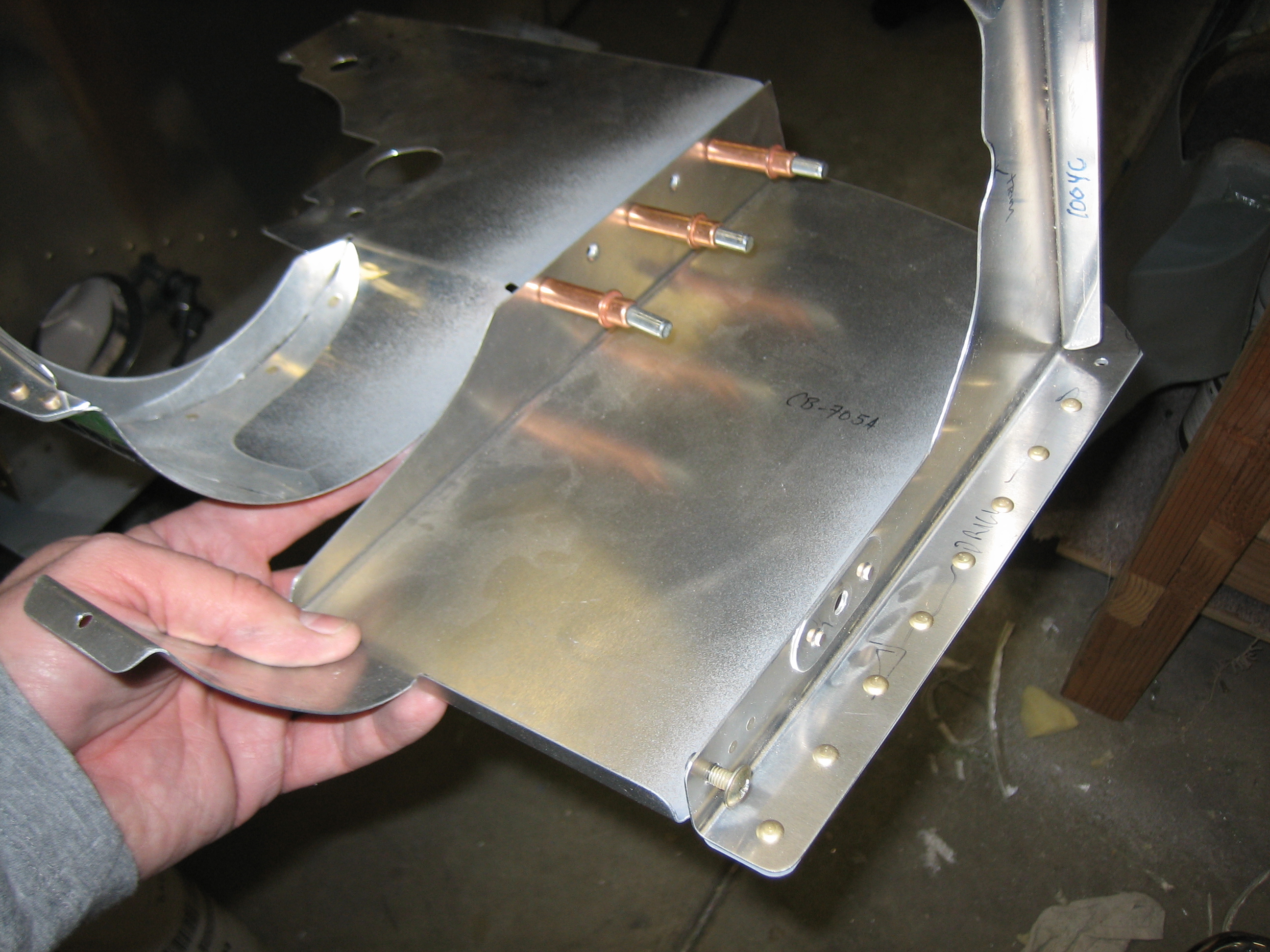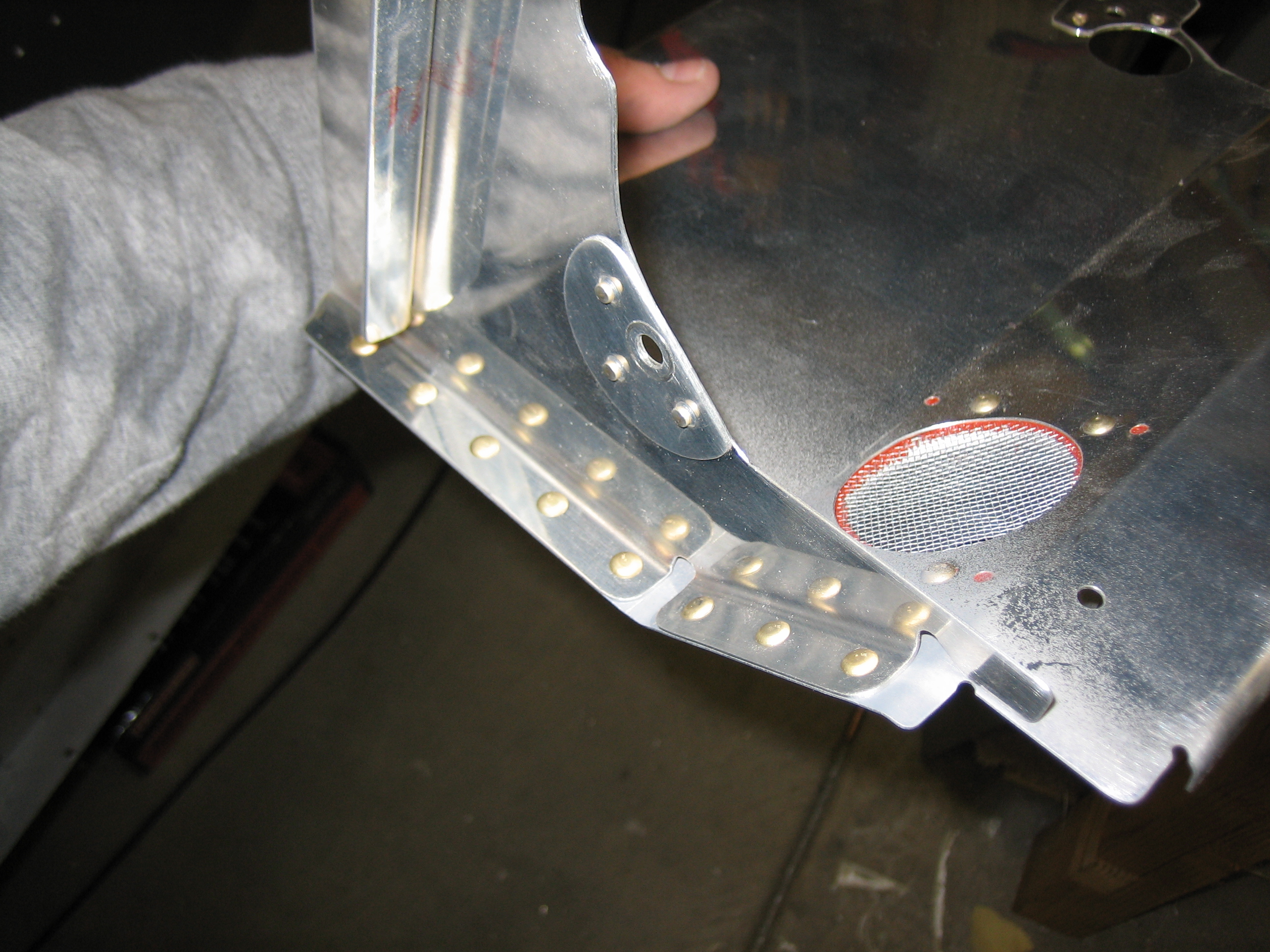 I also riveted the #3 side baffle to the aft wall on the right side. I also trimmed the bottom outside corner to clear the manifold pressure fitting.