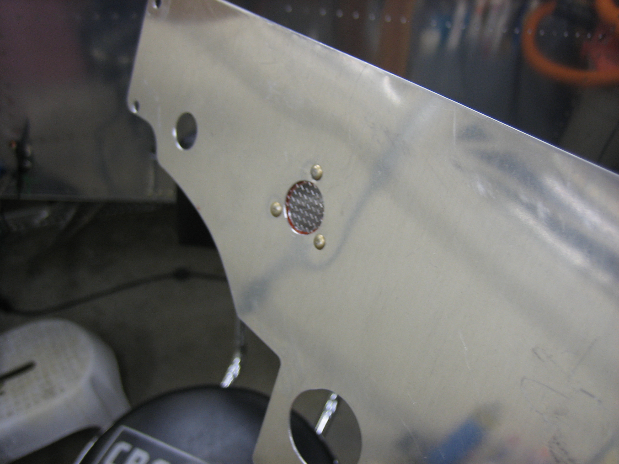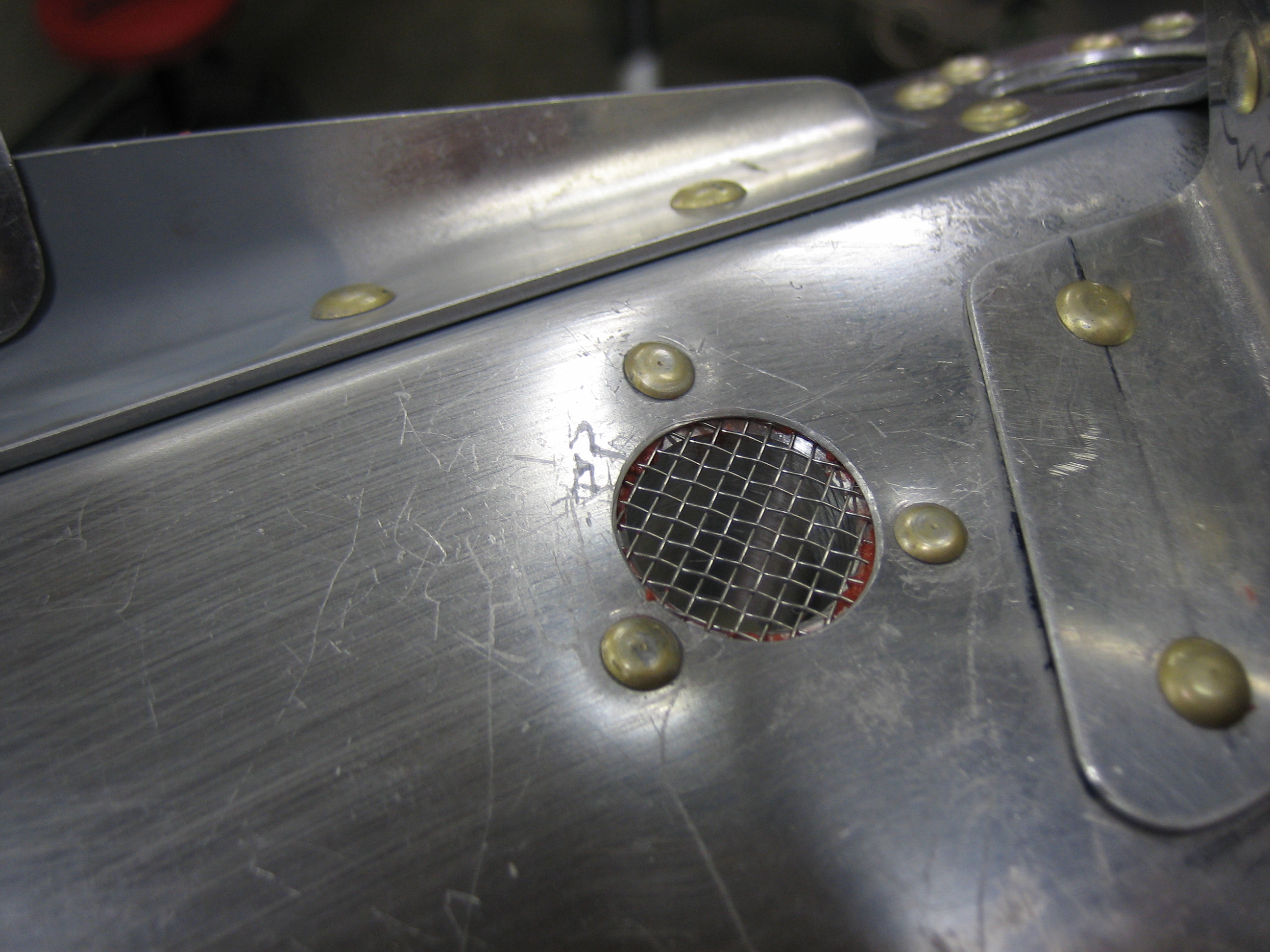 I riveted the blast tube flanges on to the baffles along with some stainless steel mesh to keep out the bugs and debris. This is the one on the front right baffles that sends cooling air to the alternator.
