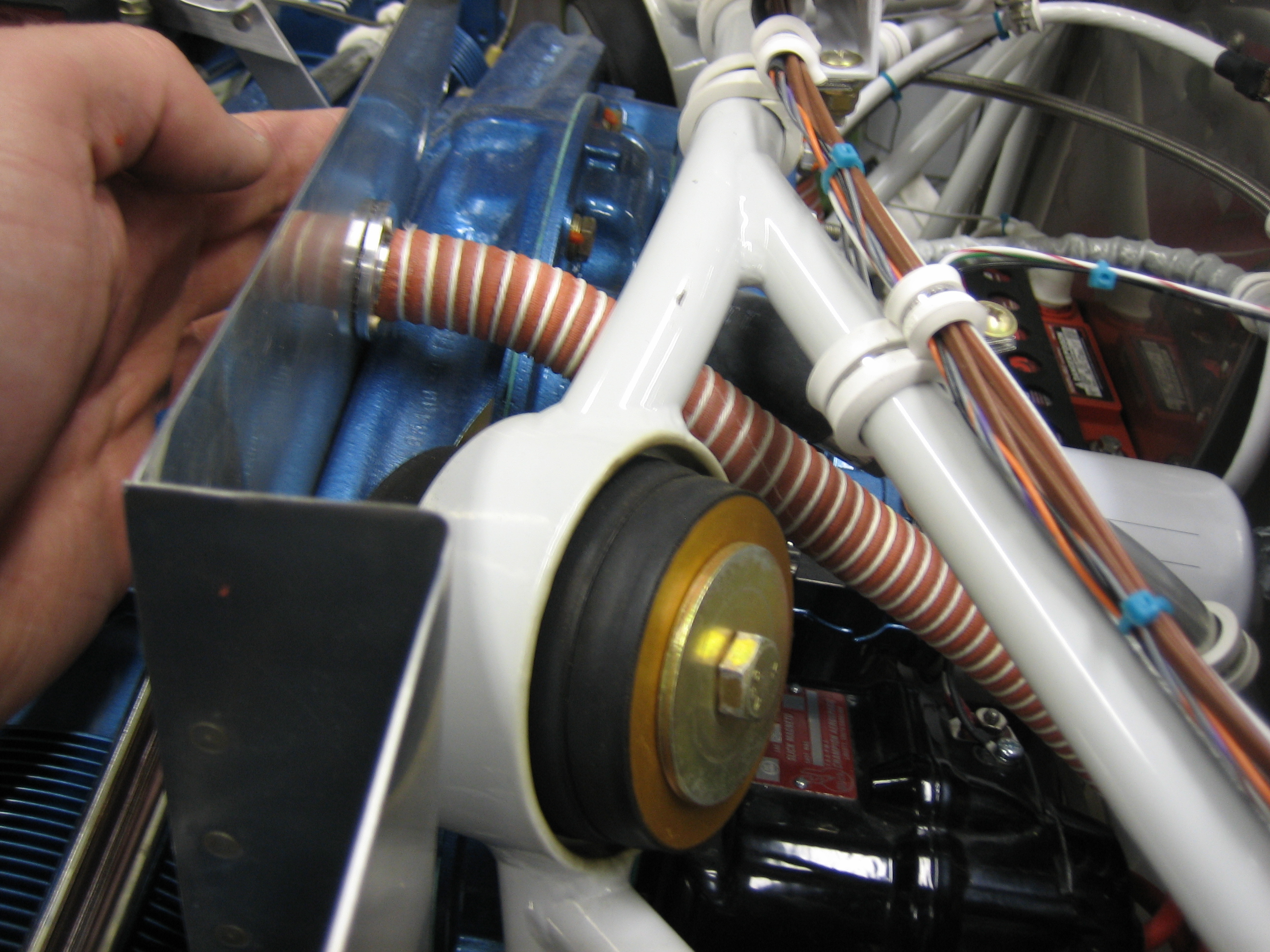 Here’s where this fits in relation to the magneto. This duct is obviously too long, but it shows the routing to the magneto. I’ll anchor the other end with an adel clamp anchored to the upper oil line.