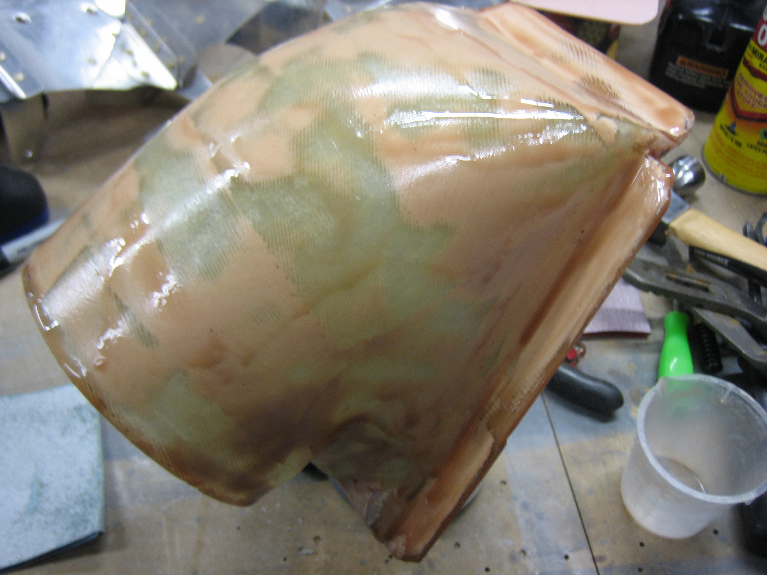 I put a couple of skim coats of straight epoxy over the oil cooler plenum to seal the surface and fill the pinholes.