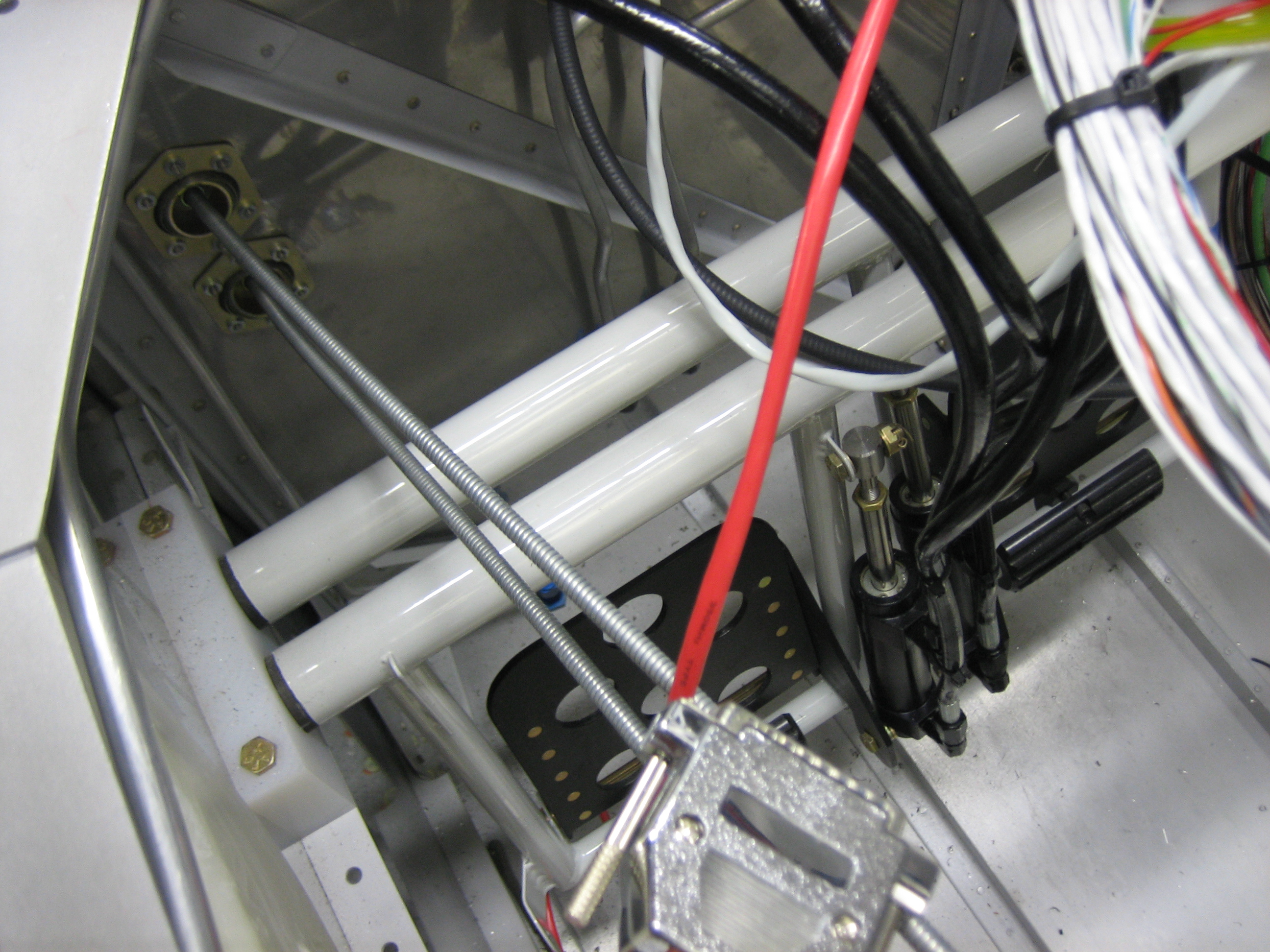 I started wrapping up the control cable installation tonight. First up is the cable supports on the subpanel. Attaching these stiffened up the control bracket quite a bit, but there’s still a bit of flex. I may add a stiffener between the control bracket and the subpanel.