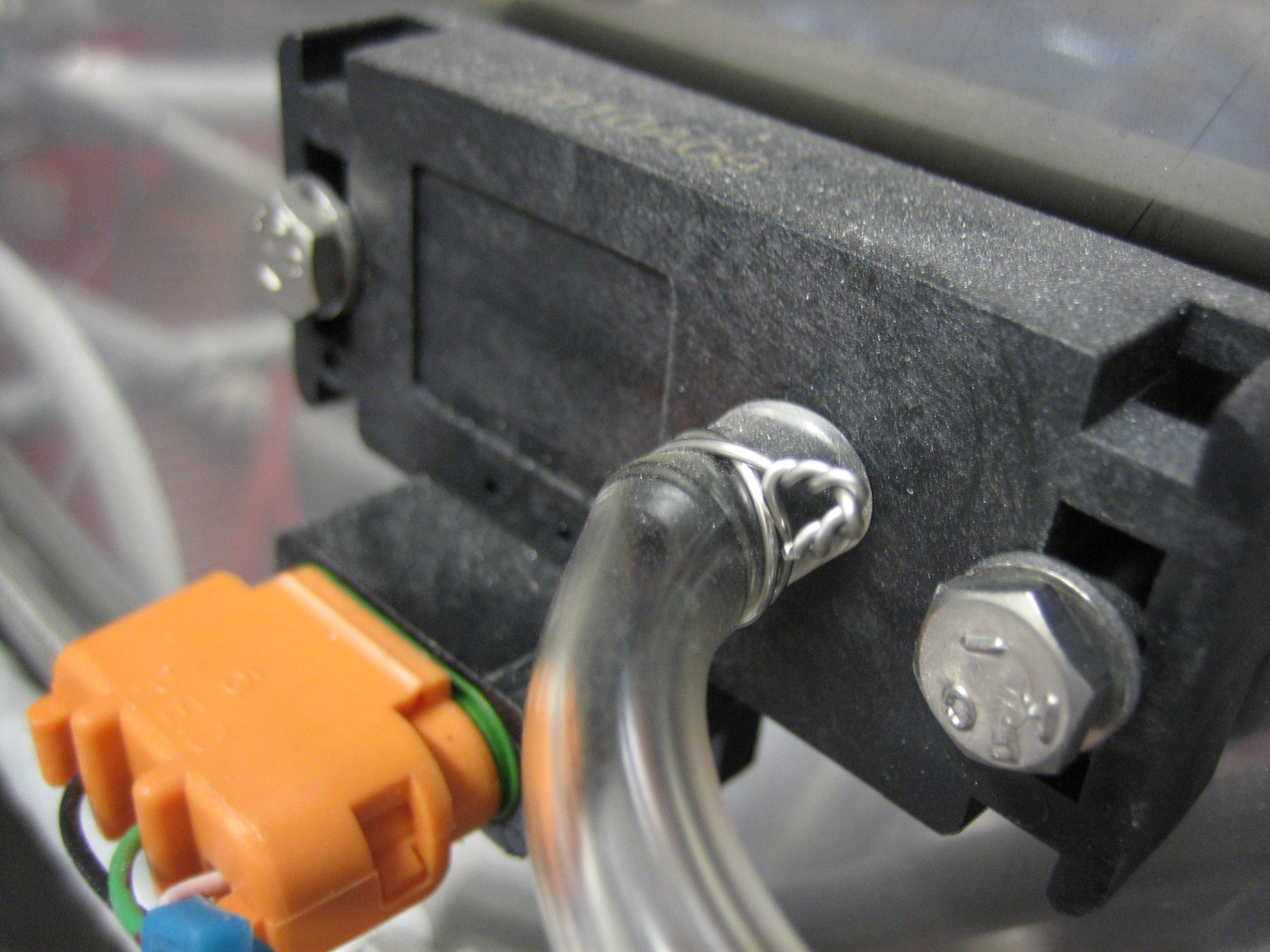 The tube going to the Dynon manifold pressure sensor was a little loose (although it was tight when I originally installed it). I used a couple of wraps of safety wire to tighten this up nicely.