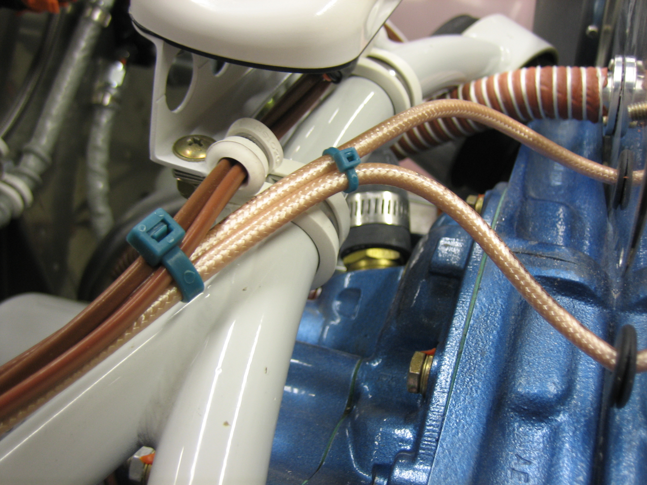 I added a couple of zip ties to the high tension leads so that they won’t rub on the engine mount. You can see that there is some slack in these lines to allow for engine movement.