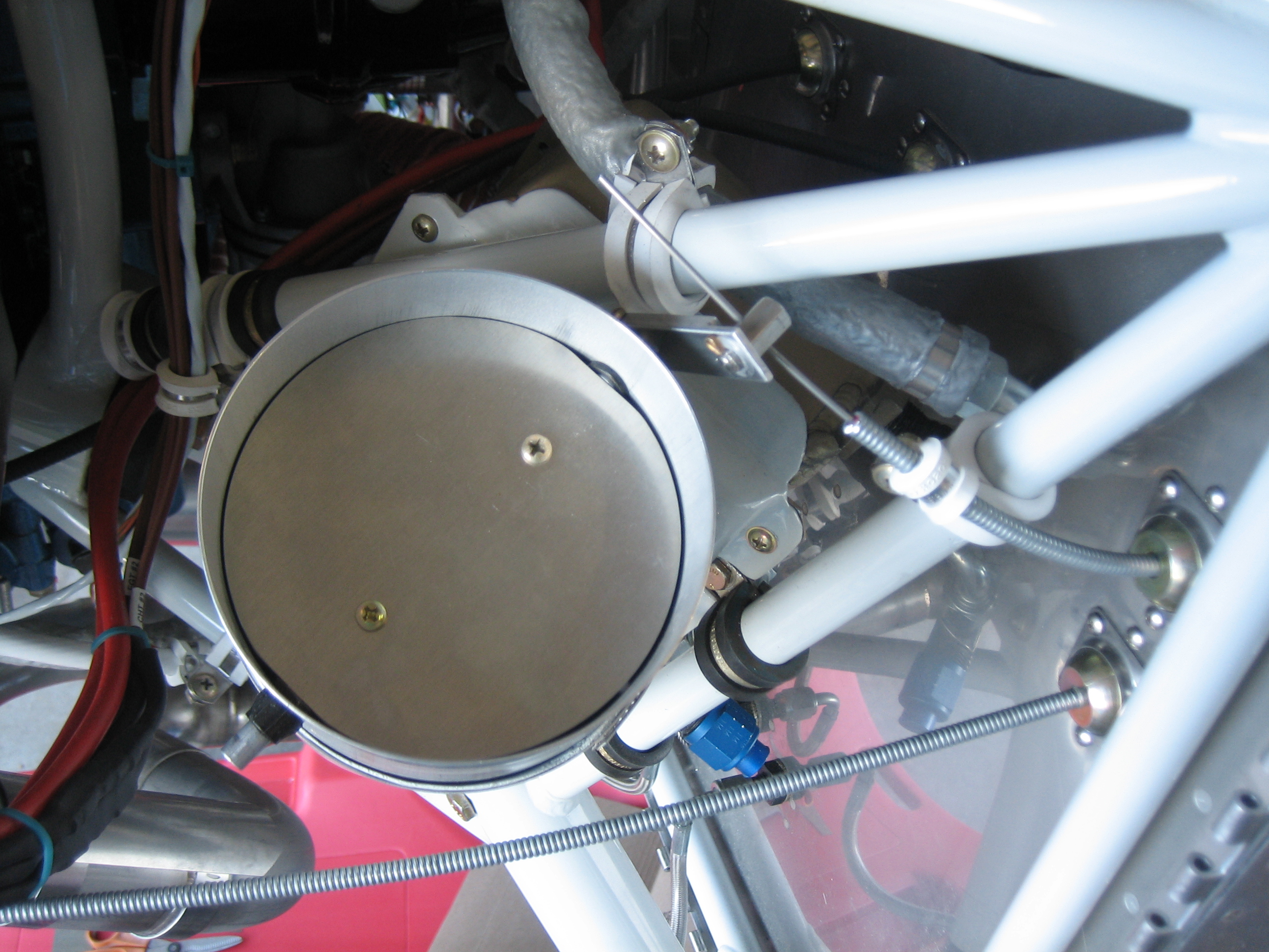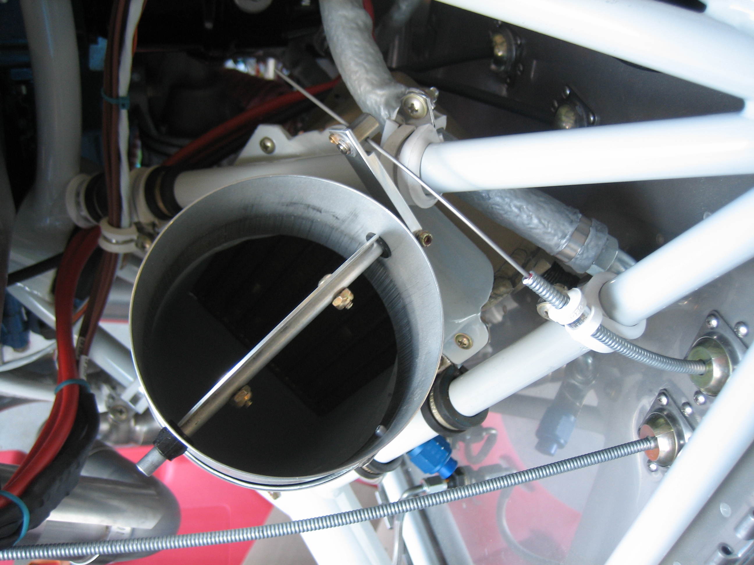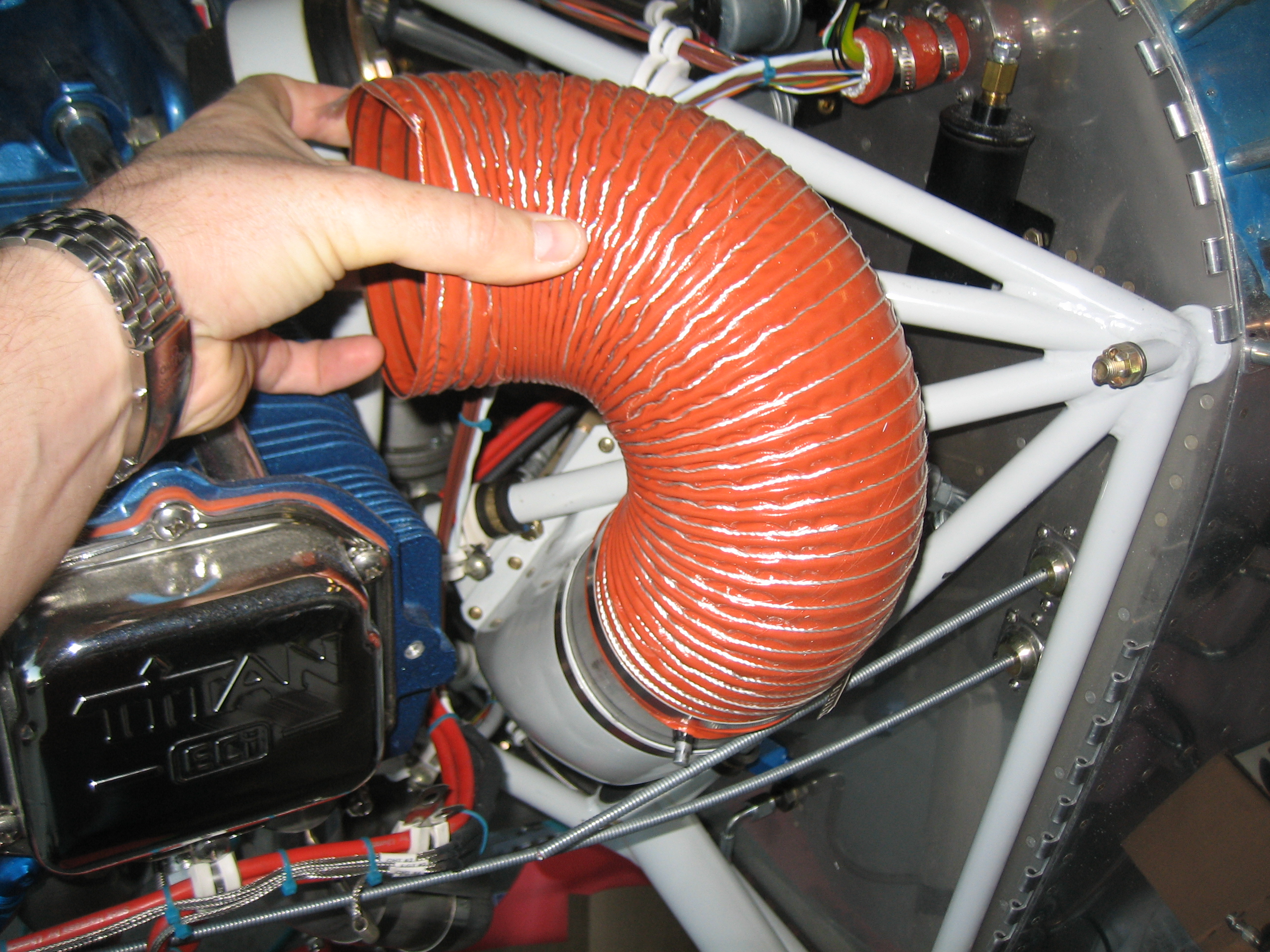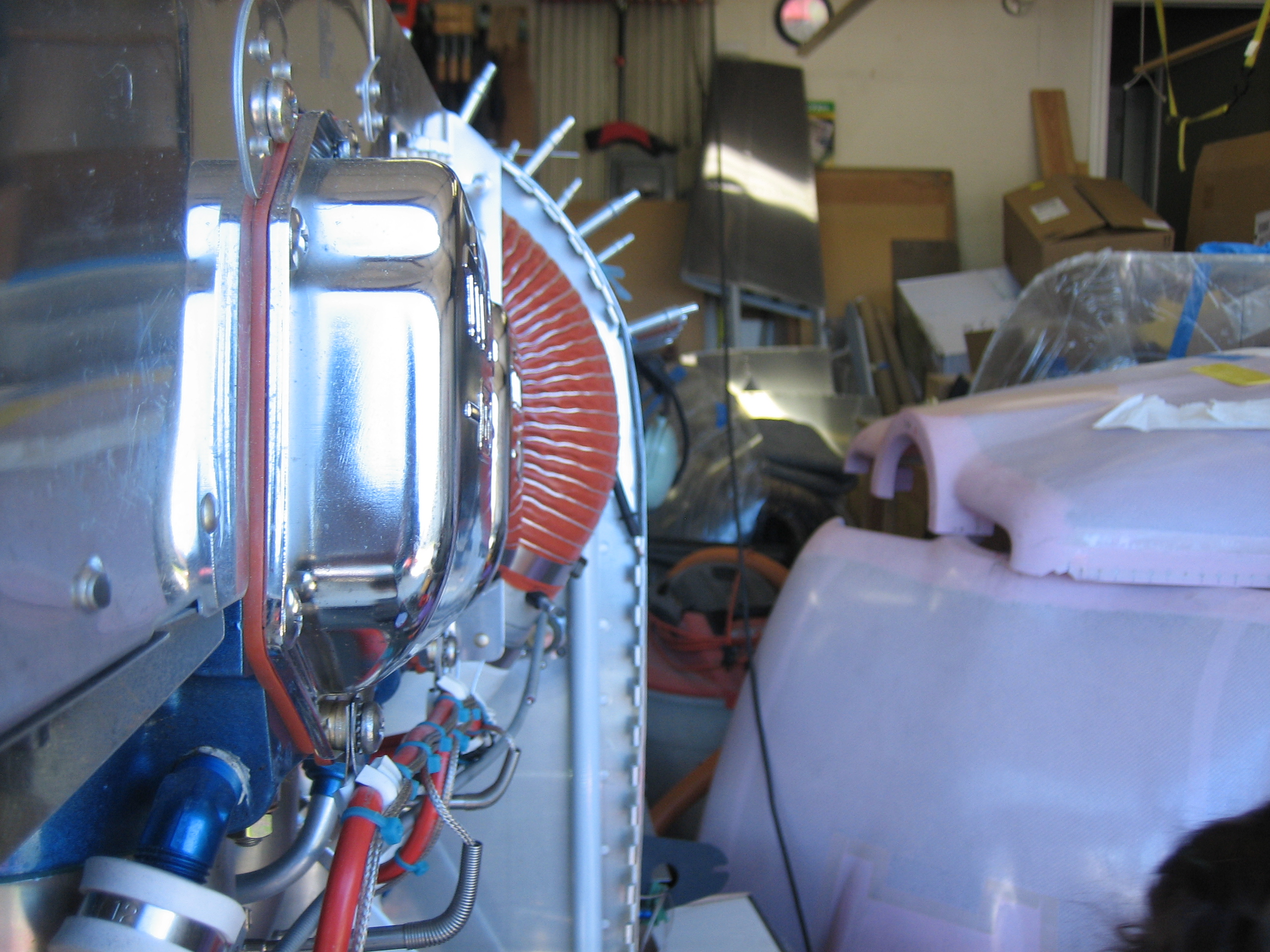 I trimmed down the 4″ SCAT tube so that it fits between the back of the baffles and the butterfly valve on the oil cooler plenum.