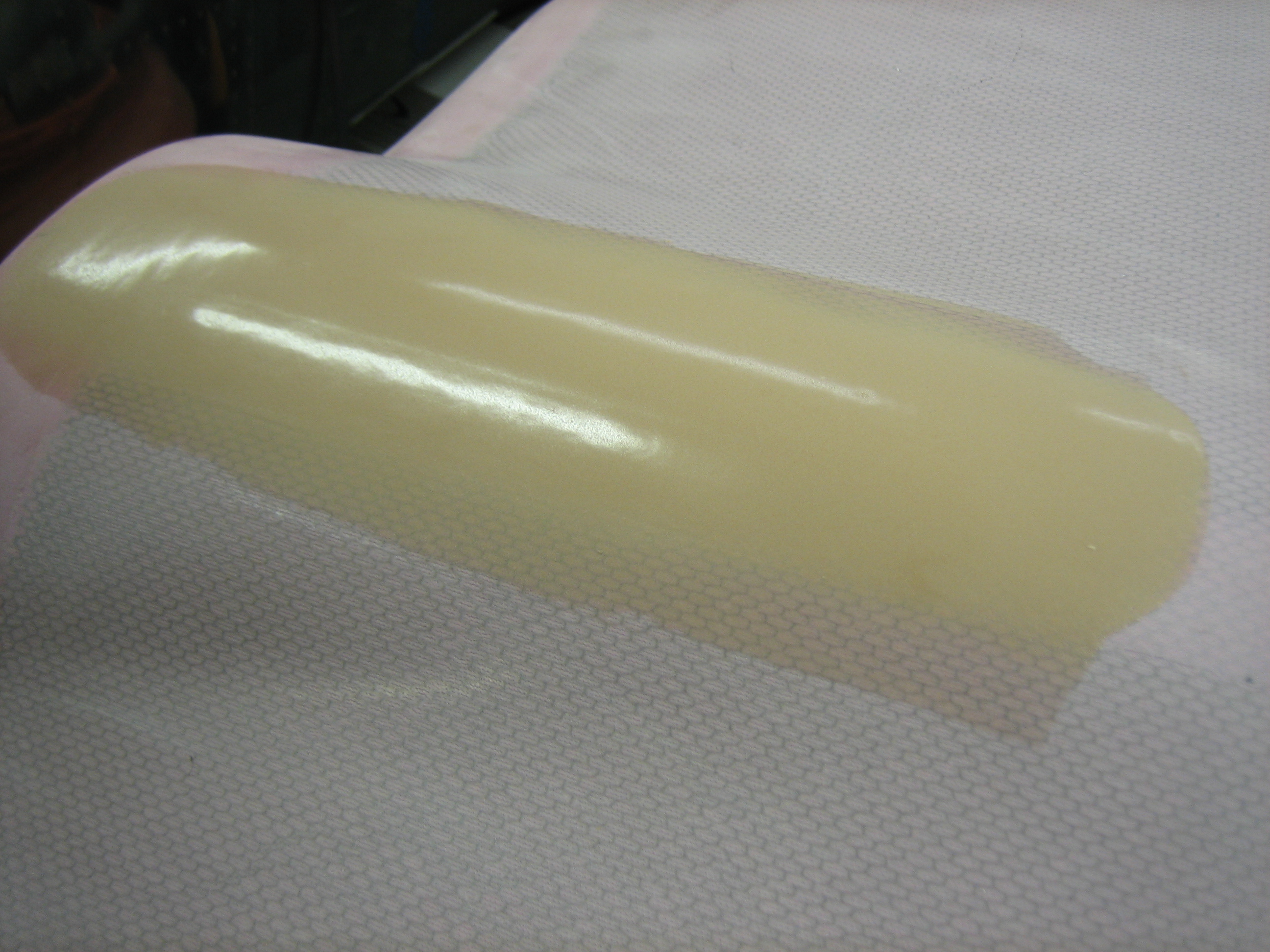 I spread the extra epoxy/micro mixture over the fiberglass tape on the top cowl (covering the holes I drilled when fitting the cowl.