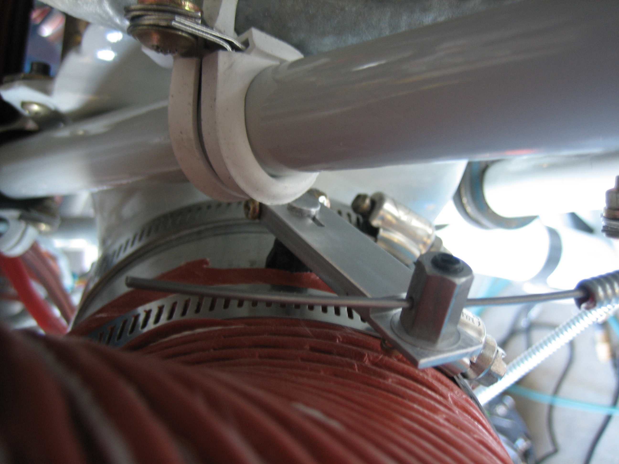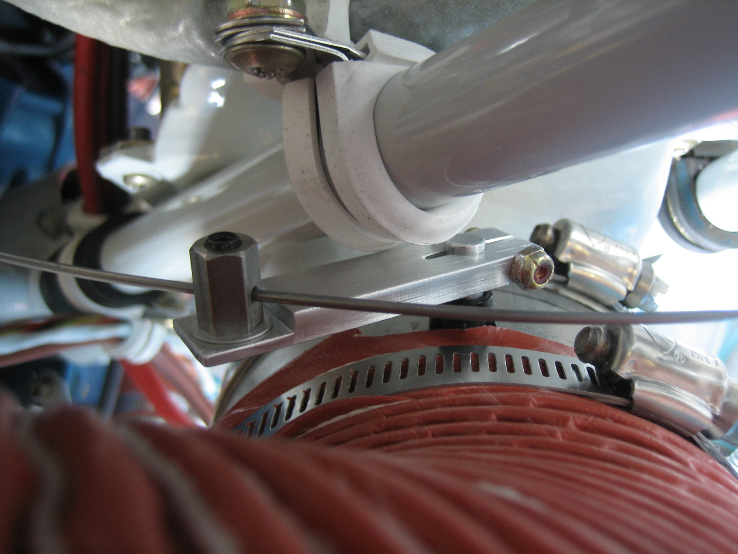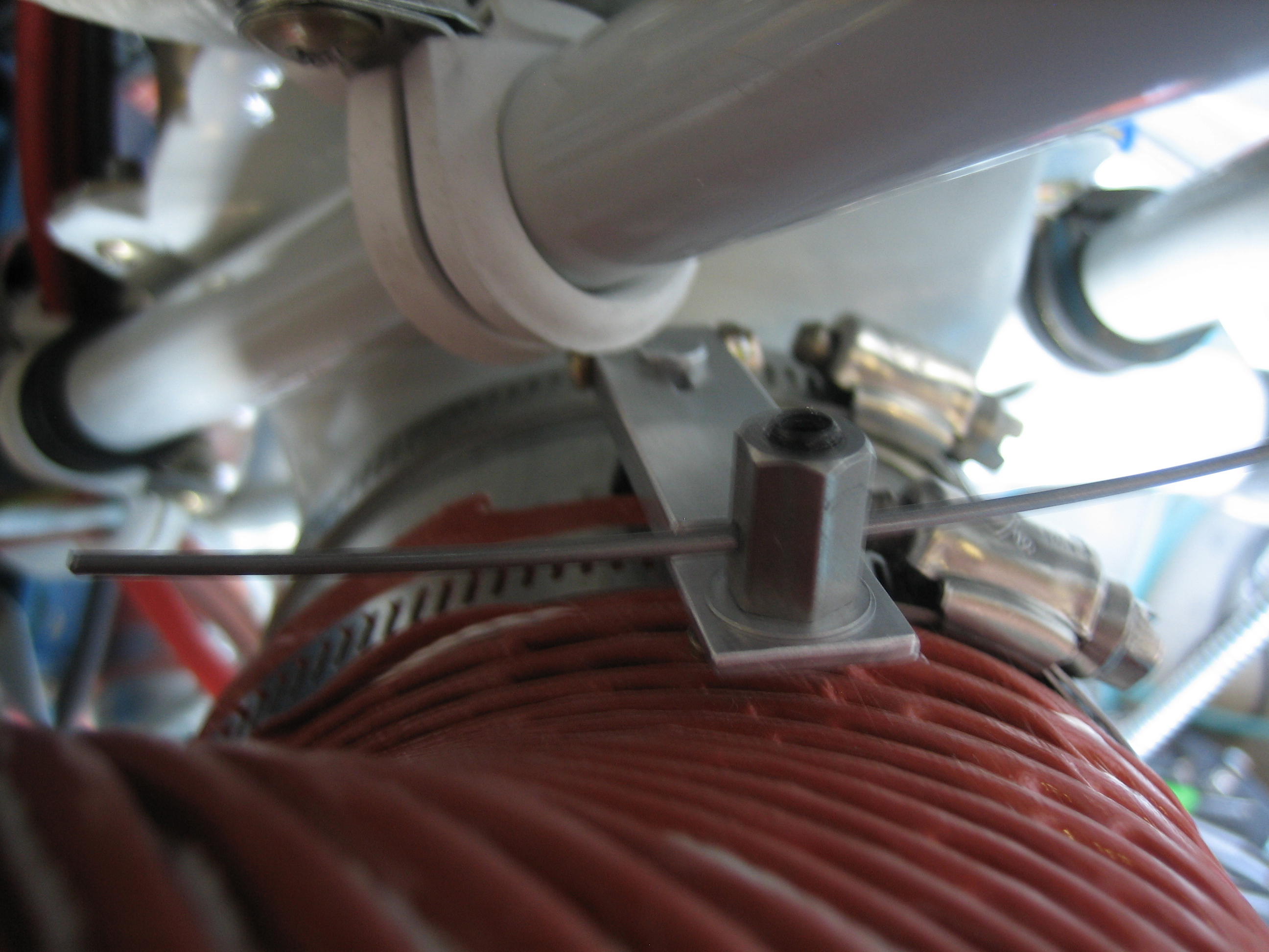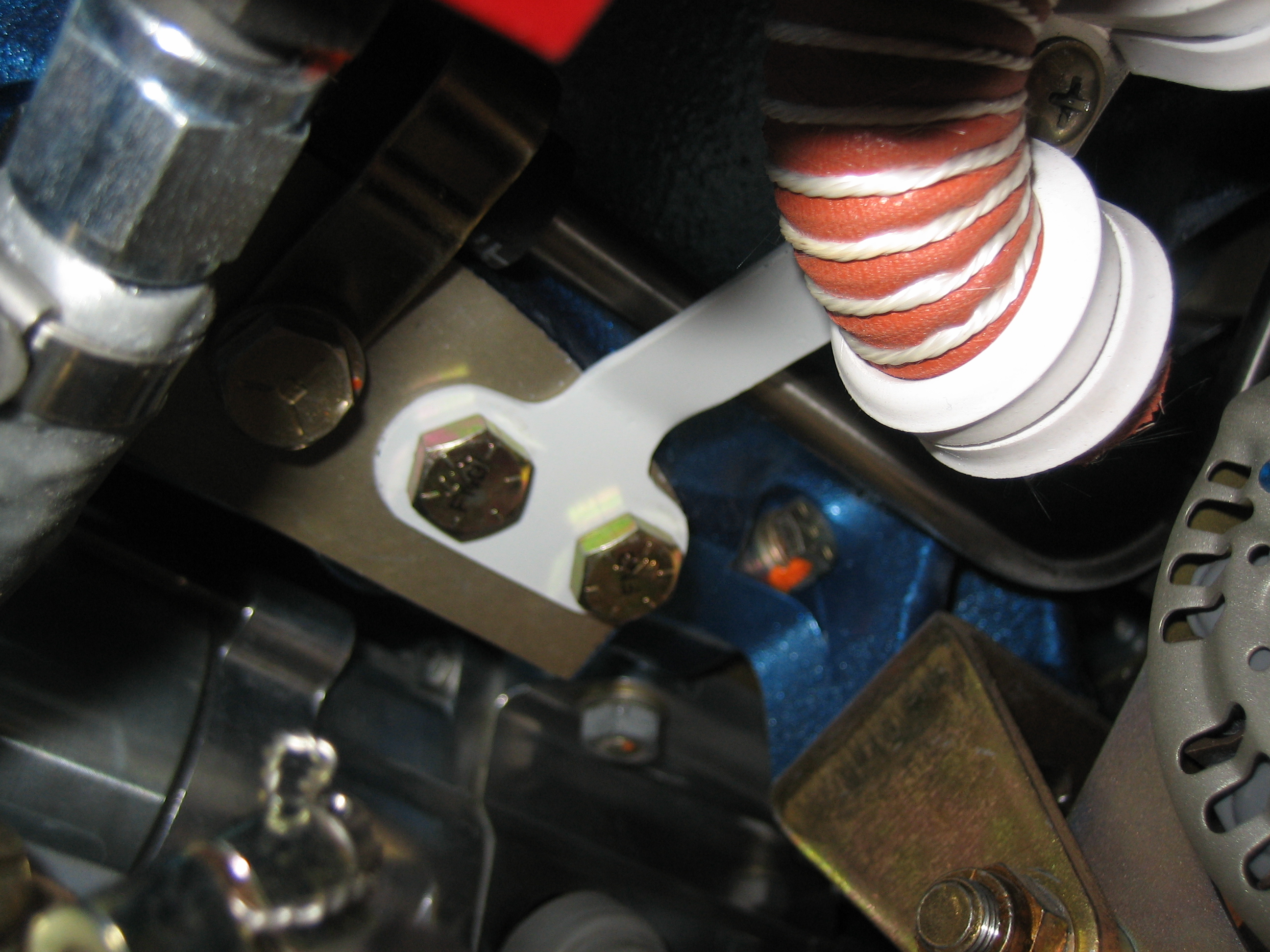 The bracket that holds these adel clamps is attached to the engine just behind the alternator bracket. This is just temporarily attached for now until the baffles are on for good.