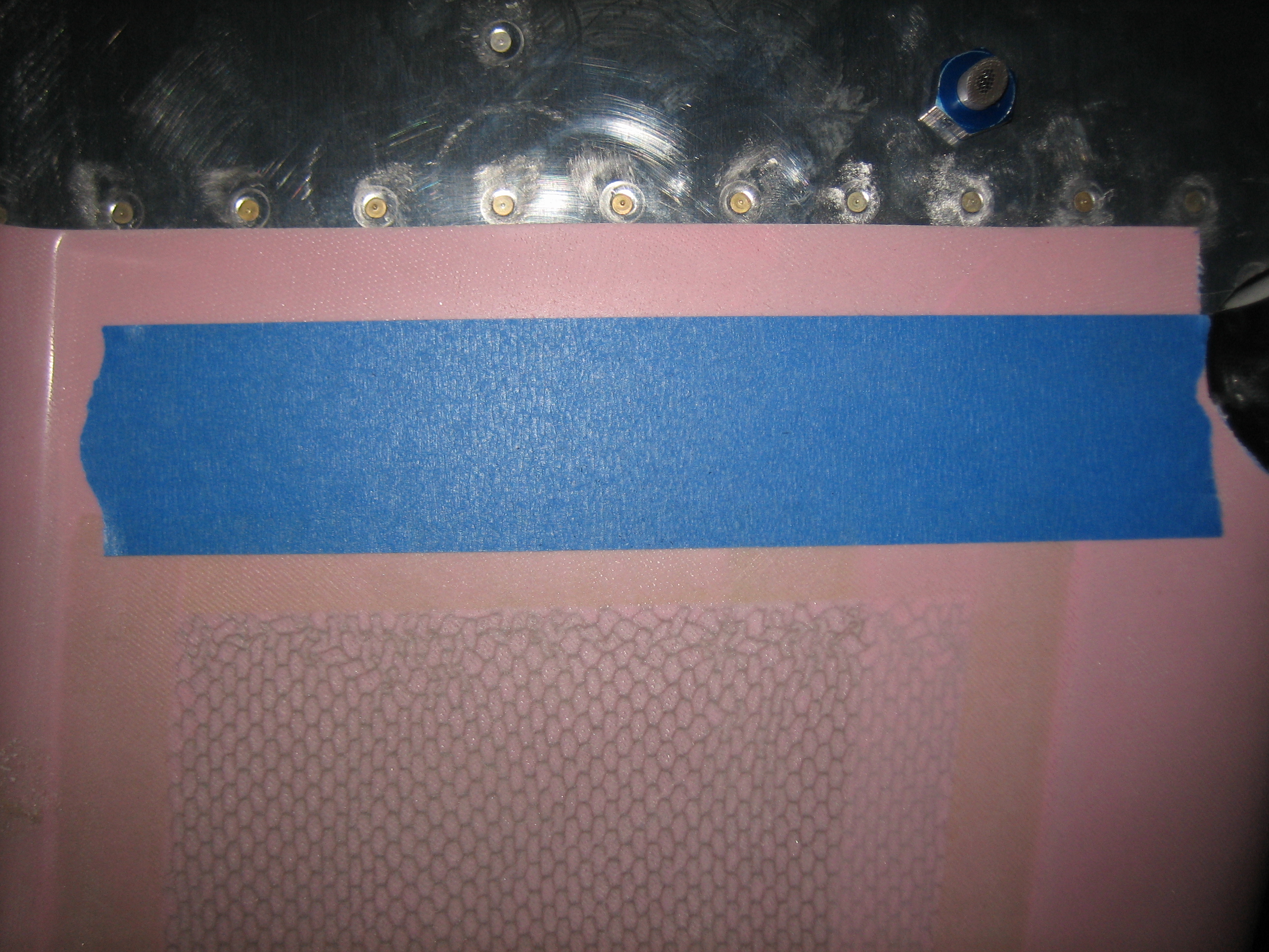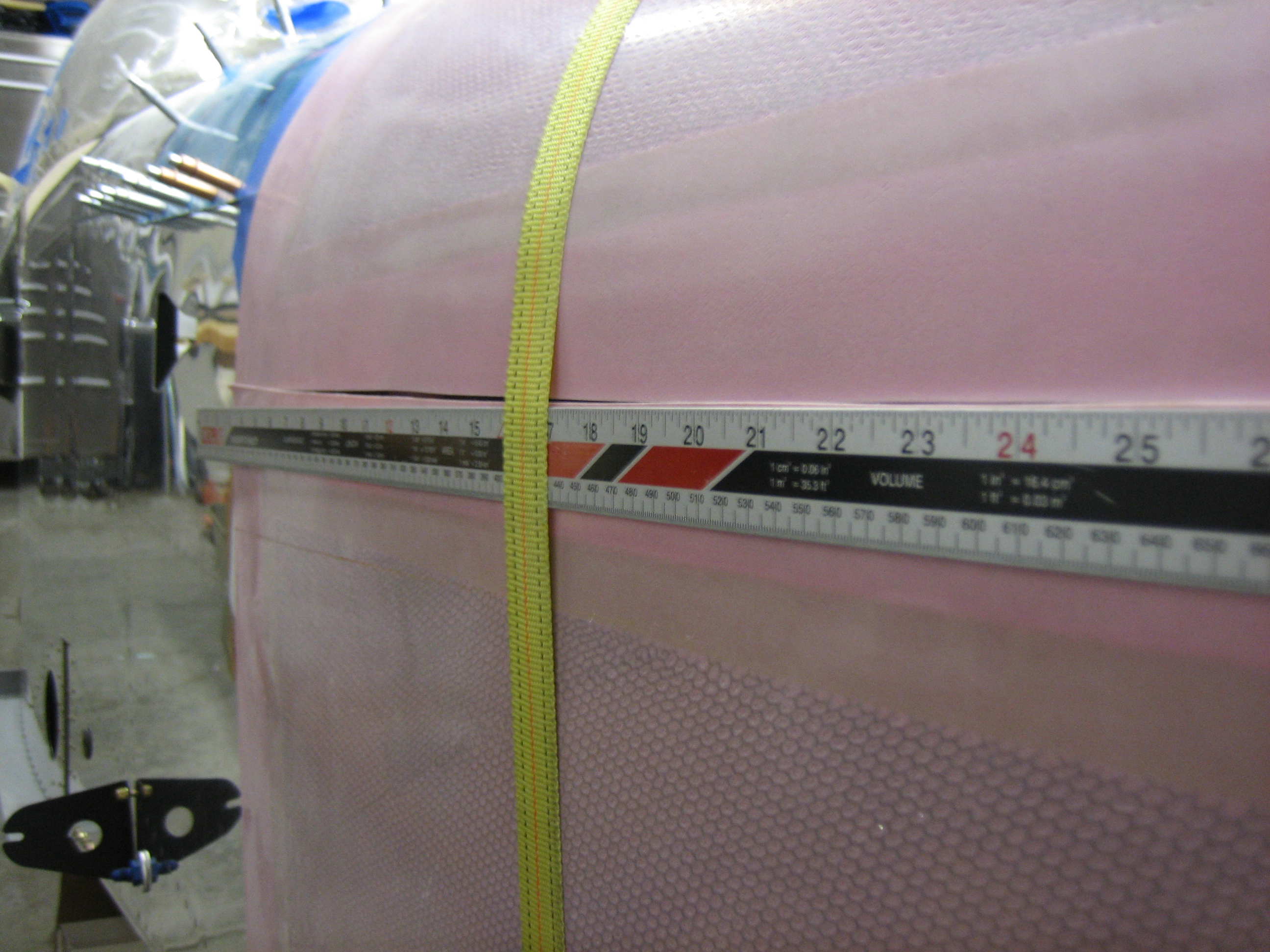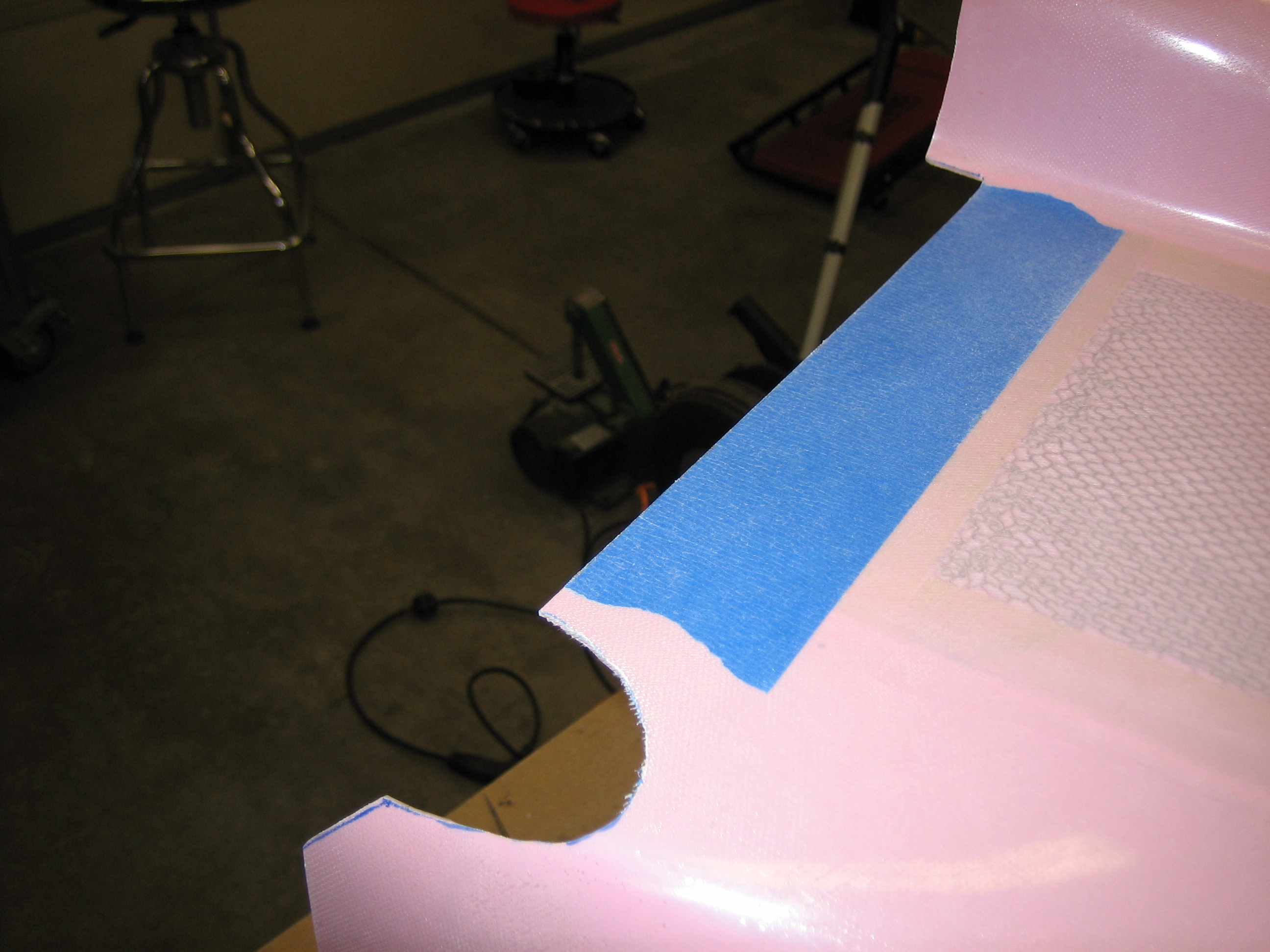 The plans specify that you mark a line 2″ aft of the firewall flange as a reference point for trimming.  As I’ve seen several other builders do, I used some 2″ wide painters tape.