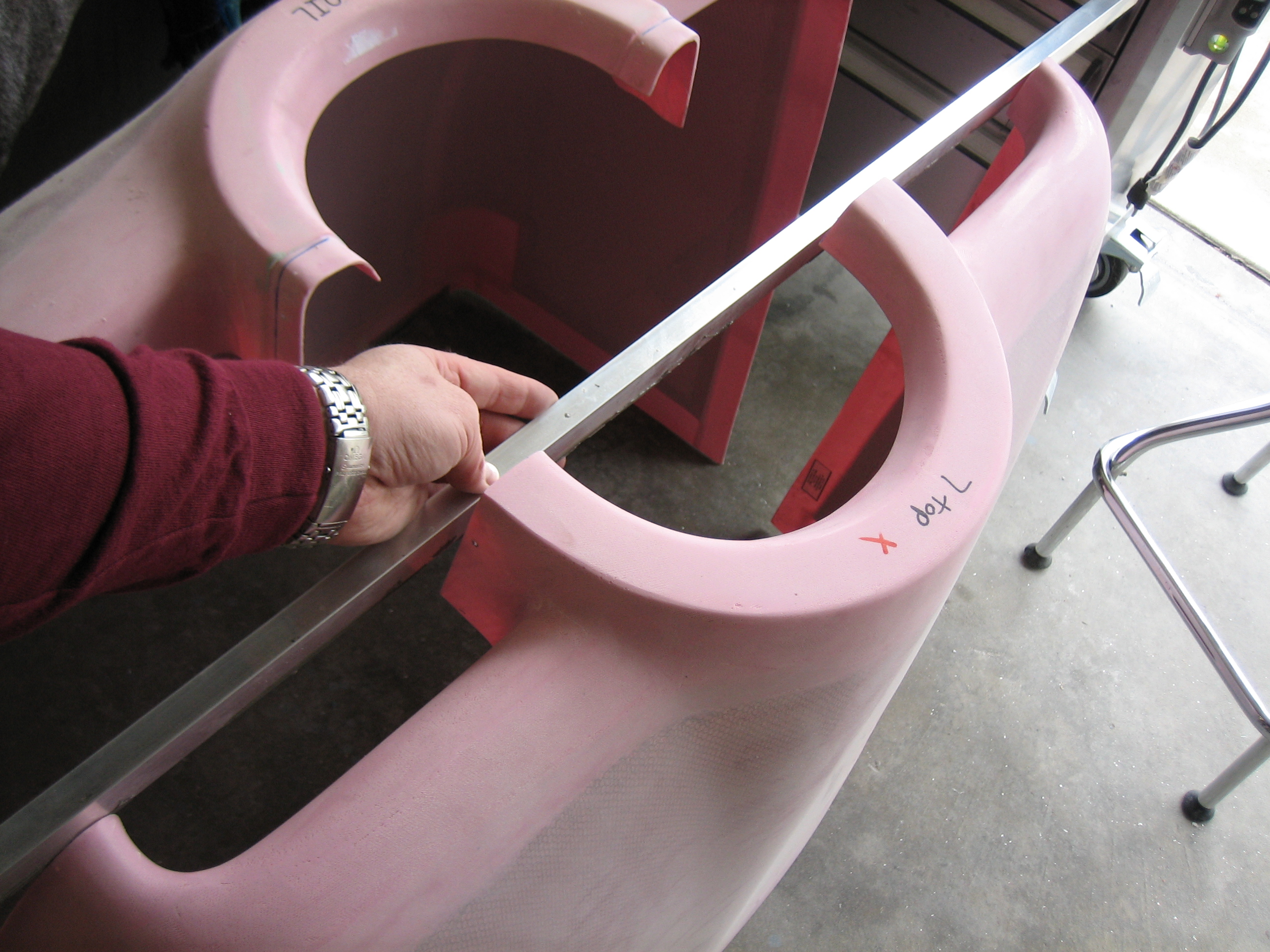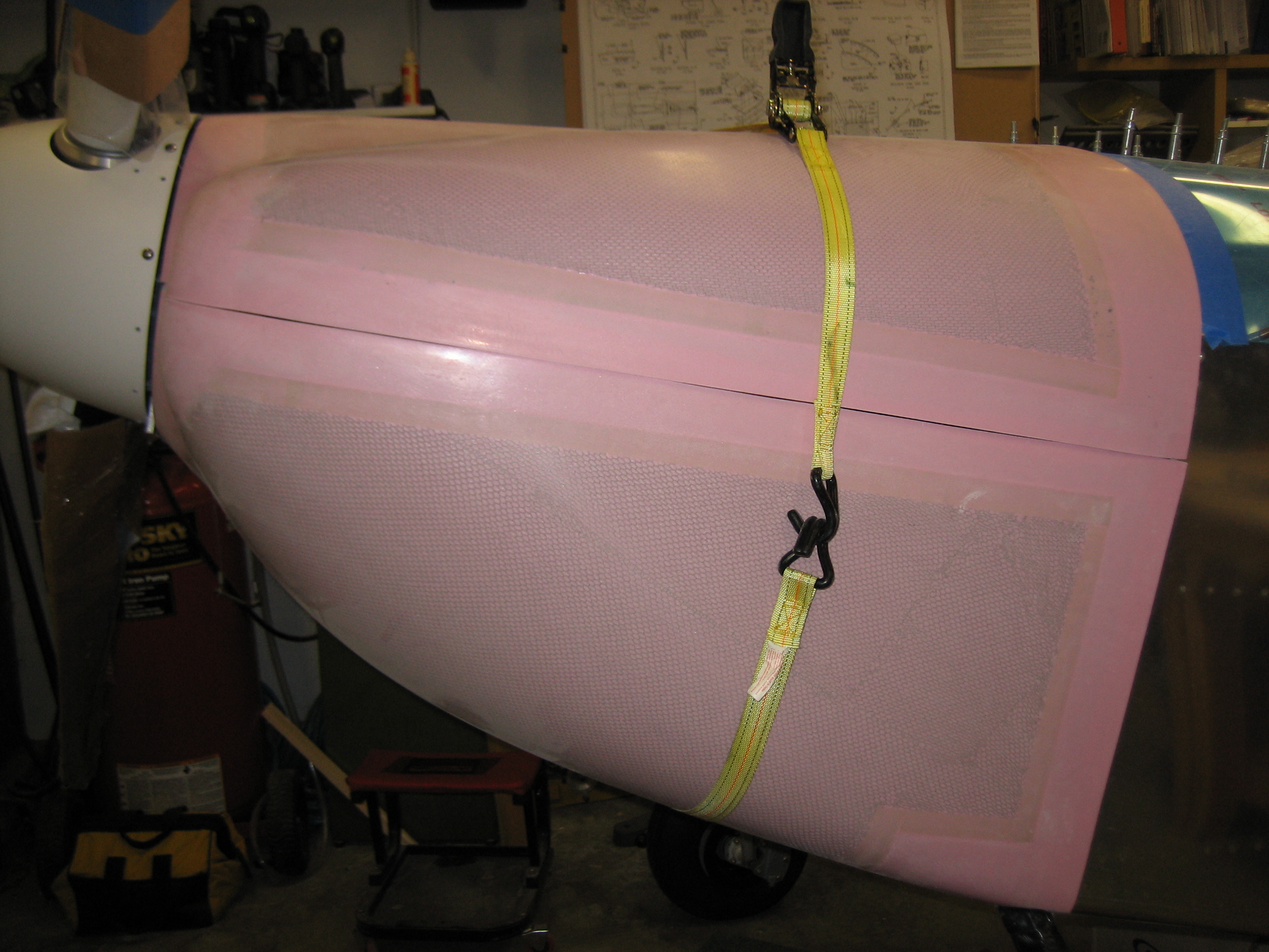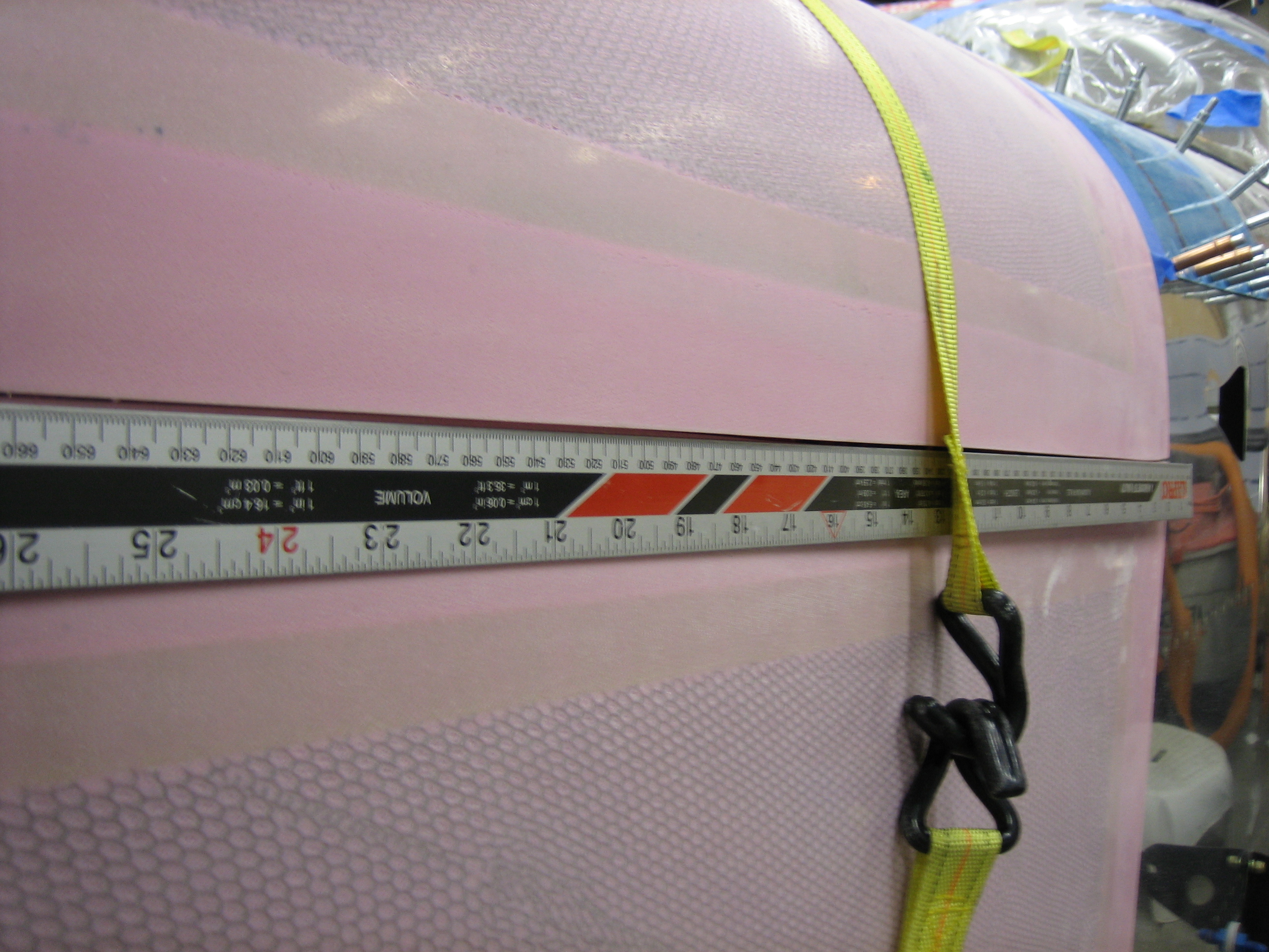 The plans specify that you mark a line 2″ aft of the firewall flange as a reference point for trimming.  As I’ve seen several other builders do, I used some 2″ wide painters tape.