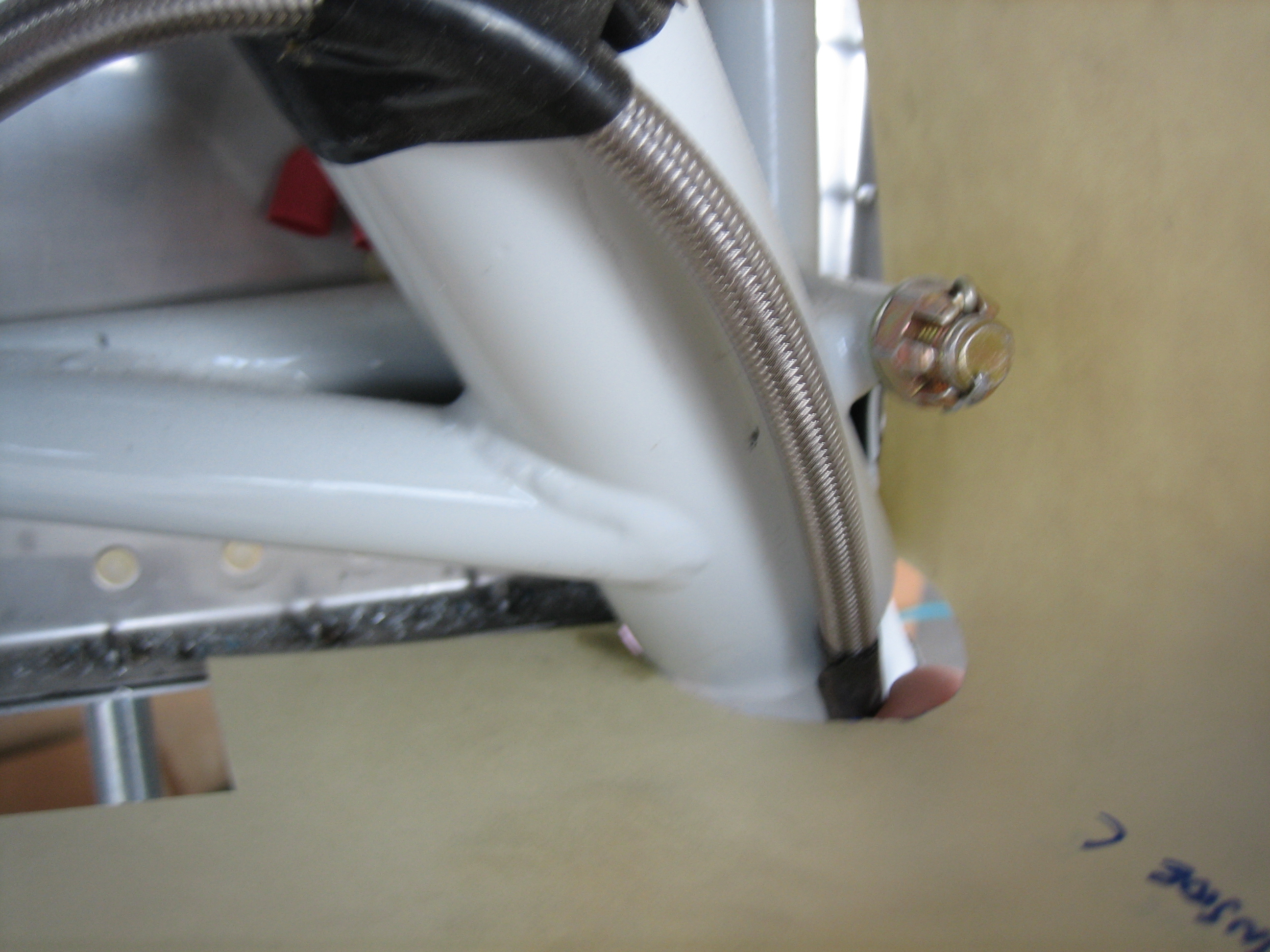 I then fabricated the exhaust hangers.  These are each comprised of two pieces of stainless steel tubing connected by a piece of rubber tubing.  I flared the ends of the stainless tubes so that they couldn’t slip out of the rubber tube.