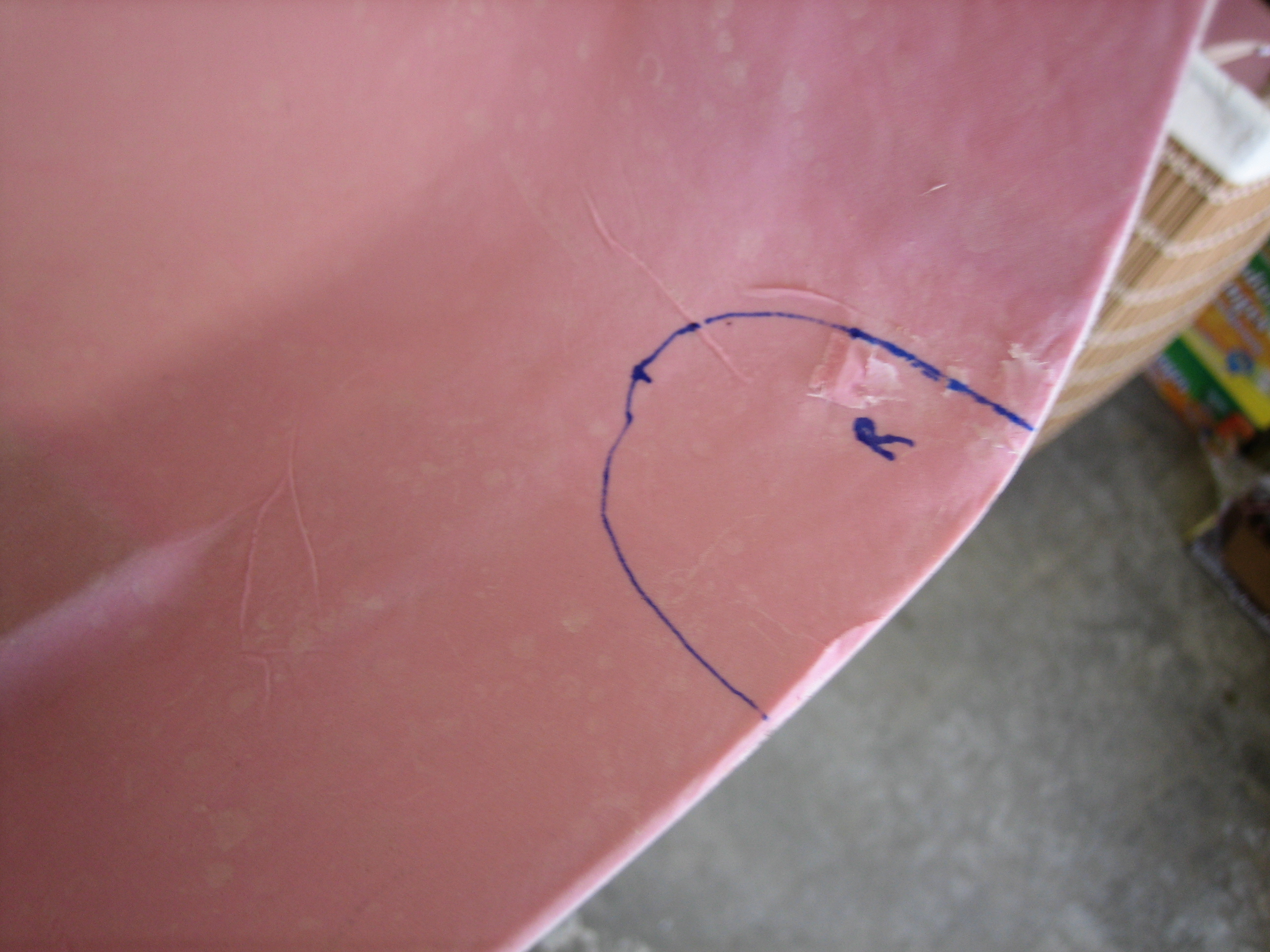 With the cowl in its final location, I put a light inside the cowl and put some masking tape along the cut line.