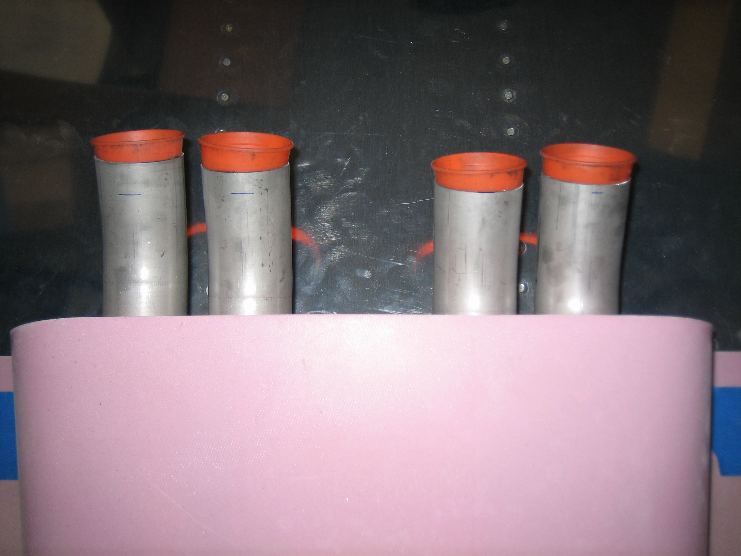 Since I marked the cut points on the exhaust pipes last night, I pulled the lower half of each pipe and cut the three longest pipes to match the shortest.  I then cleaned up the ends so that there were no burrs and reinstalled the pipes.