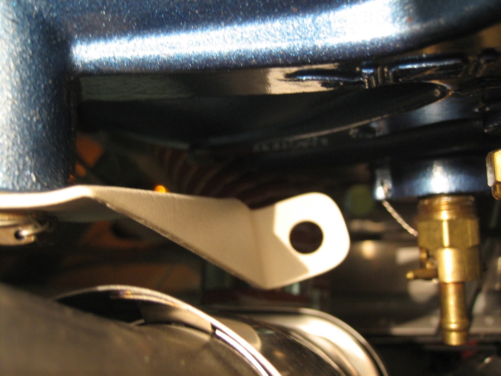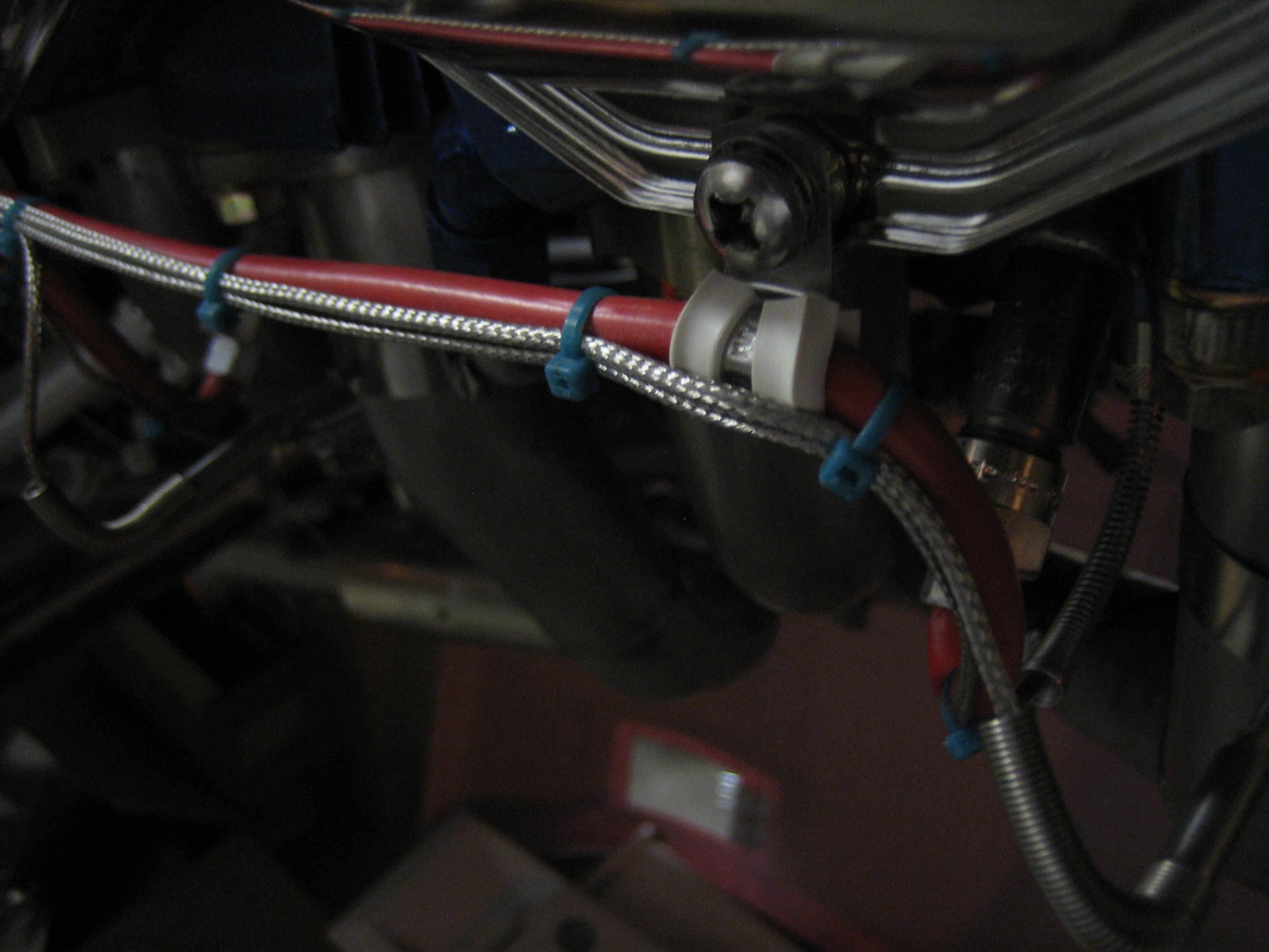 The cable then drops below the engine mount tube holding the oil cooler and on up to the mounting bracket.