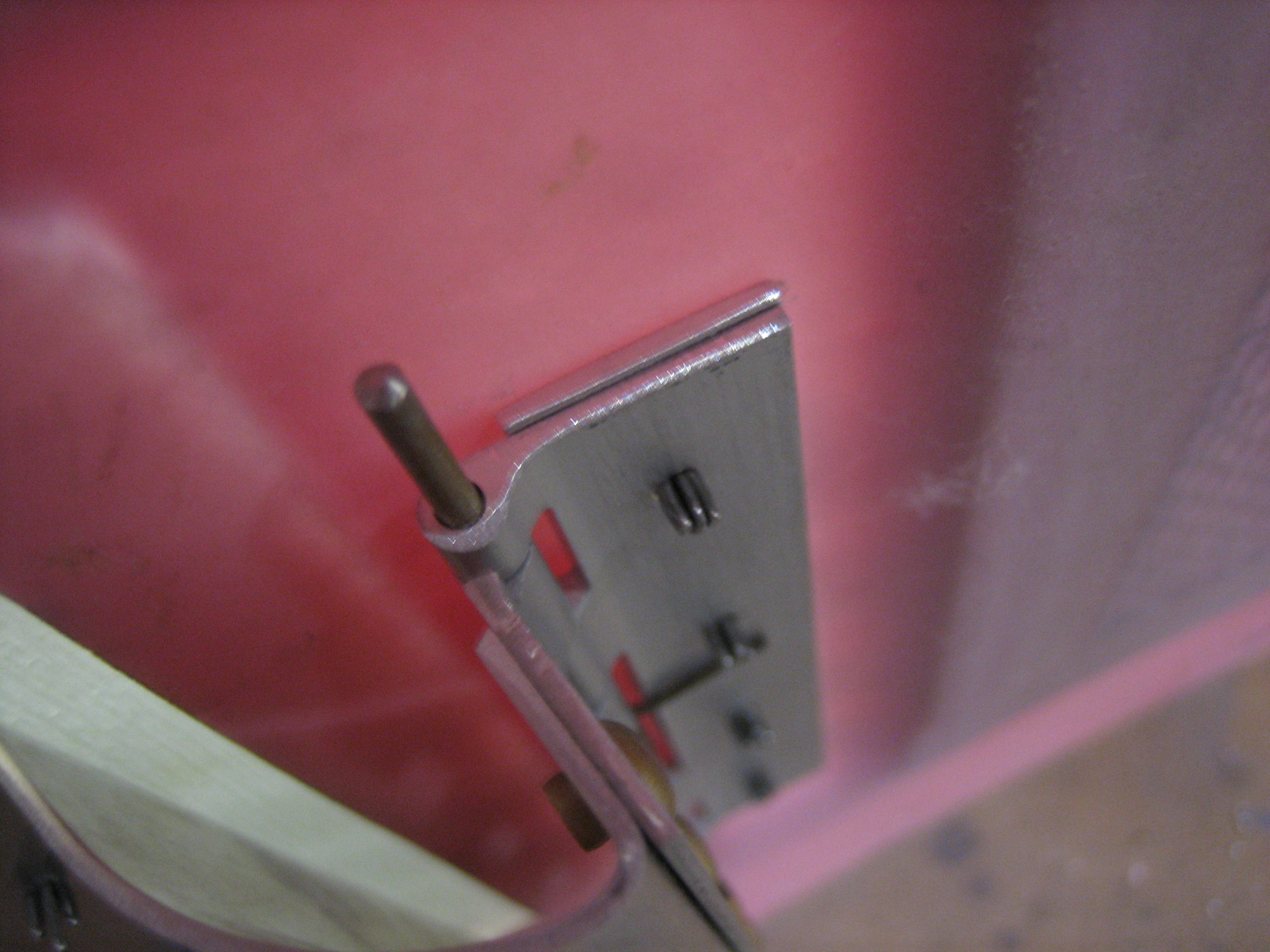 You can see at the hinge line that the door is in nice and tight.  Without that spacer, the flexibility of the door and the force of the hinge spring was causing the door to bow out just slightly here.