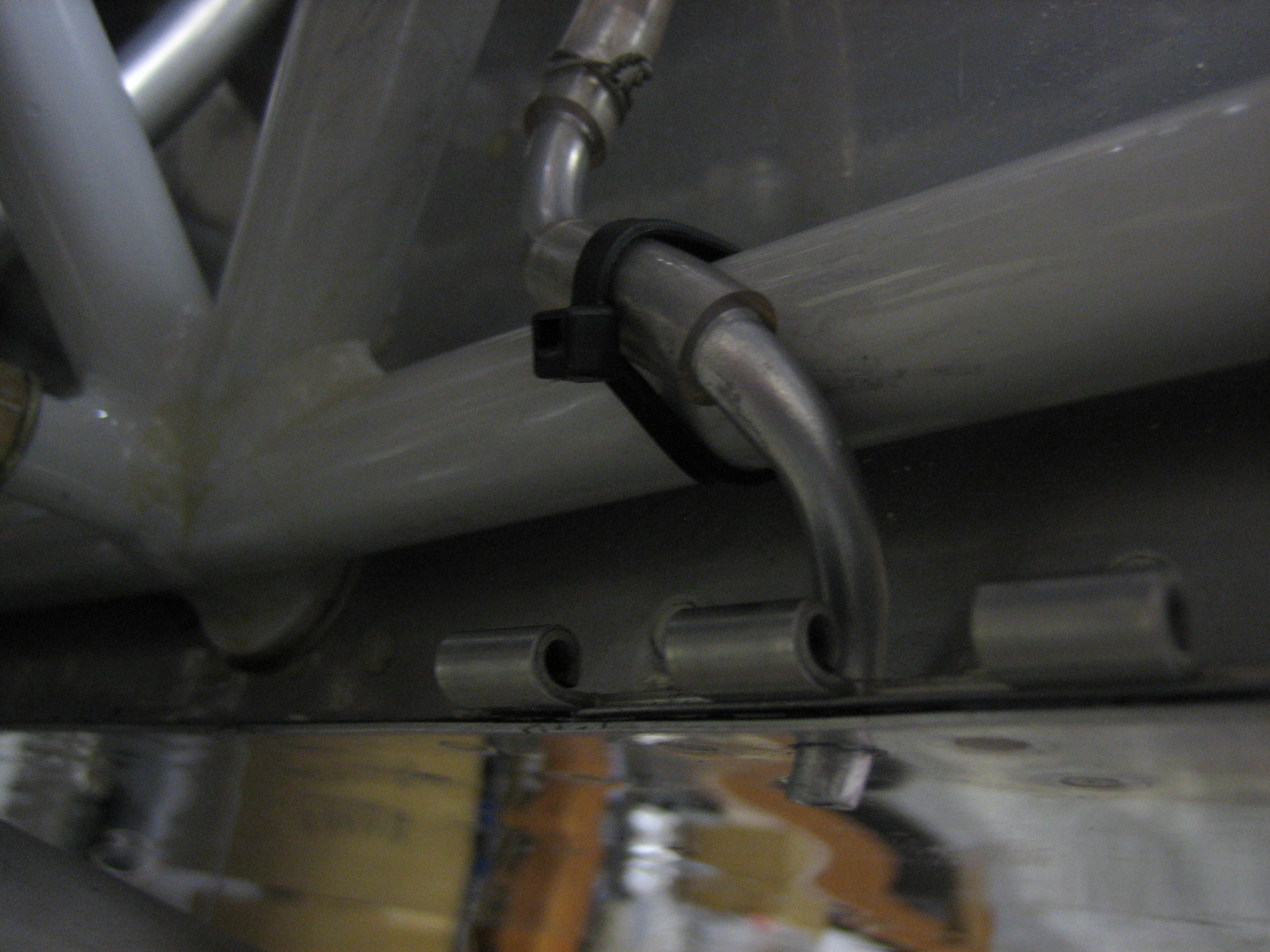 The tubing is held on to the fitting with a piece of safety wire that is double wrapped around the tubing.
