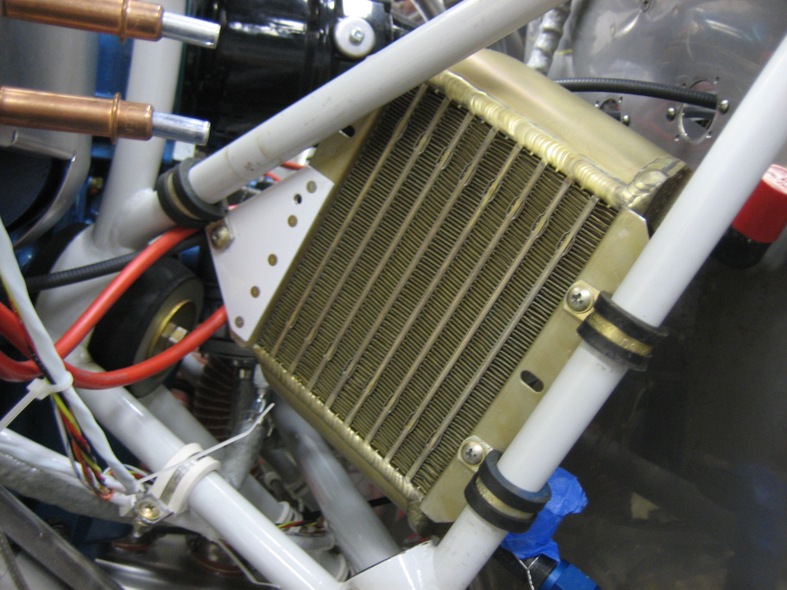 There will be one more adel clamp and bolt when the oil cooler is installed for good.  This is just installed temporarily so that I can fabricate the plenum.