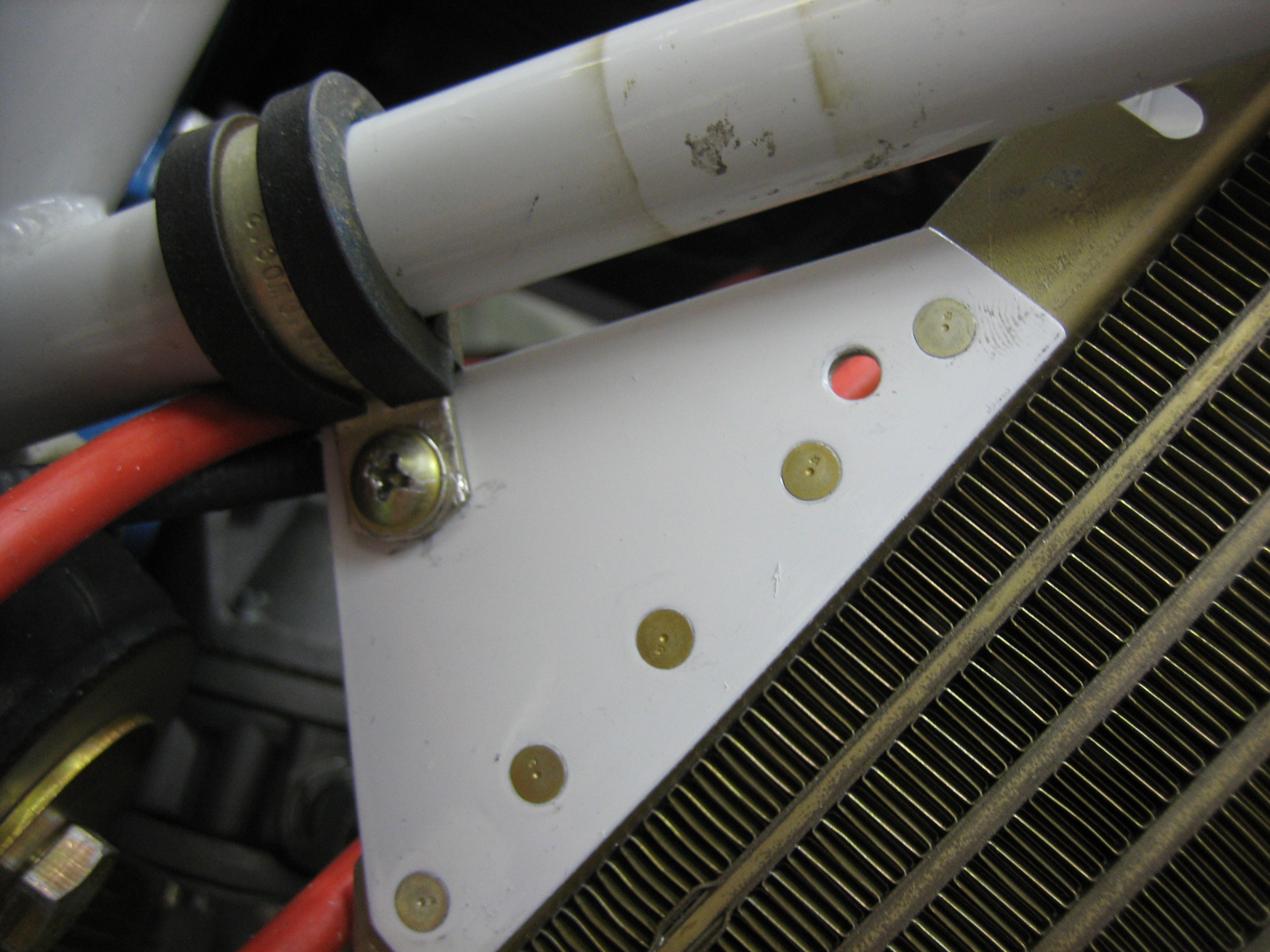 I riveted the additional bracket onto the oil cooler and reattached it to the engine mount.