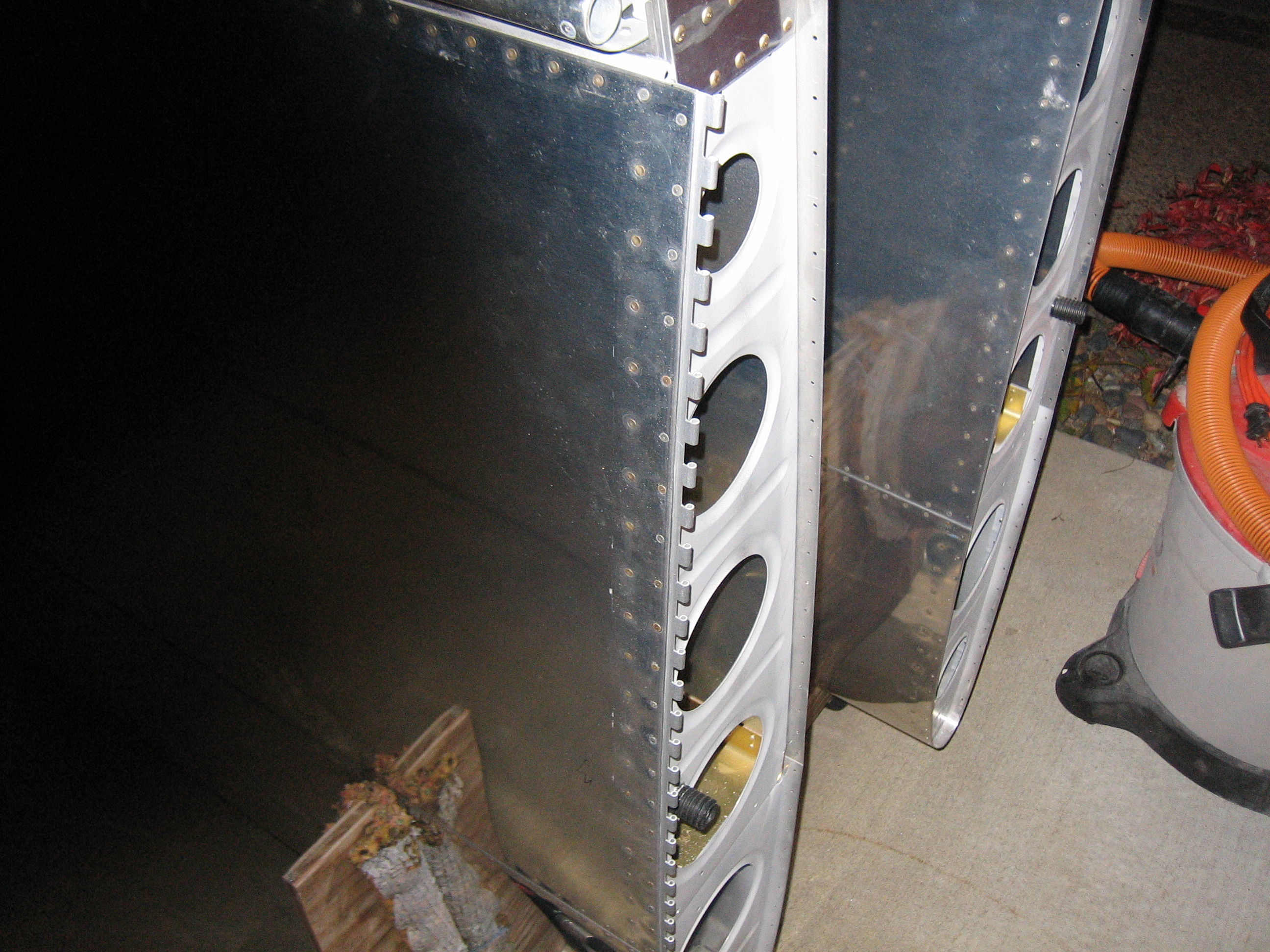 I finally riveted on the flap hinge.  This has been on my to do list for weeks now, but the wings are mostly stored under a tarp beside my house, so I have to pull them around to the driveway every time I want to work on them.